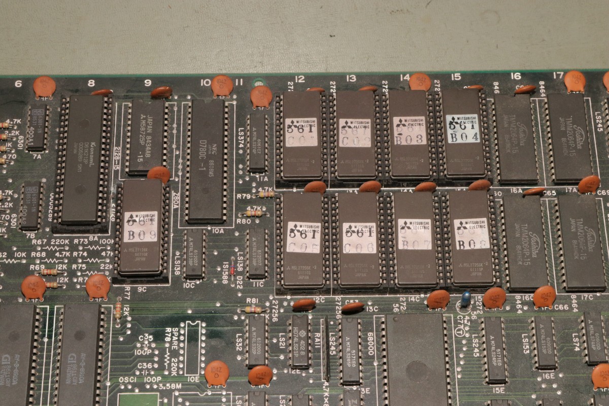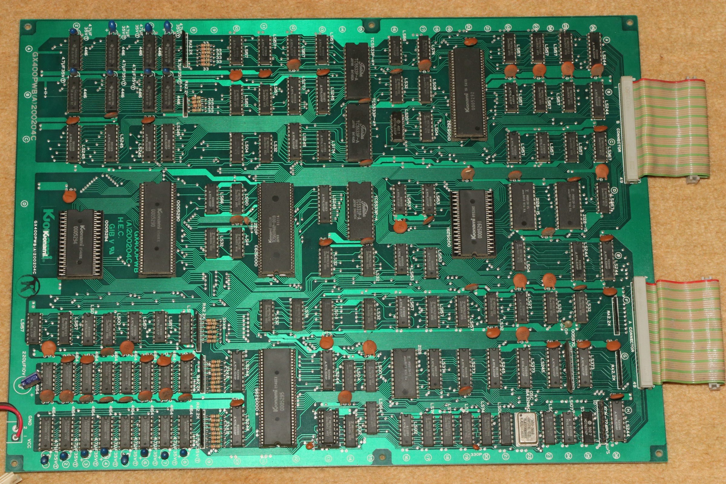 {Konami GT Conversion} Ein Bekannter schenkte mir eine Konami-Platine, die der Vorbesitzer nicht haben wollte... Das Konzept von "nicht haben wollen" erschließt sich mir nicht... Sie stellte sich als Konami GT heraus - ein Rennspiel, welches niemand haben will. Aber... Auf der gleichen Hardware läuft auch Gradius / Nemesis - lässt sich das ganz einfach konvertieren? Ja, das Spiel läuft, aber ohne Gas, Bremse und Lenkrad macht das auch nicht wirklich Spaß... Alles schön bunt... da werden schon Erinnerungen wach... Aber ohne Automat ist das Teil unspielbar - also Game over! Ach ja, von wegen das Spiel tut... der Sound war tot - und durch die 4-Lagen PCB ist das Auslöten von Bauteilen eine Herausforderung, die nur mit Entlötkolben und Heißluftfön gemeinsam gemeistert werden kann! Nach geraumer Zeit ist die Audiostufe wieder fit und der Ton läuft! Jetzt einen Satz neue EPROMs brennen... Alt... ... gegen neu auf der oberen Platine ersetzen - auf der unteren PCB gibt es keine programmierten Teile! Geht nicht... na toll... O.K., es lag nur an fies korrodierten EPROM-Beinchen, man sollte nicht immer den letzten Mist auf Lager halten... Der VRAM-Error kommt manchmal, wenn die Eingangsspannung unter 5V liegt. Ich vermute, dass das mit der Zeit nicht besser werden wird. Aber egal, solange es bei 5,0V läuft, ist alles gut. Nemesis - wie lange hab ich das nicht mehr gespielt! Und wie konnte ich vergessen, wie unglaublich hoffnungslos schwer dieses Spiel ist... Vor allem, wenn keine Controlls funktionieren... Leider reagiert das Spiel auf nix - ich erinnere mich an eine meiner eigenen Reparaturlogs - Da ist doch was mit defekten Optokopplern am Eingang - die Teile sind unbenutzt auf Dauerstrom und brennen langsam aus! Also fix (hahaha) ausgelötet... Die 4-fach Optokoppler PS2401 sind mittlerweile aus purem Unobtanium gefertigt - aber die Einzel-Koppler PC817 sind billig und gut verfügbar! Vier Stück hatte ich noch... Bis die Bestellung eintrudelt, können wir schon mal den hochauflösenden Blick auf die frisch geputzte Platine genießen: Ach, das ging ja fix! Und mit der vollen Kopplerbestückung kann ich endlich meiner Tochter beweisen... ... dass ich auch bei diesem Spiel ein voller Versager bin... Boah, ist das schwer! |