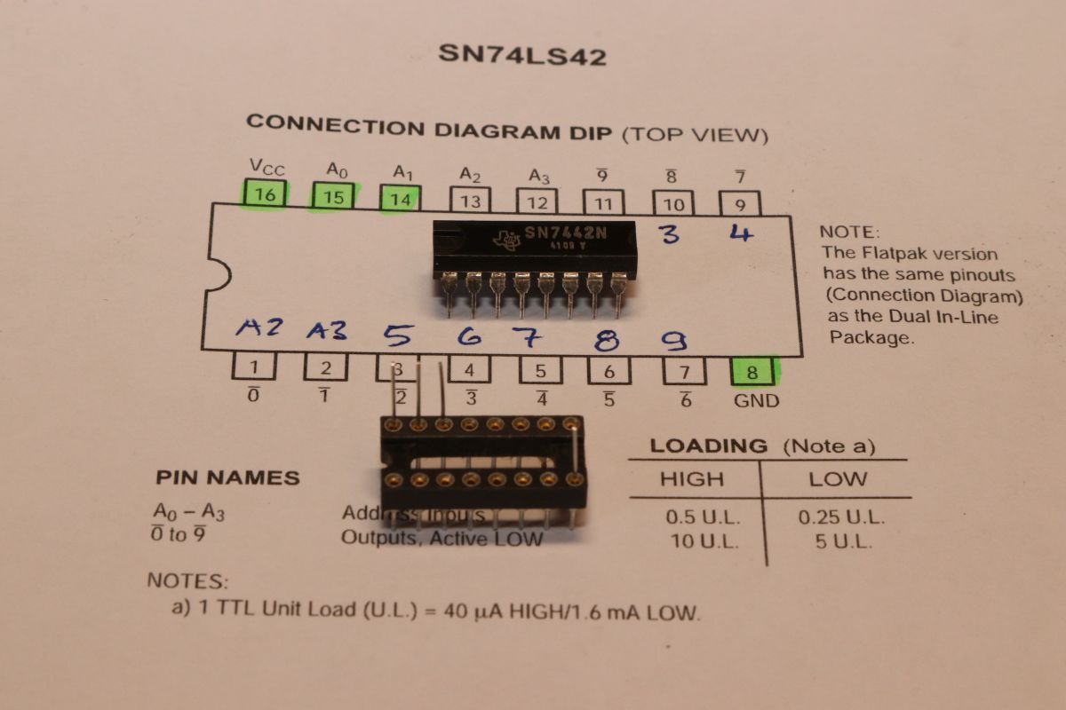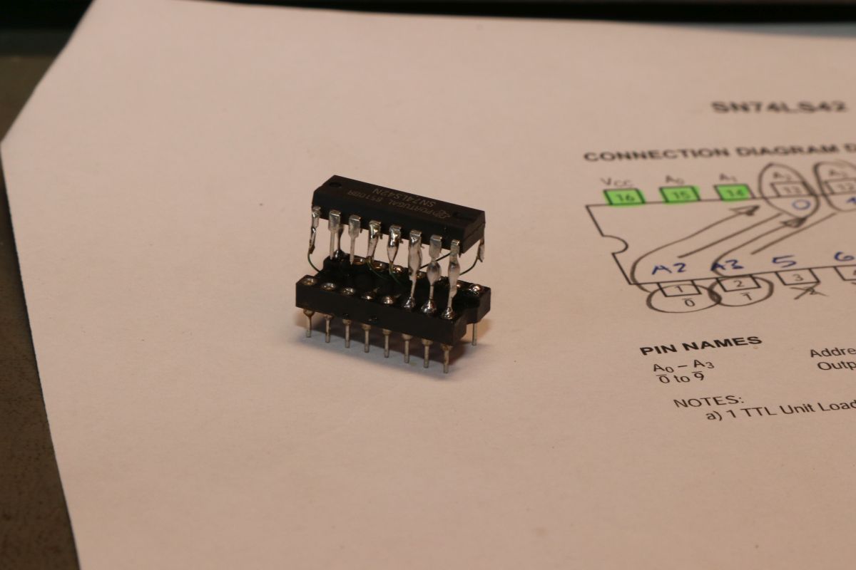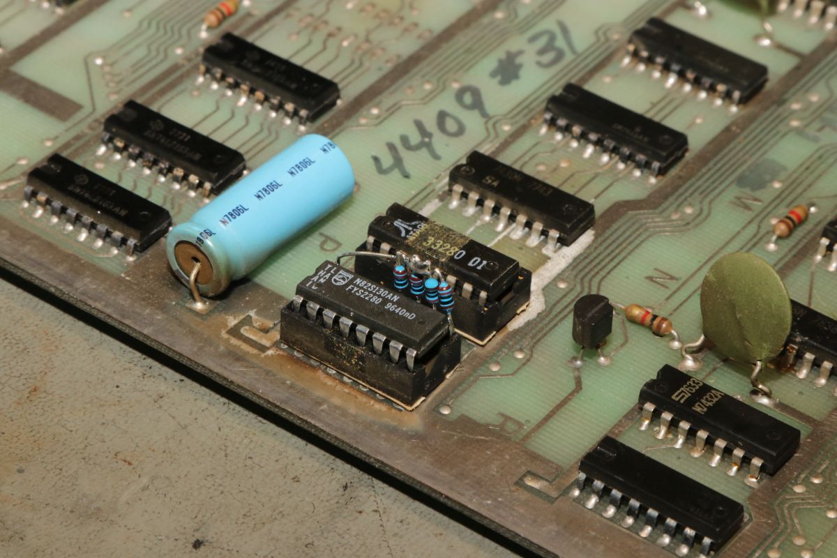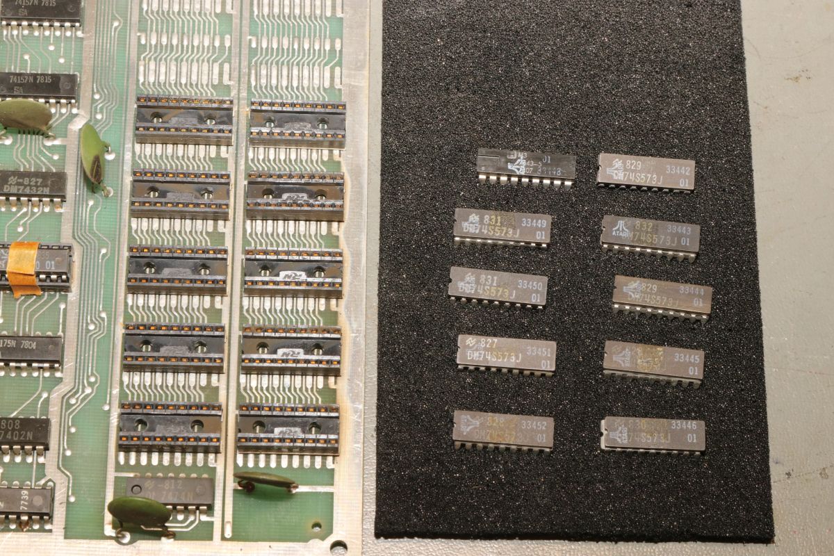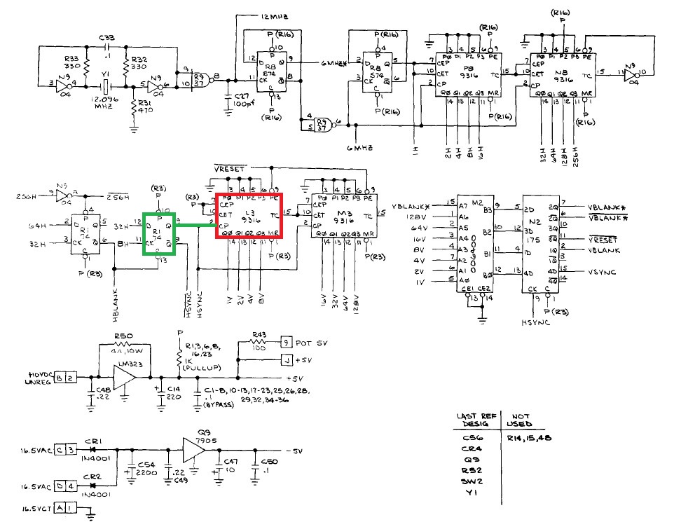 {Super Breakout} Ein weiteres Spiel aus der Arcade-Steinzeit. Aber im Gegensatz zum Breakout besitzt Super Breakout immerhin schon mal einen Prozessor und ein ROM. Der Prozessor ist - trotz verwirrender Atari-Sondernummer 90-6010 - nur ein schnöder 6502. Die ROMs sind bipolare PROMs 1024x4. H-Sync ist vorhanden, V-Sync ist tot und der 6502 ist im Dauerreset. Also fängt man am besten ganz von vorne an: die Taktteilerkette. Ein 74161 (6316) ist völlig tot und unterbricht damit die Teilerorgie. Divide et impera! Der Tausch führt zu einem stabilen guten Videosignal und die 6502 kommt aus dem Reset heraus... Sieht ordentlich aus - aber so richtig ändert sich am Bildinhalt noch nichts.... Da werde ich mich noch weiter durch den Schaltplan durcharbeiten müssen... {Super Breakout - Reparatur} Die CPU läuft ja nicht wirklich gut - ich teste das ROM durch und stelle fest, dass manche ROMs nicht mal 5V bekommen... Das kann ja nicht funktionieren! Die Sockel sind eigentlich gut und vergoldet, aber sie kontaktieren alle nur an einem Punkt am Pin. Durch die hohen Temperaturen der bipolaren PROMs und durch Korrosion ist diese Stelle bei fast allen Pins eingedrückt und extrem korrodiert. Alle Sockel müssen raus! Das ist eine fiese Arbeit... ... die sich lohnt! Jetzt kommen die guten Sockel zum Einsatz. Fertig bestückt, alles kontaktiert. Nichts geht. Mist! Die CPU hängt in der Interrupt-Schleife fest, es gibt kein Interrupt Acknowledge. Das könnte an einem völlig tauben 9301 BCD-zu-Dezimal-Decoder liegen... Ausgelötet ist der Kollege schnell... ... wieder ersetzt hingegen nicht. DM9301 ist Goldstaub. Es gibt ihn schlicht nicht mehr - und wenn, dann zu astronomischen Preisen. Mein Glück ist, dass es sich hierbei um einen 7442 mit unterschiedlichem Pinning handelt. Da muss wohl ein Adaptersockel her! Sieht nur halbwegs gut aus... ... passt aber perfekt. Die CPU läuft! Das Spiel startet, sieht aber noch suboptimal aus. Das nächste Miststück: ein taubes PROM vom Typ 74S131 - ein bipolares PROM 2kx4 Tri-State. Hab ich natürlich nicht vorrätig... Aber hey, noch eine ganze Schublade 74S130 - das Gleiche in Open-Collector! Es kommt wieder mal meine antike Brennerei zum Einsatz: Und Pull-Up-Widerstände machen aus einem Open-Collector fast ein Tri-State - zumindest mit passivem High. Hier reicht das. Das Spiel läuft wieder einwandfrei - sogar mit abwechslungsreichen Spielleveln! Quasi Arkanoid für Arme! Jetzt fehlt noch die Diagnose der Controls und des Sounds. |