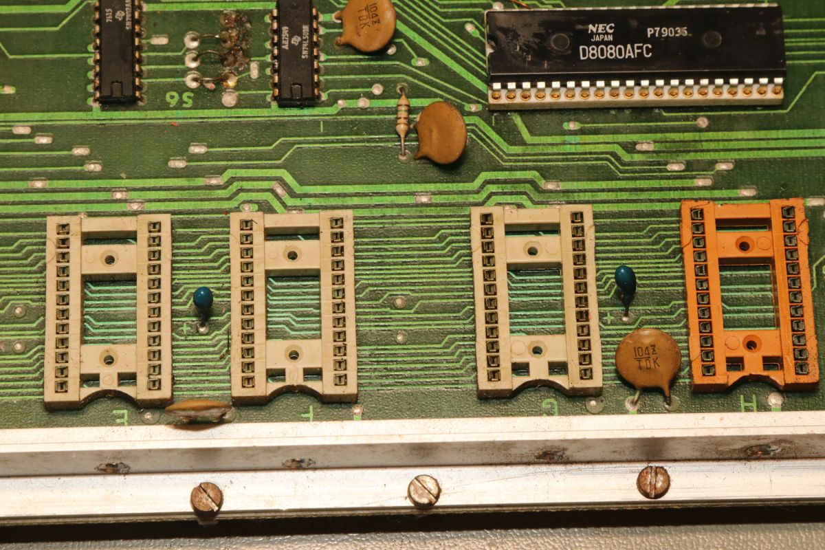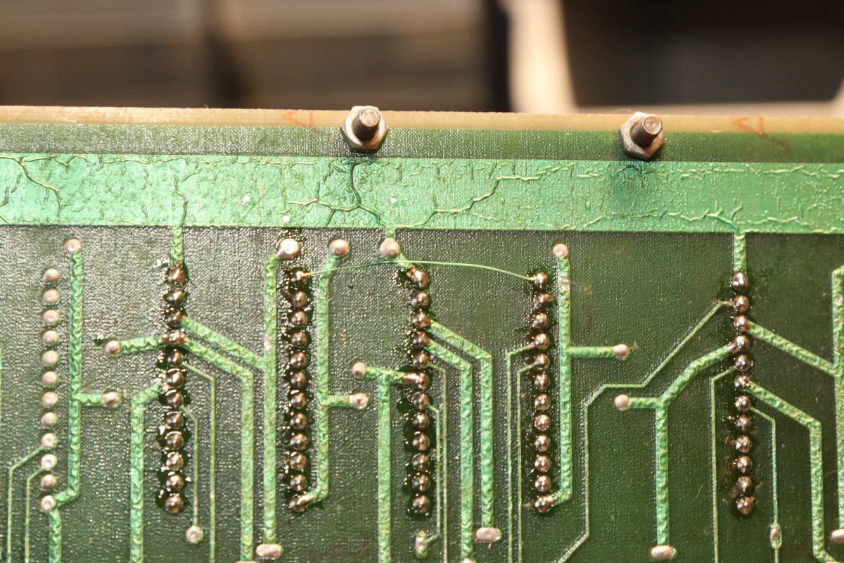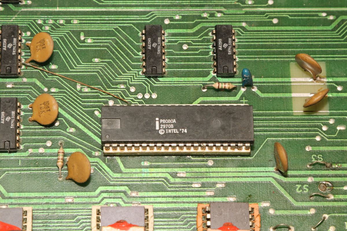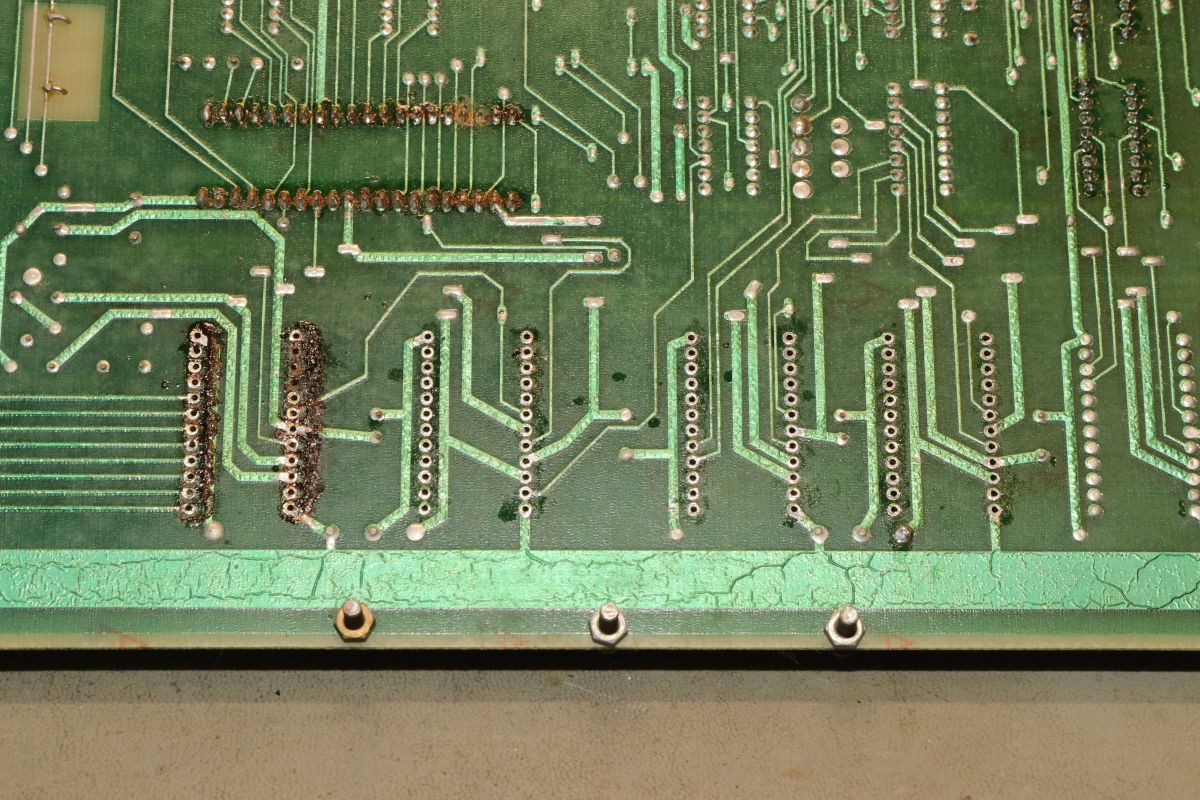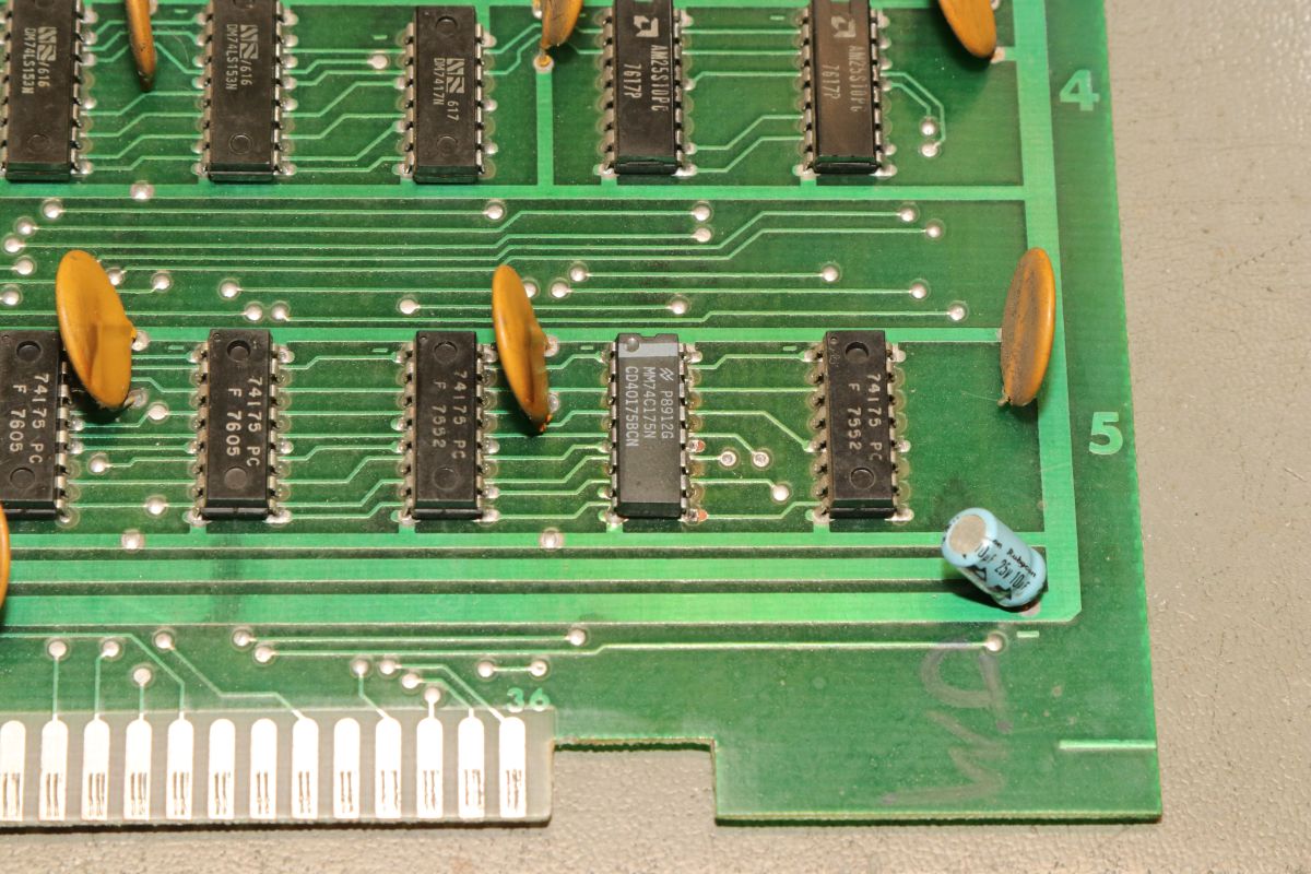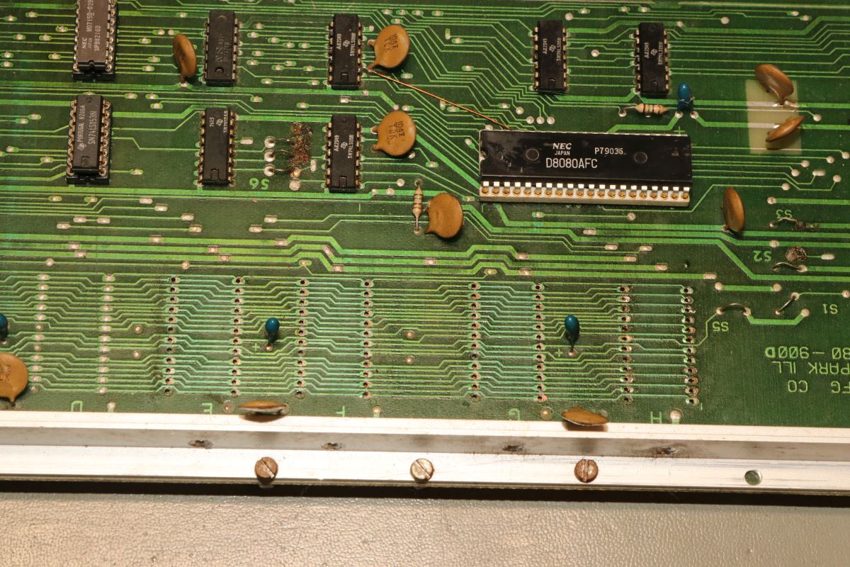 {Midway Sea Wolf} Auf meinem Labortisch landete wieder eine Midway Sea Wolf. Space Invaders Hardware und eigene Zusatzplatine mit I/O und diskreten Schieberegistern auf der senkrechten Platine. Ein vollständiger Test ist ohne Automat kaum möglich, aber hier startet das Spiel schon mal nicht richtig. Das Programm steckt hier in vier bipolaren PROMs mit je 1kx8. Weil die Dinger gut heiß werden, hat sich mal jemand sinnvolle Gedanken zur Kühlung gemacht. Außerdem halten die Teile so ganz gut in den Sockeln Der Programm- und Bildschirmspeicher steckt in Intel 2107 - 4k x 1 dynamische RAMs. Der Rechenknecht: Intel 8080. Auf der senkrechten Platine sind auch noch Logikbereiche untergebracht, die man nicht vegessen sollte. Einerseits wird hier die I/O abgevespert, andererseits geschieht hier auch einiges zum Bildaufbau: für die bewegten Sprites residieren hier vier 4-Bit-Schieberegister vom Typ 25S10. 1975 gefertigt und 1978 schon repariert... Egal... die Garantie ist eh abgelaufen. Vor 47 Jahren... Es sieht aus, als ob die PCB eine Fehlfertigung war, bei der man Kurzschlüsse beseitigt hat... Und auch sonst ist da schon ganz schön herumgebraten worden... Das ist das minimale Setup für die Stromversorgung. Hinzu kommen noch der FBAS-Anschluss und die Reset-Leitung. Ohne händischen Reset tut sich erst mal nichts, der muss nämlich von außen herangeführt werden und ist High-Aktiv! Hey... da läuft ja was... Sieht gut aus, wenige Sekunden lang, dann stürzt das Programm ab. Reproduzierbar! Die Steckverbinder geputzt - hilft aber nichts. Kurzfristig kommt dann mal ein Sprite mit senkrechten Fehlern. Aber auch das hält nicht lange. Die 4-Bit Bustreiber 8216 sind suspekt - gut, dass ich sowas in meinen Schatzkisten auf Lager habe... Die alten Bausteine raus... Sie sind eigentlich hübsch, aber kaputt. Die neuen Bausteine rein - jetzt sehen die Signale ordentlich aus, das Spiel läuft aber trotzdem nicht. Der Multiplexer war mit in den Abgrund gezogen worden. Sauber ersetzt: Und schon läuft das Spiel langfristig und ohne Absturz: Die Sprites sind streifig und das ganze Konstrukt ist extrem stoßempfindlich. Nächster Schritt: PROMs sockeln. 27S81 - diese PROMs sind echt selten. Auf der Platine kann man auch 2708 und ähnliche EPROMs einsetzen, das wird dann über Drahtbrücken gejumpert. Die Schraubkonstruktion mit einem Platinenstückchen dazwischen diente wohl eher der mechanischen Stabilität. Einige Komponenten auf der Platine heizen gut, das ist aber bei den alten 8080-Systemen normal. Auch die neuen NEC Bustreiber heizen... ... die schnellen Zählerbausteine sowieso. Die Programm-ROMs halten sich in Grenzen. Die Sockel haben ihre besten Zeiten lange hinter sich. An einem der ROMs ist schon rumgebraten worden, das geht besser. Raus mit dem alten Mist! Gut reinigen... Vor allem auf der Unterseite! Und dann kommen die guten gedrehten Sockel rein. O.K., das war's jetzt nicht... Da hat doch tatsächlich eine Durchkontaktierung aufgegeben. Wir haben ein stabiles Bild mit Fehlern, aber dafür völlig ohne Wackelkontakte. Die Fehler sind nur bei den Sprites und diese werden auf der senkrecht stehenden Tochterplatine über Schieberegister bearbeitet, weil der 8080 das pixelweise Verschieben in der Zeit nicht hinbekommen würde... Die Schieberegister laufen, aber die Flipflops davor sind teilweise defekt (74175). Schon viel besser: Da war noch eines... Endlich haben wir ein fehlerfreies Bild! Auch das Coinen und das Abschießen der Torpedos funktioniert (wenn man 12V an den Pin für VLED anlegt - die extra-Versorgung für die Optokoppler...). Reparaturen an der I/O-Platine: Reparaturen auf der Hauptplatine: |