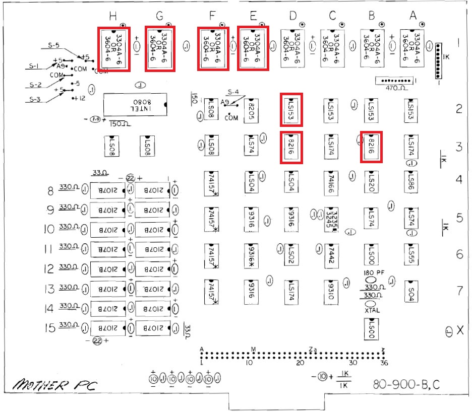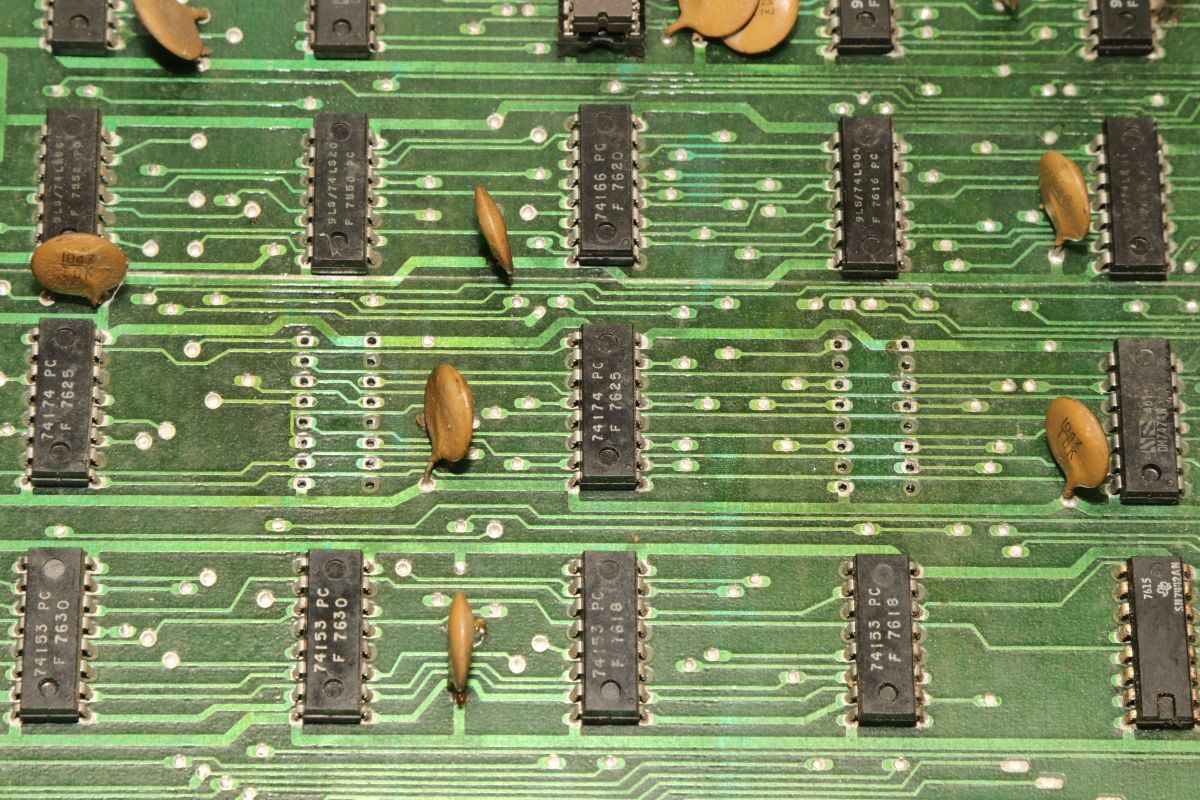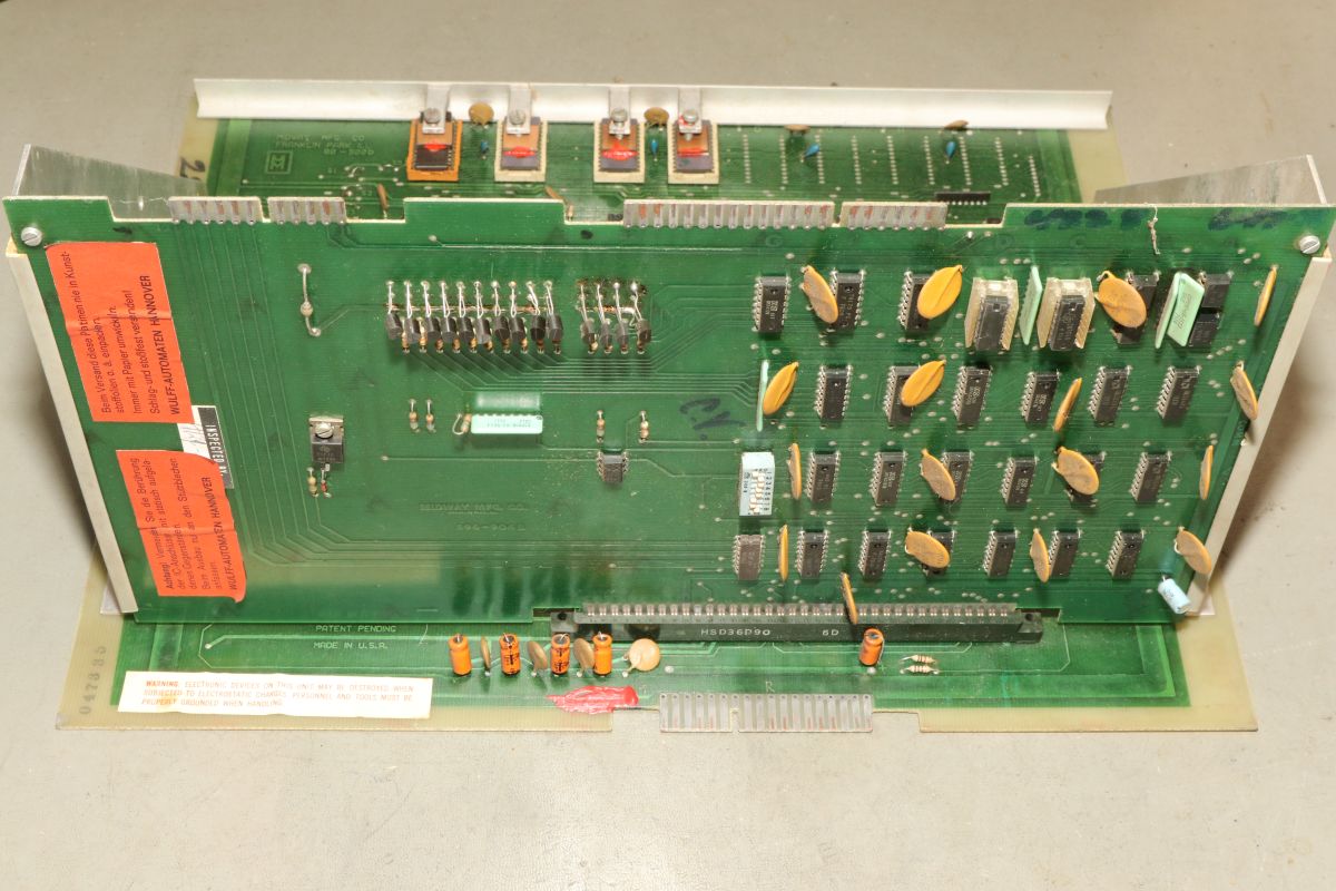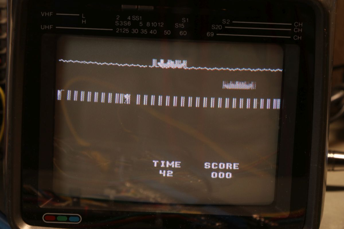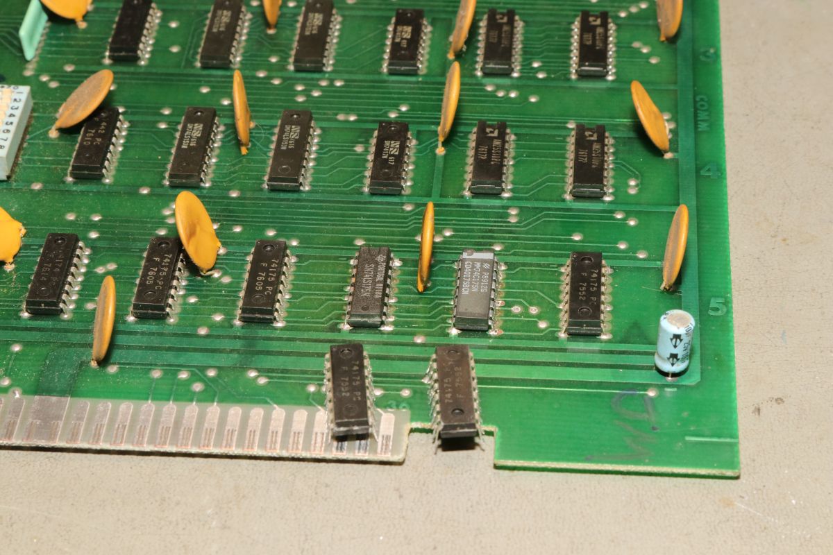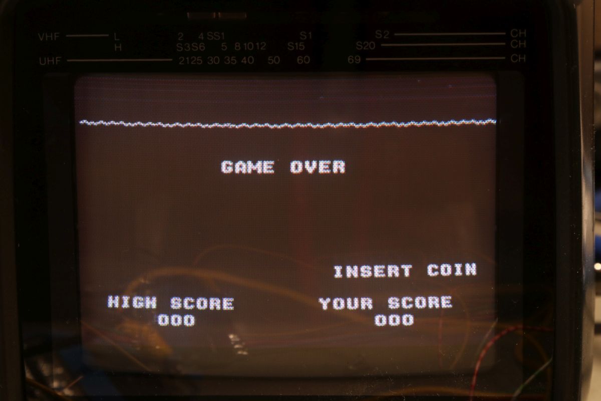 {Midway Sea Wolf} Auf meinem Labortisch landete wieder eine Midway Sea Wolf. Space Invaders Hardware und eigene Zusatzplatine mit I/O und diskreten Schieberegistern auf der senkrechten Platine. Ein vollständiger Test ist ohne Automat kaum möglich, aber hier startet das Spiel schon mal nicht richtig. Das Programm steckt hier in vier bipolaren PROMs mit je 1kx8. Weil die Dinger gut heiß werden, hat sich mal jemand sinnvolle Gedanken zur Kühlung gemacht. Außerdem halten die Teile so ganz gut in den Sockeln Der Programm- und Bildschirmspeicher steckt in Intel 2107 - 4k x 1 dynamische RAMs. Der Rechenknecht: Intel 8080. Auf der senkrechten Platine sind auch noch Logikbereiche untergebracht, die man nicht vegessen sollte. Einerseits wird hier die I/O abgevespert, andererseits geschieht hier auch einiges zum Bildaufbau: für die bewegten Sprites residieren hier vier 4-Bit-Schieberegister vom Typ 25S10. 1975 gefertigt und 1978 schon repariert... Egal... die Garantie ist eh abgelaufen. Vor 47 Jahren... Es sieht aus, als ob die PCB eine Fehlfertigung war, bei der man Kurzschlüsse beseitigt hat... Und auch sonst ist da schon ganz schön herumgebraten worden... Das ist das minimale Setup für die Stromversorgung. Hinzu kommen noch der FBAS-Anschluss und die Reset-Leitung. Ohne händischen Reset tut sich erst mal nichts, der muss nämlich von außen herangeführt werden und ist High-Aktiv! Hey... da läuft ja was... Sieht gut aus, wenige Sekunden lang, dann stürzt das Programm ab. Reproduzierbar! Die Steckverbinder geputzt - hilft aber nichts. Kurzfristig kommt dann mal ein Sprite mit senkrechten Fehlern. Aber auch das hält nicht lange. Die 4-Bit Bustreiber 8216 sind suspekt - gut, dass ich sowas in meinen Schatzkisten auf Lager habe... Die alten Bausteine raus... Sie sind eigentlich hübsch, aber kaputt. Die neuen Bausteine rein - jetzt sehen die Signale ordentlich aus, das Spiel läuft aber trotzdem nicht. Der Multiplexer war mit in den Abgrund gezogen worden. Sauber ersetzt: Und schon läuft das Spiel langfristig und ohne Absturz: Die Sprites sind streifig und das ganze Konstrukt ist extrem stoßempfindlich. Nächster Schritt: PROMs sockeln. 27S81 - diese PROMs sind echt selten. Auf der Platine kann man auch 2708 und ähnliche EPROMs einsetzen, das wird dann über Drahtbrücken gejumpert. Die Schraubkonstruktion mit einem Platinenstückchen dazwischen diente wohl eher der mechanischen Stabilität. Einige Komponenten auf der Platine heizen gut, das ist aber bei den alten 8080-Systemen normal. Auch die neuen NEC Bustreiber heizen... ... die schnellen Zählerbausteine sowieso. Die Programm-ROMs halten sich in Grenzen. Die Sockel haben ihre besten Zeiten lange hinter sich. An einem der ROMs ist schon rumgebraten worden, das geht besser. Raus mit dem alten Mist! Gut reinigen... Vor allem auf der Unterseite! Und dann kommen die guten gedrehten Sockel rein. O.K., das war's jetzt nicht... Da hat doch tatsächlich eine Durchkontaktierung aufgegeben. Wir haben ein stabiles Bild mit Fehlern, aber dafür völlig ohne Wackelkontakte. Die Fehler sind nur bei den Sprites und diese werden auf der senkrecht stehenden Tochterplatine über Schieberegister bearbeitet, weil der 8080 das pixelweise Verschieben in der Zeit nicht hinbekommen würde... Die Schieberegister laufen, aber die Flipflops davor sind teilweise defekt (74175). Schon viel besser: Da war noch eines... Endlich haben wir ein fehlerfreies Bild! Auch das Coinen und das Abschießen der Torpedos funktioniert (wenn man 12V an den Pin für VLED anlegt - die extra-Versorgung für die Optokoppler...). Reparaturen an der I/O-Platine: Reparaturen auf der Hauptplatine: |