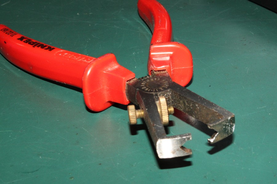 {Abisolieren} Wer öfter Jamma-Adapter oder Ähnliches bauen muss, weiss, welchen Aufwand es bedeutet, diese Vielzahl von Kabeln abzuisolieren. Im schlechtesten Fall benutzt man die eigenen Zähne als Werkzeug, das geht und macht auf Dauer den Zahnarzt glücklich. Ein Seitenschneider ist auch eine Möglichkeit, allerdings wird das Kabel in der Vielzahl der Fälle immer ein kleines Stückchen kürzer, wenn man den richtigen Druckpunkt nicht findet. {Besseres Werkzeug} Wie fast überall gibt es hier einfache und automatische Varianten. Die einfache Abisolierzange muss auf den Radius der Kupferlitze mittels eines arretierbaren Stellrädchens eingestellt werden, die automatische Zange stellt sich über einen justierbaren Druckpunkt automatisch auf die Kabeldicke ein. {Automatik macht's einfach...} Bei der Automatikzange geht das Ganze recht fix: das Kabel wird auf die gewünschte Abisolierlänge in die Zange eingelegt, die Zange wird zugedrückt. Die vorderen Backen fixieren die Isolierung und die hinteren Klauen reißen den Isolierrest einfach ab. Erinnert irgendwie an Alien, ist aber weniger blutig. Nach dem Abisolieren sollte man die Lfreien Litzenenden verdrillen, um ein Aufspleißen zu verhindern. |