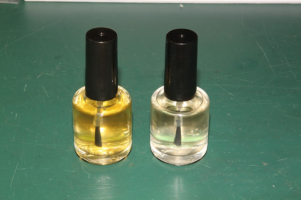 {Flussmittel selber machen} Es packte mich dereinst der Ehrgeiz, fine pitch IC-Beinchen noch schöner löten zu können... Um Lötzinn schön glänzend und bei guter Oberflächenspannung (also frei von Oxydationsresten) zu halten, benötigt man Flussmittel. Im guten Lötzinn ist schon was drin. Aber das ist bei größeren Flächen nicht genug. Folglich kaufte ich in einem bekannten Online Auktionshaus für knapp 20 Euro eine kleine 100ml Flasche "Flussmittel "No Clean" GSP-2533RX... Kolophonium zerkloppt und mit Isopropanol in das Fläschchen, ab und an mal schütteln, aber das löst sich in einer halben Stunde auch von selbst auf... Man kann gut ein Viertel bis zur Hälfte des Fläschchens locher mit Kolophoniumstaub füllen und dann mit Alkohol auffüllen, das löst sich immer gut auf! Und mann kann verschieden dosieren, je nach Anwendungsfall: Jetzt kann das Zeug mit dem Pinsel überall praktisch aufgetragen werden. Dann Löten und glücklich sein! Es trocknet schnell und klebt noch ein wenig, die Fingerabdrücke hab ich nach 30 Sekunden gemacht, aber das Flussmittel ist trotzdem auf der Unterlage geblieben. Bei Bedarf kann man mit einem Fön nachhelfen, aber besser, man lötet gleich. Dafür ist es ja auch gedacht! Ich hab übrigens noch 18 Fläschchen und 495g Kolophoniumbrocken übrig... |