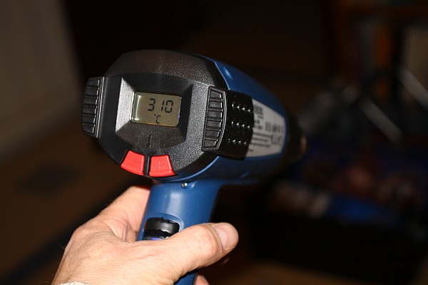 {Vorgehensweise} Der auf 320-350° eingestellte Fon mit dünner Düse (die richtige Temperatur sollte man an einer Probeplatine ermitteln, ebenso die Zeit, die die Platine zum Aufheizen benötigt! Das Epoxyd darf sich gering heller färben, diese leichte Delaminierung geht bein Erkalten wieder zurück. Blasen werfen darf es auf keinen Fall, dann ist der Fön zu heiß! Die Aufheizzeit beträgt bei EPROM-Fassungen ca. 1-2 Minuten. Nicht vorher schon am Bauteil reißen, erst wenn alle Lötstellen flüssig sind!