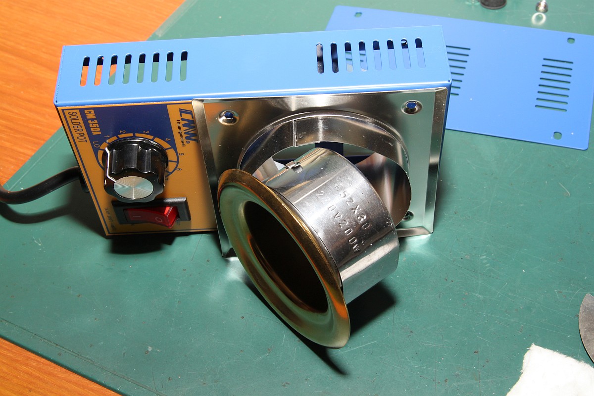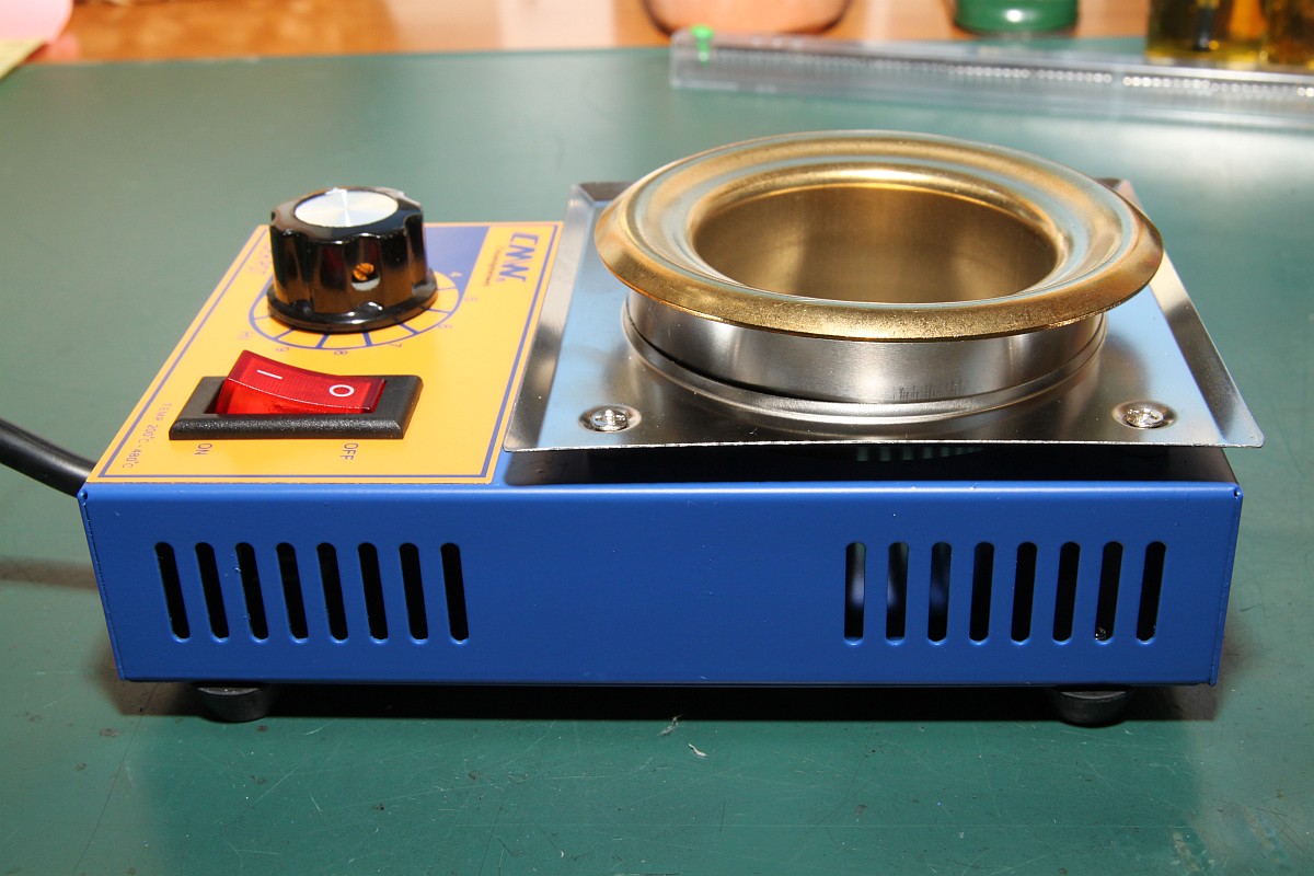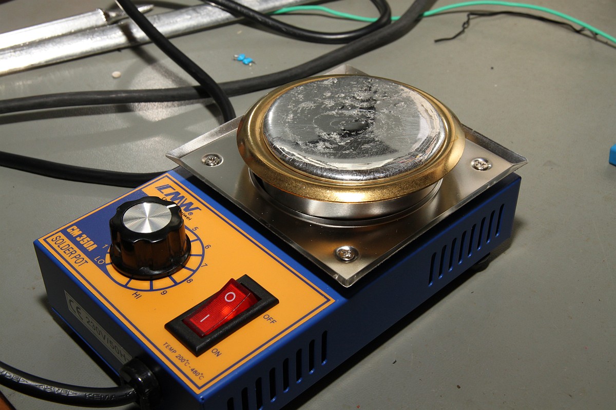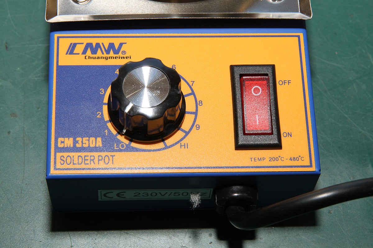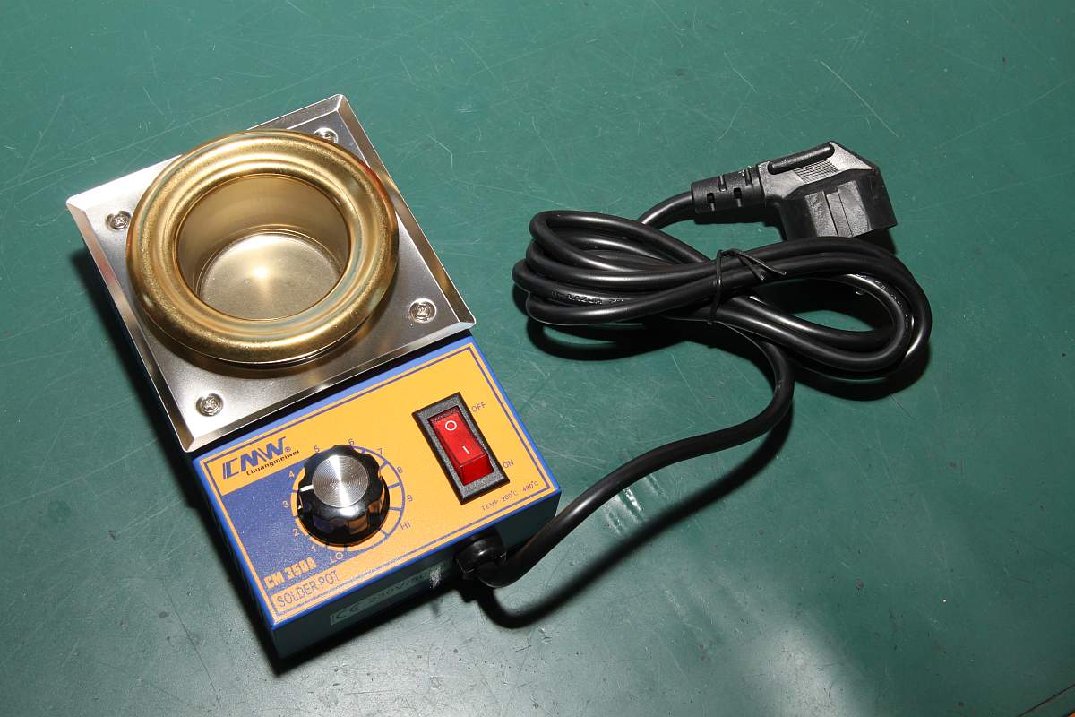 {Lötbad - ein Produkttest} Durch einen Artikel im Microcontrollerforum kam ich drauf: es gibt aus China superbillige Lötbäder, mit denen man vielleicht noch effektiver auslöten könnte, als mit dem Fön... Alle waren sich aber einig, dass die elektrische Sicherheit bei dem Krempel ein Problem darstellen könnte. Es waren sich aber auch alle einig, dass die Teile noch niemand mal richtig in Augenschein genommen hatte. Also bin ich mal wieder der Erste. ;-) Für 25 Euro aus Tschechien kann man erst mal nicht meckern, zumal eine deutsche Versandadresse drinsteht. Die Lieferung kam nach zwei Tagen. Wow. Ester Eindruck: sauber, schwer und wertig. Ob jetzt der Tiegel natürlich mit "Titanium" beschichtet oder gold lackiert ist - wen interessiert das schon?