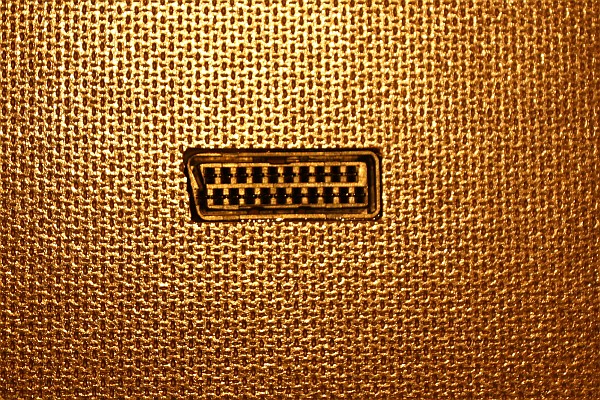 {MAK Eigenbau - Video} Am Originalautomaten nicht vorhanden, für die eigene MAK aber von großem Vorteil: standardisierte Video-Steckverbinder. Hir kann man über eine SCART-Buchse z.B. das Videosignal mit einem normalen SCART-Kabel zum Monitor führen. Ich habe einen lötbaren Scart-Stecker mit geraden Kontakten gewählt. Dieser wird in eine gefräste Aussparung in der Geräterückwand gelegt und rundherum mit zweikomponentenkleber eingegossen. Das hält ewig und sieht außerdem sehr sauber aus.