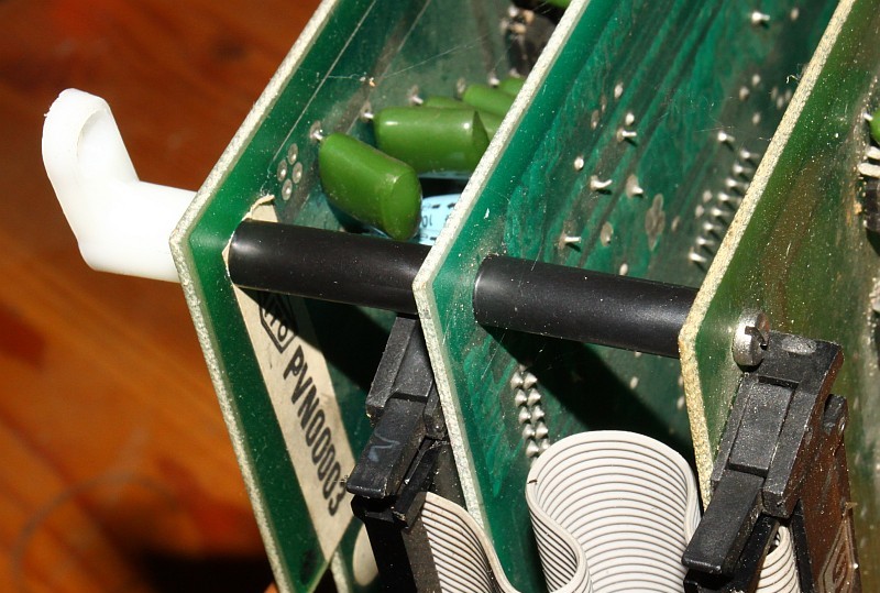 {Arcade Teilewelt} In vielfältigen Diskussionen in den Arcade-Foren ist mir immer wieder aufgefallen, dass es oft Unsicherheiten bezüglich der Benennung, Funktion und dem Aussehen von Einzelteilen gibt. Hier möchte ich mal eine bebilderte Hilfe zu diesen Themen anbieten. {Abstandshalter und Platinenfüße} Viele Arcade-Spiele bestehen aus doppelstöckigen oder noch mehr Platinen im Verbund. Damit diese nicht lose in der Gegend herumfliegen und unkontrolliert Kurzschlüsse erzeugen können, werden sie durch Abstandshalter von einander getrennt und in Position gehalten. Abstandshalter gibt es in der billigen, geclipsten Kunststoffvariante, die gerne abbricht und in der haltbaren Variante aus Schrauben und Abstandsröllchen (wie im Bild zu sehen). Der Vorteil der Schraubenlösung ist, dass Platinenfüße gleich mit aufgeschraubt werden können. Außerdem ist diese mechanisch deutlich stabiler! {Buttons} Irgendwie muss man die Arcade-Spiele ja bedienen können, dafür gibt es Drucktaster, sogenannte Buttons. Diese drücken einen mechanischen Stempel auf einen am unteren Ende angebrachten Microschalter. Alle Einzelteile sind normalerweise demontierbar und können bei Bedarf ersetzt werden. {Video-Stecker} Am Originalautomaten nicht vorhanden, für die eigene MAK aber von großem Vorteil: standardisierte Video-Steckverbinder. Hir kann man über eine SCART-Buchse z.B. das Videosignal mit einem normalen SCART-Kabel zum Monitor führen. Für die technisch Ansruchsvolleren unter uns gibt es auch Cinch-Buchsen in den passenden Farben, in die einzelne abgeschirmte Kabel gesteckt werden können. Der Monitor am anderen Ende sollte das passende Gegenstück aufweisen... {DC/DC-Wandler} Nicht jedes Schaltnetzteil liefert -5V, aber manche Audio-Stufen der älteren Spieleplatinen benötigen diese negative Spannung. Fehlt sie, bleibt meist der Ton stumm. Behelfen kann man sich mit einem galvanisch getrennten DC/DC-Wandler, der aus einer relativ beliebigen Eingangsspannung (ich nehme hier die +12V) eine 5V Ausgangsspannung produziert, die man aufgrund der galvanischen Trennung auch umgedreht an Masse anbinden kann, damit erhält man dann eine negative Hilfsspannung. {EPROMs} Irgendwo müssen ja die Daten für die Programme abgelegt werden, das macht man in sogenannten EPROMs (Eraseable Prorammable Read Only Memories). Jedes Bit wird in einem Transistor mit isoliertem Steueranschluss gespeichert. Dafür braucht man ein EPROM-Programmiergerät. Dieses zwingt die elektronischen Ladungen in die Isolierung und da verbleiben sie dann, auf 20 Jahre garantiert. EPROMs kann man wieder löschen, dafür ist das Fensterchen da. Dazu prügelt man die Elektronen mit hoch energetischen UV-Strahlen wieder aus der Isolierung raus. Dafür benötigt man ein EPROM-Löschgerät, sowas wie eine kleine Höhensonne. Es gibt auch EPROMs ohne Fenster, die sind im billigeren schwarzen Plastikgehäuse, haben aber intern den gleichen Chip drin. Die lassen sich nur einmal beschreiben und werden daher auch OTPROMs genannt. One Time Programmable. Die bekommt man angeblich mit einem Röntgengerät gelöscht, aber wer will das schon... |
