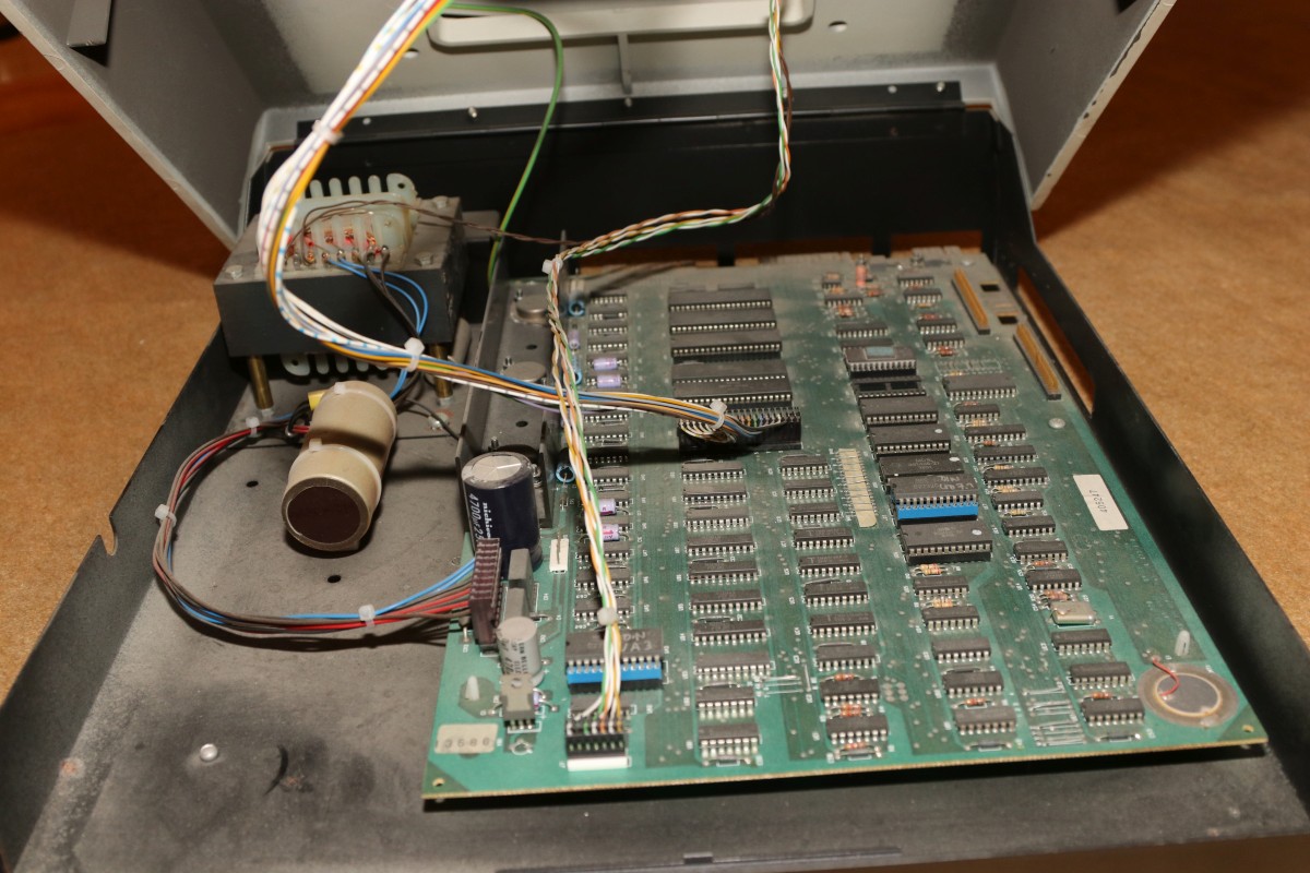 {Der CBM 4032/80} Irgendwie gibt es den garnicht... Oder doch? Aber der Reihe nach! Zu Beginn des Jahres wanderte ich nach einem anstrengenden Arbeitstag auf meiner Dienstreise so die Kastanienallee in Berlin entlang, wie mein Blick auf die fantastischen Schaufensterauslagen eines kleinen Computerladens fiel... DEN Rechner hätte ich auch gerne in meiner Sammlung, dachte ich mir. Ein halbes Jahr später schlug das Leben gnadenlos zu - der Besitzer verstarb, der Schaufensterinhalt musste schnell verkauft werden, da wurde ich in diversen Foren auf das Angebot aufmerksam. Und zu guter Letzt - und Dank einiger sehr netter Leute - bin ich nun an diesen Rechner gekommen. Seither ist es mir deutlich besusst geworden, dass alles sehr vergänglich ist und ich frage mich, was wohl mal mit meinen Geräten passieren wird. Aber heute noch nicht! Gekauft ungeprüft, wie gesehen... ich bin gespannt! Ein CBM Modell 4032/80. Moment, die Variante gibt es doch garnicht? Der CBM-Aufbau erinnert mich immer an meine Motorhaube beim Auto... Die Innereien sind verstaubt, aber trocken. Das Board ist aber kein 4032er... Mal sehen, was hinten so draufsteht: War klar - 8032-32B. Daher auch das 8032-80er Board innen drin. Das Label vorne scheint nicht original zu sein. Ungeduldig, wie ich bin, hab ich gleich mal eingeschaltet. Es tat sich - nichts... Das lag aber nur am Spannungsversorgungsstecker, ein Kontakt war schon mal etwas heißgelaufen, das ließ sich mit dem Rein-Raus-Spielchen lösen! Auweh... "Not great, not terrible!". Der Rechner lebt auf Anhieb - die Videorams dürften einen Schuss haben! Die Tastatur geht, die Zeichen lassen sich an bestimmten Adressen nicht korrekt abspeichern. Die Freude ist schon mal groß! Nach einer halben Stunde allerdings - das Gerät war ausgeschaltet aber eingesteckt - gab es aus dem Labor ein lautes "Plopp!" gefolgt von einem intensiven "Stink!". Klassischer Netzfilter-Fail! Wenn man den ausbauen will, muss man alles demontieren, sonst kommt man nicht an die Steckverbinder auf der Monitorplatine und das Erdungskabel am Monitorchassis dran!br> Alles mit wenigen Schrauben zu demontieren, sehr Wartungsfreundlich. Auch das Motherboard muss raus! Interessant: Die ROMs sind teilweise durch OTP-EPROMs ersetzt. Und weil 2732 nicht pinkompatibel mit den Mask-ROMs ist (oder 2532), gibt es Adaptersockel und umgebogene Beinchen! Hier ebenso: Hier ist ein Teil des dynamischen Arbeitssspeichers (4116). So, das Netzteil ist lose. Das Netzfilter befindet sich unter dem Trafo. Rustikale, deutsche Verdrahtungstechnik... Und solange ich auf das bestellte Ersatzfilter warte, kann ich ja mal die Platine putzen. Danach gründlich abtrocknen und mit dem Heißluftfön trockenpusten. Es lohnt sich! Die folgenden Platinenfotos sind überwiegend hoch auflösend. Auf Klick sieht man die ganze Pracht. Das ist übrigens der kleine Stinker... die gehen immer kaputt. Es geht sicher bald weiter!. {Das Netzfilter} . Das neue Netzfilter ist eingetroffen - nicht unbedingt nötig zur Reparatur, aber es hilft gegen EMV-Störungen. Der Transformator ist noch deutsche Wertarbeit - das erkennt man nach den Putzen. Auch die Bodenwanne erstrahlt nach dem Putzen in neuem Glanze... Da muss ich doch gleich mal das saubere Motherboard mit reinlegen. {Das Video-RAM} Die zwei Kilobyte Videospeicher stecken in den vier Stück 2114. Dem Monitorbild nach haben sie einige Defekte, ich tausche gleich mal alle aus. Das Auslöten gestaltet sich schwierig. Alle ICs haben nach innen gebogene Beinchen, damit sie beim Wellenlötbad nicht von der Platine hüpfen. Entlöten wird damit allerdings etwas problematischer. Die Dinger krallen sich fest. Saubere Sockel... Ja, der Heißluftfön hat die Platine etwas delaminiert, die ist echt empfindlich und verfärbt sich leicht... Nach dem Einschalten sind die Fehlzeichen weg... Aber hey, dafür lispelt der CBM jetzt. Comofofe... ich muss unwillkürlich an den Tyrannosaurus Rex mit Sprachfehler denken. Manche Tasten gehen problemlos, manche lösen je Spalte unterschiedlich aus und manche gehen sofort in die Autorepeat-Schleife - ganz seltsam! Der Vergleich der richtigen mit den falschen Zeichen im ASCII-Code liefert die Erkenntnis, dass Bit 1 und Bit 2 immer den gleichen Wert haben - das sollte ja so nicht sein. Vorher war das nicht so, ich sehe mir mal die Sockel an... Eine winzige Lötbrücke auf der Oberseite! Keine Ahnung, wie sowas da hin kommen kann. Endlich: der Rechner lispelt nicht mehr - das komische Autorepeat ist jetzt auch weg. Alles geht so, wie es soll, außer den dynamischen RAMs. Angezeigt werden beim Start nämlich nur 16k... {Das dynamische RAM} Die dynamischen RAMs 4116 mir drei Versorgungsspannungen sind ein steter Quell der Freude... Die gehen eigentlich immer kaputt. Gottseidank ist das diesmal im oberen RAM-Bereich, so läuft das Betriebssystem ungestört. Wer nicht sinnlos alle acht oberen RAMs tauschen möchte, analysiert mal den selbst geschriebenen Speichertest: 251 statt der erwarteten 255 - also vier zu wenig. Das ist Bit 2. Und Bit 2 befindet sich bei der oberen 16k-Bank in Baustein UA14. Also raus damit - diesmal bin ich vorsichtiger und sauge geduldig mit Heißluftunterstützung (200°C). Ich hab noch feine Sockel und noch feinere Keramik-4116er. Und schon sind die 32k wieder verfügbar! Nun ist der Rechner vollständig funktionsfähig - und toll aussehen tut er auch noch... Jetzt bleibt mir nur noch übrig, das Monitor-Chassis zu recappen!. {Kontaktprobleme} vorher allerdings möchte ich noch das Kontaktproblem am Stromversorgungsstecker beheben. Wenn man im Internet unter "MOLEX Serie KK" mit 3,96mm Stiftabstand sucht - bei den 9-poligen Steckverbindern wird man fündig. Das Set beinhaltet alles, was man benötigt: Stecker, Buchsengehäuse und Crimpkontakte... Der eine Pin am Originalstecker ist mächtig verzundert - der Federkontakt dürfte ähnlich ramponiert aussehen. Der Stecker lässt sich ganz leicht herauslöten, indem man jeweils eine Lötstelle flü