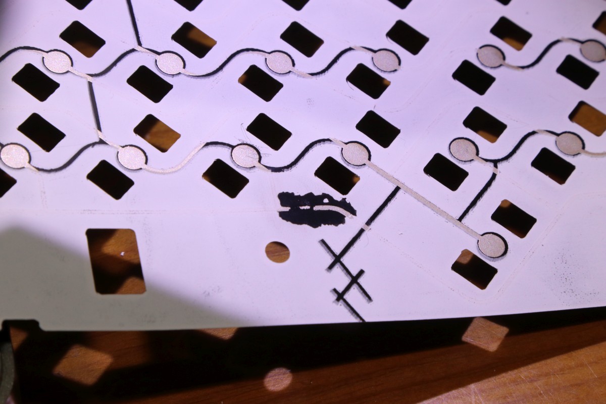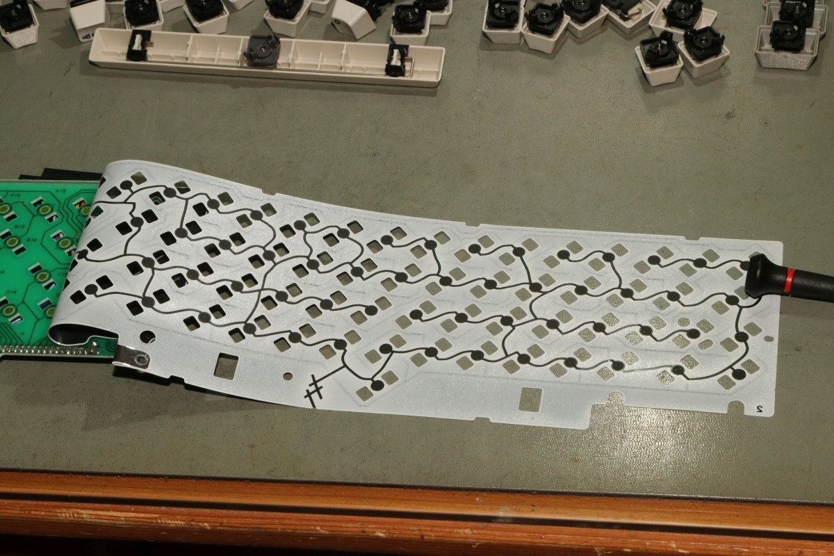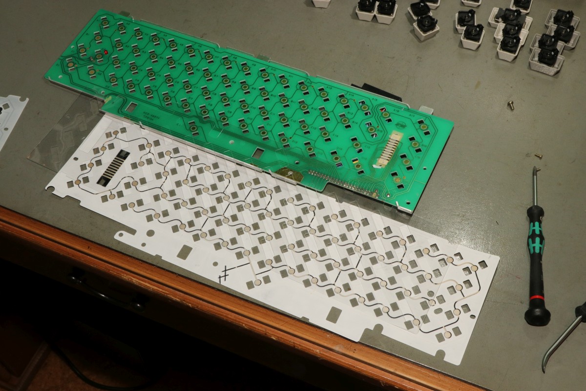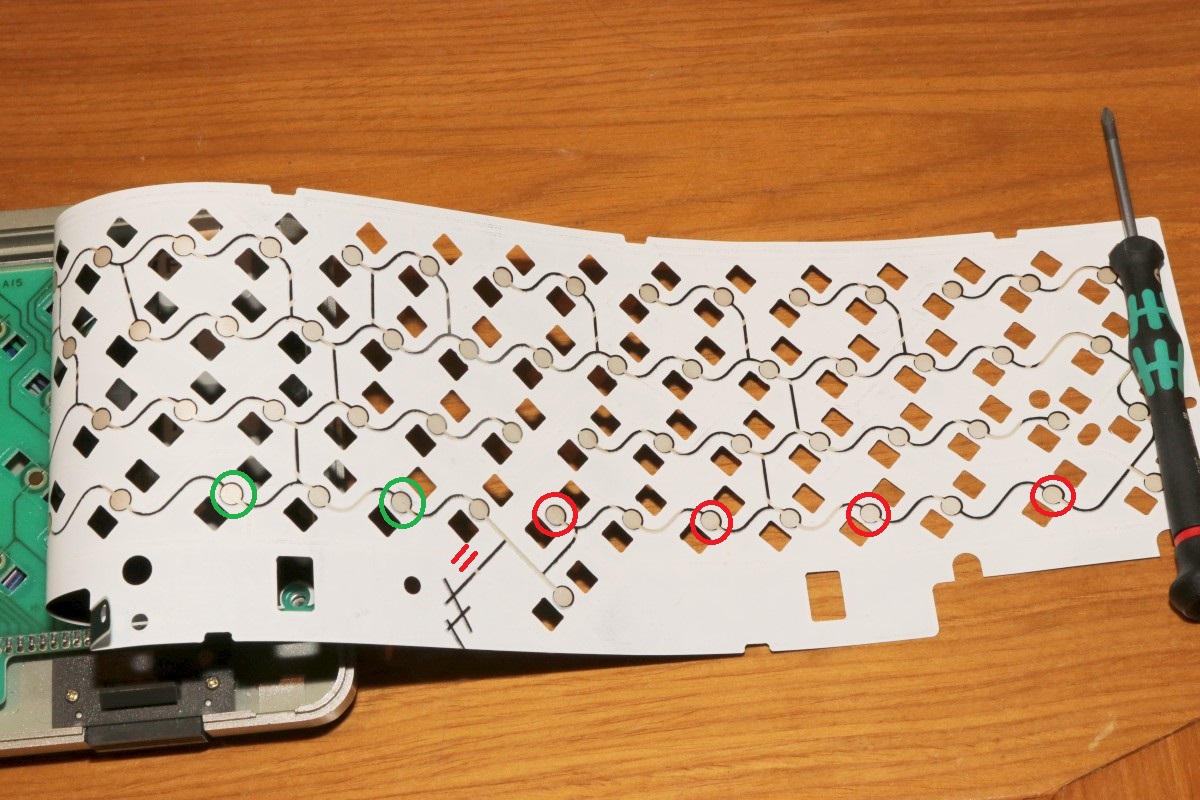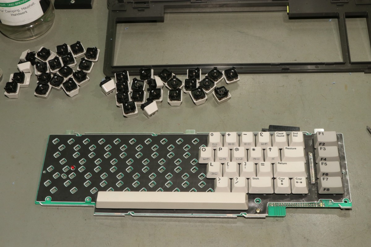{SX-64 - Tastatur im Doppelpack} Eigentlich wollte ich nur mal rasch jemanden glücklich machen... zwei Tastaturen aus der Elektrobucht in unterschiedlichem Verwesungsfaktor mit zwei neuen Tastaturmembranen ausstatten... Kleinigkeit, dachte ich... Das übliche nervige Tastenrauspopeln war noch unspektakulär... Wie gehabt: Membrane sorgfältig abheben und die Graphitflächen säubern und polieren... Den Unterschied sieht man deutlich: Brennspiritus ist hier das Mittel der Wahl! Dann die Tasten wieder mühsam reingepopelt... Leider zeigte sich nach dem Zusammenbau, dass die Membran doch zu beschädigt ist, um damit sinnvoll was anfangen zu können. Aber egal, es liegen ja zwei neue Membranen mit bei... Dazu muss die Alte raus, was immer die Kontaktreihe irreparabel beschädigt. Die neue Membran bringt aber wieder frische Kontakte mit. Hier waren mal Kontaktstreifen drauf, die kleben jetzt auf der Platine. Nach dem alle Kontaktflächen gereinigt sind: hier die neue Membrane mit Unterlegfolie für einen besseren Kontaktabstand. Die klare Folie kommt zwischen Platine und Kontaktmembrane! Der separate Kontaktstreifen muss vorher weg - die Kontaktflächen müssen so weit wie möglich gereinigt werden! Bei den neuen Membrane die Kontaktschraube für die Abschirmfläche nicht vergessen! Die neue Membrane hat extra eine Schaumstoffauflage über den Kontakten, damit diese zuverlässig kontaktieren: Super, da gehen schon mal eine ganze Reihe Tasten nicht, das fängt ja gut an... Wenn der Fehler immer so - äh... anders wäre... OK, das war ja einfach... Jetzt fällt auf, dass auch mit der neuen Membran ein Taster dauernd auslöst. Da hatte wohl wer gedacht, die ranzige Altmembran mit mehr Federkraft pimpen zu können... Mit einer Flachzange und Geduld lässt sich die derart gelängte Feder gottseidank wieder auf Maß bringen. Toll... dafür hab ich jetzt jede Menge Doppelauslösungen... diese sind darauf zurückzuführen, dass die neue Membran nicht 100%ig ausgerichtet ist und an den Durchbrüchen von den Tastengehäusen quasi aufgewölbt wird - da geht es um Zehntel Millimeter! Die beiden Befestigungsbohrungen für die Kontaktklemme sind unsauber ausgerichtet! da hilt ein Lötkolben, dann kann man die Membran auch passgenau ausrichten. Links und rechts mit einem Streifen Tesafilm fixiert, hält das dann auch bis zur Montage der Tasten. Drei Stunden Später und ich habe eine perfekt funktionierende Tastatur vor mir. Und bei der zweiten Tastatur, bei der so gut wie keine Tasten mehr gingen, dachte ich mir, mache ich es doch gleich richtig. Leider musste ich feststellen, dass einzelne Tasten nicht ansprachen. Das lag jetzt nicht an meinem Unvermögen, sondern an einem Fertigungsfehler der Membran: Eine Unterbrechung in der Leiterbahn (die natürlich überlackiert und unsichtbar ist) macht mir das Leben schwer. Vorsichtig mit Aceton freigelegt (auch der Silberlack löst sich ab! also sehr vorsichtig!) kann man sich an die Reparatur wagen... Hauptsache, links und rechts sind noch Leiterbahnstummel übrig... Viel Silberleitlack hilft viel... Und zu guter Letzt ist auch die zweite Tastatur funktionabel - Silberlack sei Dank! Alle Tasten funktionieren zuverlässig und gewaltfrei. Jetzt habe ich nur noch das Problem, dass bei einem Taster der malträtierten Tastatur ein Rastnäschen der inneren Mechanik gebrochen ist. Die Taste funktioniert, hängt aber im nicht gedrückten Zustand schief... Hat jemand eine vollig vergnaddelte SX-64-Tastatur als Ersatzteillager? Bevor ich die groben Varianten ausprobiere... Alternativ habe ich einen 3-D-Druck in Auftrag gegeben - und UV-härtenden Kunststoffkleber bestellt... irgendeine Variante wird schon klappen. Ich halte euch auf dem Laufenden. Aceton als Auflöse- und Klebemittel hilft hier übrigens leider nicht, der Kunststoff ist nicht Aceton-löslich! {UV-Kleber im Einsatz} Er ist eingetroffen - der UV-Kleber mit UV-LED-Taschenlampe. Nicht billig, aber billigst verarbeitet. Egal: der Kleber ist leicht zähflüssig und lässt sich gut dosieren. Wenn man mit der UV-Lampe dann draufhält, dampft es etwas und der Kleber verwandelt sich innerhalb von Sekunden in eine glasharte durchsichtige Substanz. Leider haftet dieser Kleber an dem Kunststoff ebensowenig, wie alles Andere... der Haken ist wieder abgefallen. Dafür hat der UV-Kleber selber eine sehr haltbare Nase gebildet, die in der Tastatur einwandfrei hält. Gut, dass ich den unteren Teil des Elementes großflächig benetzt hatte. |