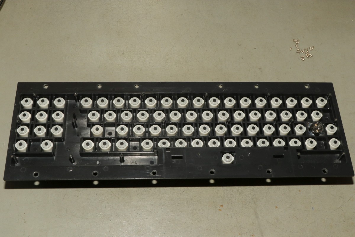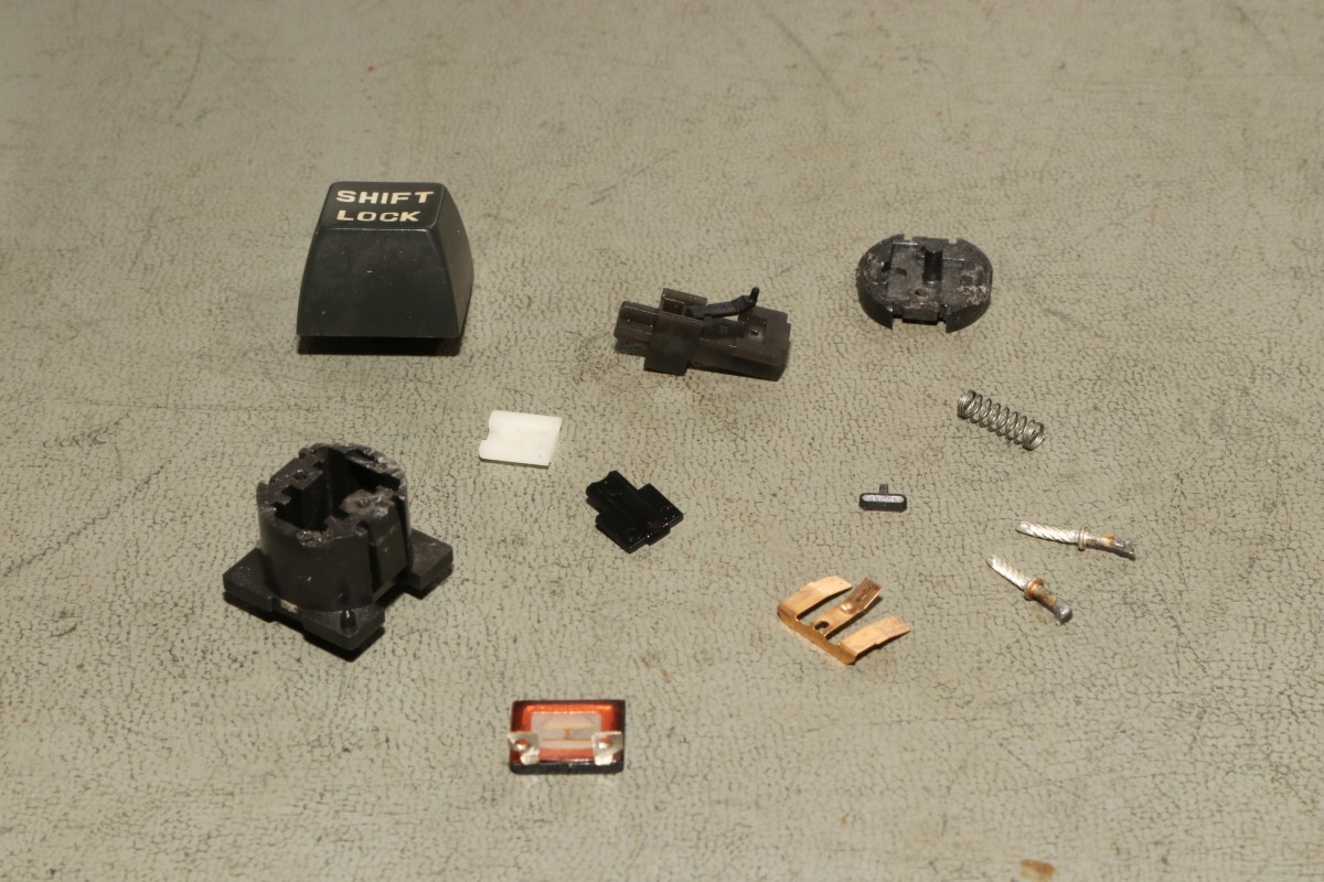 {CBM 8032-SK Tastaturreparatur} Bei meinem CBM-Konvolut war auch eine Tastatur mit amerikanischem Layout dabei - also teilweise schon umgesteckt und überklebt... Als Originalheimer kann ich das nicht so durchgehen lassen. Warum sind die Kabel ab? Und warum ist die Shift Lock Taste fest? Klar, da hat schon wer sein Glück erfolglos versucht! Da werde ich wohl mal Hand anlegen müssen! Nach Demontage von gefühlten 1000 Schräubchen zeigt es sich: da war schon ein Fachkräftemangel dran: Also das Wichtigste zuerst: das, was dieses Schaltergehäuse zusammenhält, sind die Anschlussstifte - die haben nämlich ein Gewinde! Die Rastmechanik ist genial - sie besteht aus einem locker aufgehängten Stift und einer Schaltkulisse mit diversen Schrägen - sehr filigran! Hier habe ich die Schaltkulisse verkehrt herum montiert - ich musste auch erst mal mehrere Versuche lang verstehen, wie das Teil eigentlich funktioniert! Nach gründlicher Reinigung, Abfeilen diverser überstehender Grate und diversen Fehlversuchen beim Lösen dieses Puzzles sowie der Beigabe von etwas Öl war der Schalter wieder zusammen und funktionierte sogar! Der Vorbesitzer hatte sogar die Haltefedern ruiniert - so musste etwas Heißkleber her. Nach dem Reinigen der gesamten Tastatur, dem Umgruppieren der Tasterkappen und Anlöten der Schalterkabel glänzt das Stück wieder wie neu! Und so wartet das gute Stück nun auf den Tag, an dem ich gerne mal ein amerikanisches Tastaturlayout hätte... ;-) |