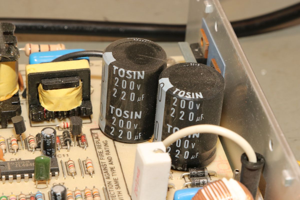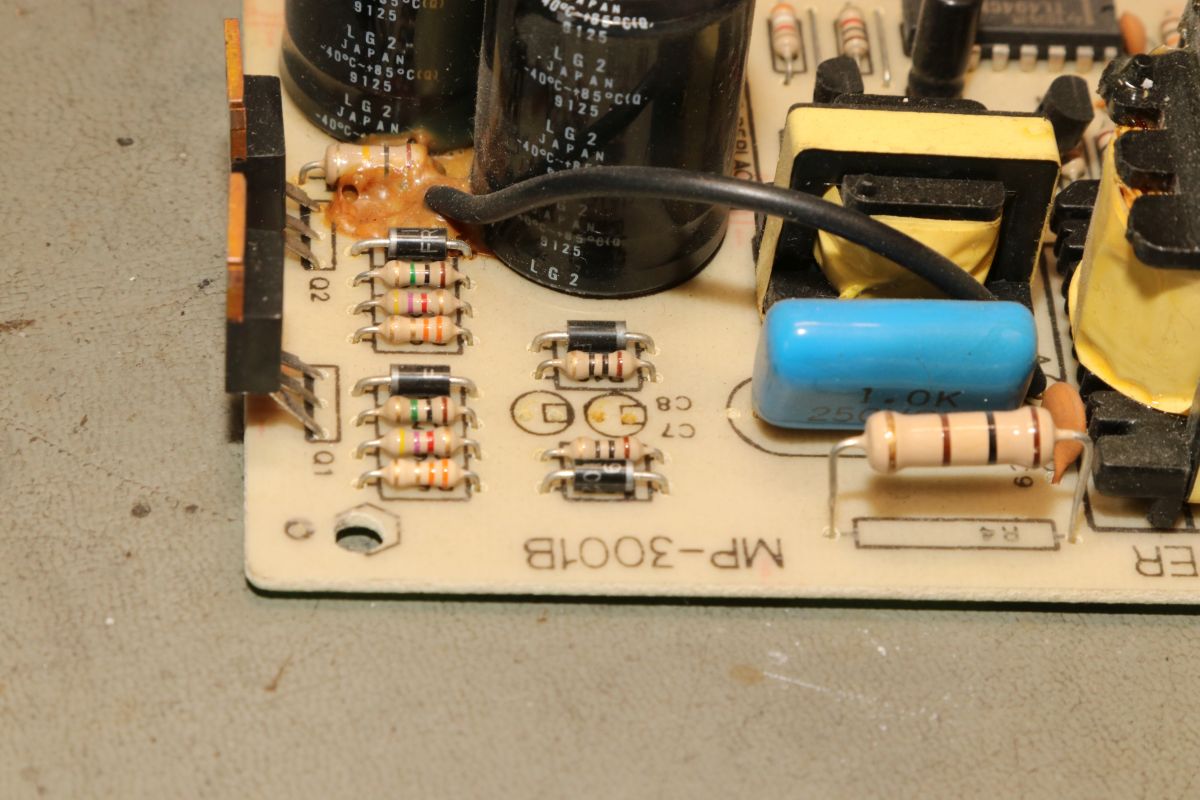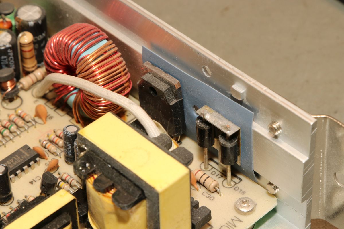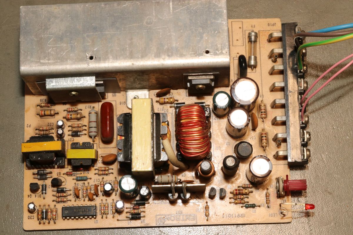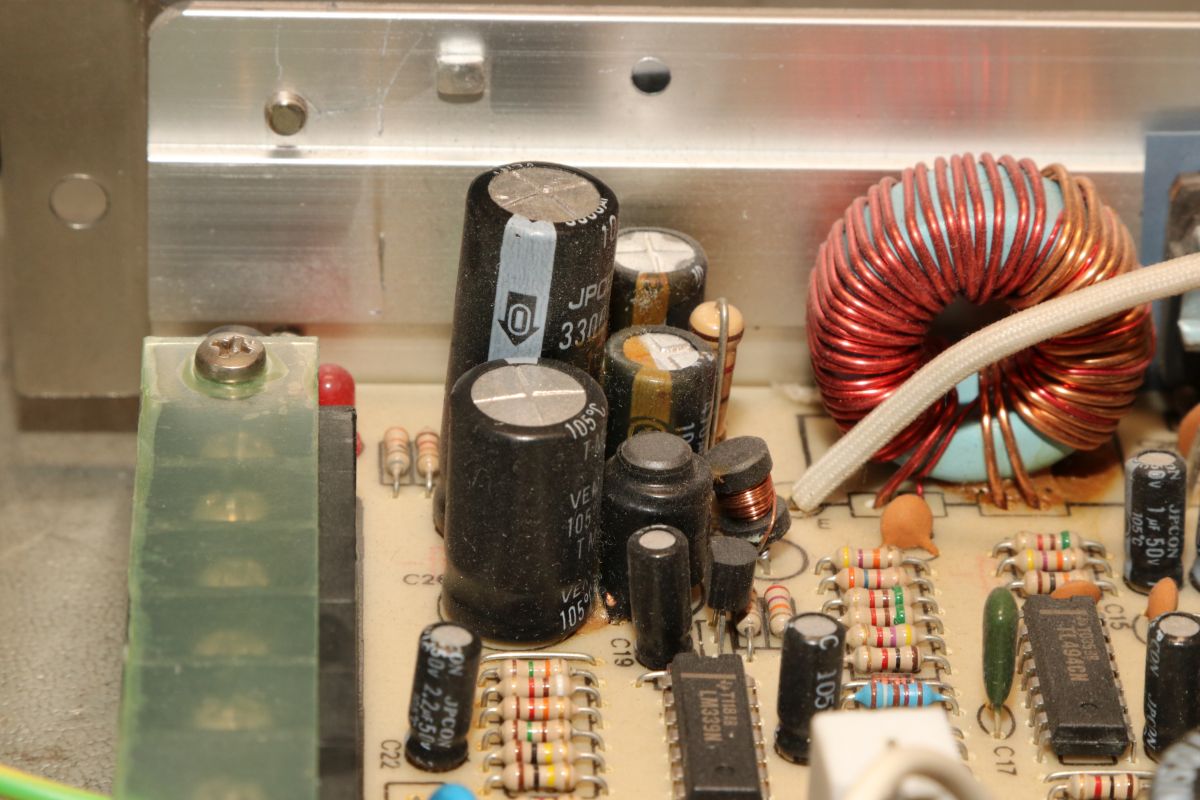 {Arcadenetzteile im Dreierpack - Teil 1: das Normale} Wer mit Arcadeplatinen hantiert, der benötigt Arcade-Netzteile. 5V, 12V und -5V sind nötig, viel Ampere sind gut. Diese Netzteile sind mittlerweile recht günstig und das hat seine Gründe. Erst einmal ist die Schaltung sehr einfach und zweitens nehmen die Hersteller teilweise so richtig billige Komponenten. Ganz selten ist mal ein Treibertransistor durchlegiert, das stellt man im ausgelöteten Zustand schnell mit dem Diodentester fest. Die hier waren in Ordnung, dann bleibt die wahrscheinlichste Ursache: ausgetrocknete Elkos. Sowohl die großen Pufferelkos an den Ausgängen, als auch die kleinen Hilfselkos für Reset, Timing, Überspannung etc. kommen in Frage - einfach alle raus! Die einzigen Elkos, die ich nur auf dringenden Bedarf tausche, sind die 200V-Eingangskreistypen, die sind teuer, schwer zu bekommen und selten defekt. Interessantes Detail bei dieser Art von Netzteilen: sie laufen ohne Grundlast, weil sie ihre Grundlast permanent selbst verbraten. das führt zu (ganz normalen) erheblichen Temperaturen an manchen Lastwiderständen... die Kisten bekommen keinen Umweltengel. {Arcadenetzteile im Dreierpack - Teil 2: das Luxusexemplar} Der zweite Patient kommt im schicken Strangpressgehäuse daher - war bestimmt nicht so billig wie die anderen Geräte... Die Ausgangselkos machen schon optisch dicke Backen... Die HV-Elkos sind O.K.. Hier muss man richtig arbeiten, um die Platine zu demontieren. 2SC3039 ist hier weit verbreitet... Die Ausgangsgleichrichter gehen nur sehr selten kaputt, kommt aber auch mal vor. Hier ist das gute Stück ohne Kühlkörper: Die Pluspole sind markiert - falls nicht, helfen Fotos... Die Ernte hat sich gelohnt. Nach Kondensatortausch funktioniert das Netzteil einbwandfrei. {Arcadenetzteile im Dreierpack - Teil 3: das Billige} Und dann noch der totale Billigheimer - billiges Blech, billige Montage, billige Platine... Lose Pins? Ach... die Transistoren sind rückwärtig montiert - mit aufgelegten Pads... Wie Kraut und Rüben... Wer findet die kalte Lötstelle? Der Schmodder ist Kleber - aber der Elko ist schon gut gewölbt. Und der hier zieht sich schon das Kleid aus, weil's so warm ist... Neubestückt - geht wieder. Bei der Qualität lohnt sich die Arbeitszeit aber nicht wirklich {Der Standard-Schaltplan} Wer nun für so ein Billignetzteil einen Schaltplan sucht, der zumindest ähnlich ist, wird beim Arcadespiel "Badlands" fündig. Die Gegentaktstufe mit 2SC3039 ist hier fast 1:1 mit drin. |