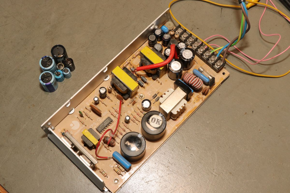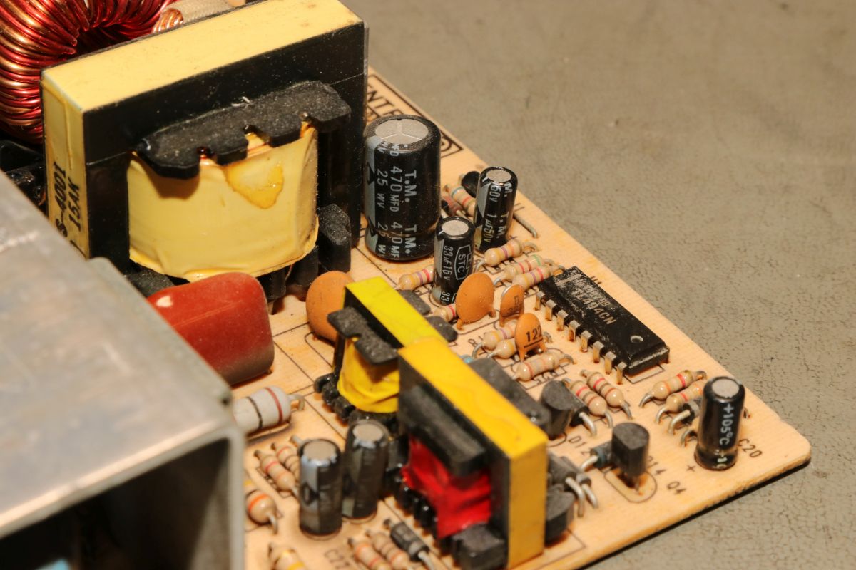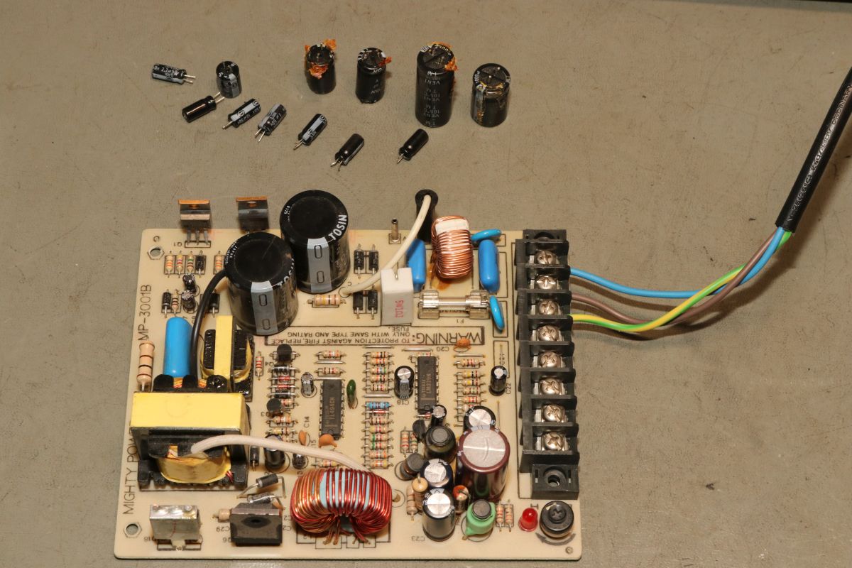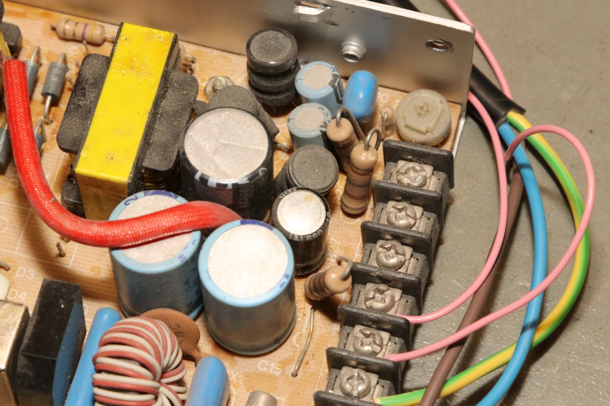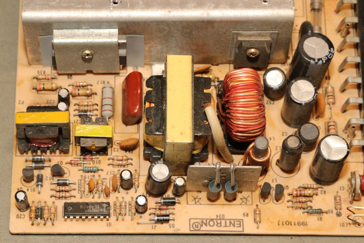 {Arcadenetzteile im Dreierpack - Teil 1: das Normale} Wer mit Arcadeplatinen hantiert, der benötigt Arcade-Netzteile. 5V, 12V und -5V sind nötig, viel Ampere sind gut. Diese Netzteile sind mittlerweile recht günstig und das hat seine Gründe. Erst einmal ist die Schaltung sehr einfach und zweitens nehmen die Hersteller teilweise so richtig billige Komponenten. Ganz selten ist mal ein Treibertransistor durchlegiert, das stellt man im ausgelöteten Zustand schnell mit dem Diodentester fest. Die hier waren in Ordnung, dann bleibt die wahrscheinlichste Ursache: ausgetrocknete Elkos. Sowohl die großen Pufferelkos an den Ausgängen, als auch die kleinen Hilfselkos für Reset, Timing, Überspannung etc. kommen in Frage - einfach alle raus! Die einzigen Elkos, die ich nur auf dringenden Bedarf tausche, sind die 200V-Eingangskreistypen, die sind teuer, schwer zu bekommen und selten defekt. Interessantes Detail bei dieser Art von Netzteilen: sie laufen ohne Grundlast, weil sie ihre Grundlast permanent selbst verbraten. das führt zu (ganz normalen) erheblichen Temperaturen an manchen Lastwiderständen... die Kisten bekommen keinen Umweltengel. {Arcadenetzteile im Dreierpack - Teil 2: das Luxusexemplar} Der zweite Patient kommt im schicken Strangpressgehäuse daher - war bestimmt nicht so billig wie die anderen Geräte... Die Ausgangselkos machen schon optisch dicke Backen... Die HV-Elkos sind O.K.. Hier muss man richtig arbeiten, um die Platine zu demontieren. 2SC3039 ist hier weit verbreitet... Die Ausgangsgleichrichter gehen nur sehr selten kaputt, kommt aber auch mal vor. Hier ist das gute Stück ohne Kühlkörper: Die Pluspole sind markiert - falls nicht, helfen Fotos... Die Ernte hat sich gelohnt. Nach Kondensatortausch funktioniert das Netzteil einbwandfrei. {Arcadenetzteile im Dreierpack - Teil 3: das Billige} Und dann noch der totale Billigheimer - billiges Blech, billige Montage, billige Platine... Lose Pins? Ach... die Transistoren sind rückwärtig montiert - mit aufgelegten Pads... Wie Kraut und Rüben... Wer findet die kalte Lötstelle? Der Schmodder ist Kleber - aber der Elko ist schon gut gewölbt. Und der hier zieht sich schon das Kleid aus, weil's so warm ist... Neubestückt - geht wieder. Bei der Qualität lohnt sich die Arbeitszeit aber nicht wirklich {Der Standard-Schaltplan} Wer nun für so ein Billignetzteil einen Schaltplan sucht, der zumindest ähnlich ist, wird beim Arcadespiel "Badlands" fündig. Die Gegentaktstufe mit 2SC3039 ist hier fast 1:1 mit drin. |