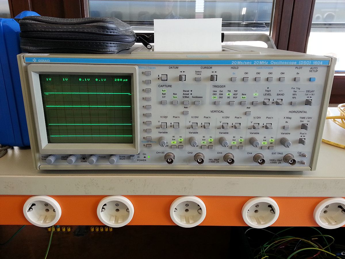 {Gould DSO 1604} Endlich konnte ich mich in meiner Firma mit dem beschäftigen, was mir am meisten Spaß macht: alten Elektroschrott reppen. Das 20 MHZ - 4 Kanal Digitaloszi, welches vor 20 Jahren über 20k gekostet hatte, erlag der geplanten Obseleszenz und starb mit heftigen Rauchschwaden und infernalischem Gestank. Trotzdem wollte ich sehen, ob sich da nicht etwas machen ließe:
