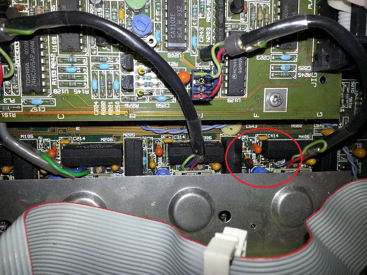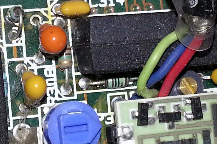 {Reparatur} Ein Tantalkondensator hatte sich entschlossen, spontan durchzulegieren und dabei den strombegrenzenden Vorwiderstand mit in den Feuertod gerissen. Glücklicher Weise ist jeder der vier Kanäle völlig gleich aufgebaut, was das Ablesen des Widerstands- und Kapazitätswertes deutlich vereinfachte: