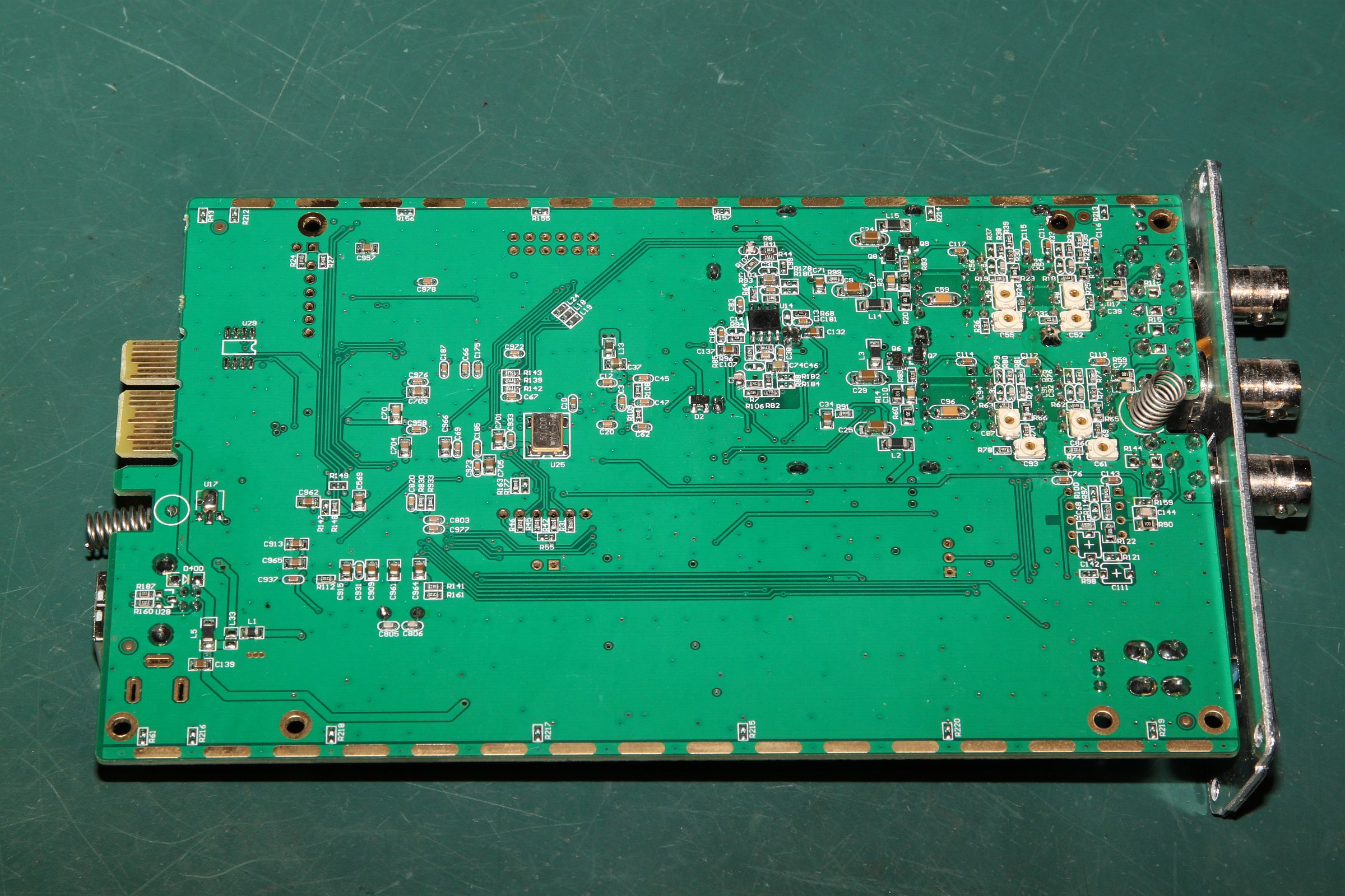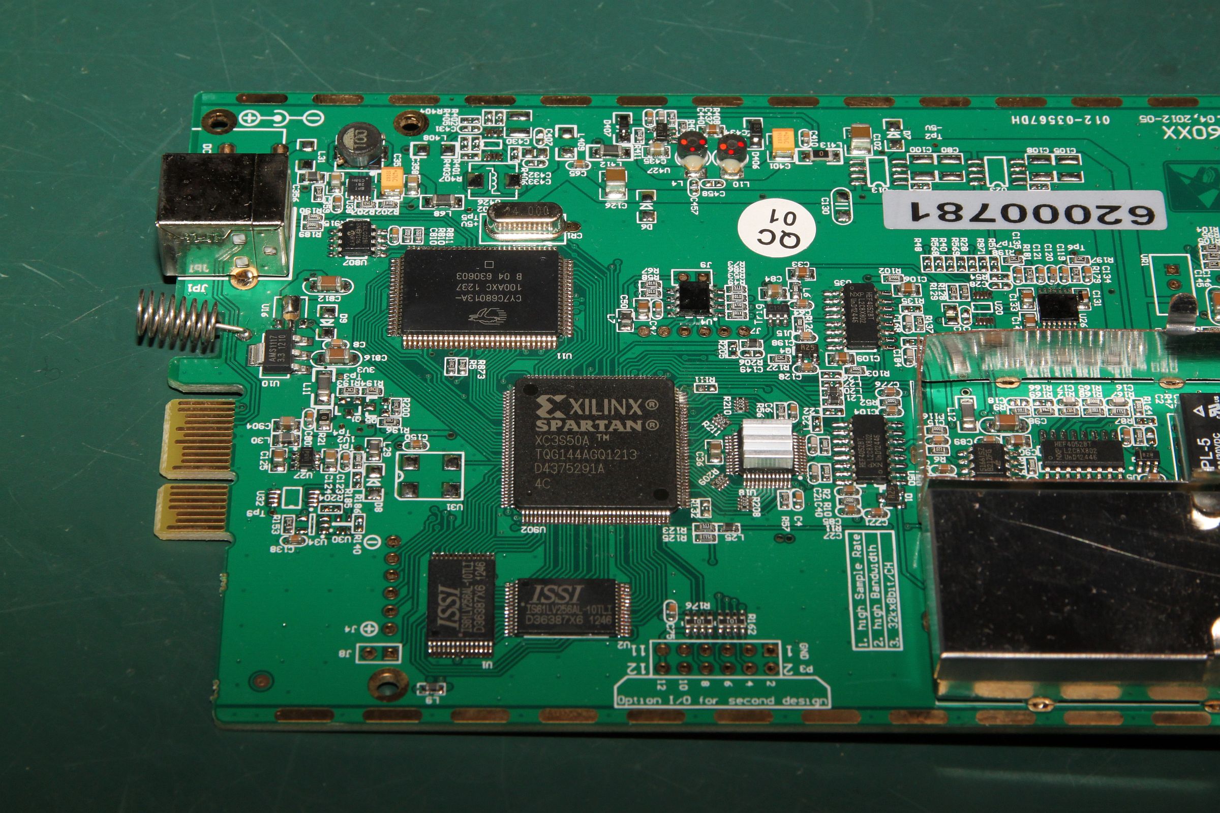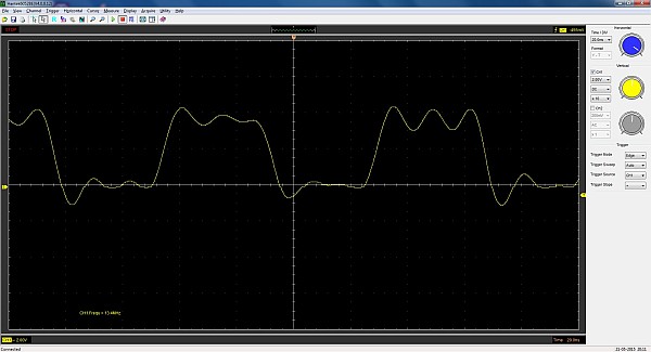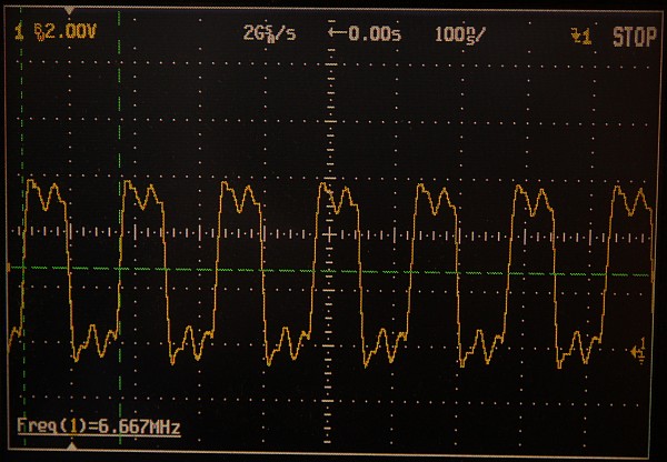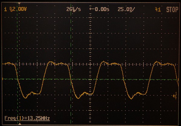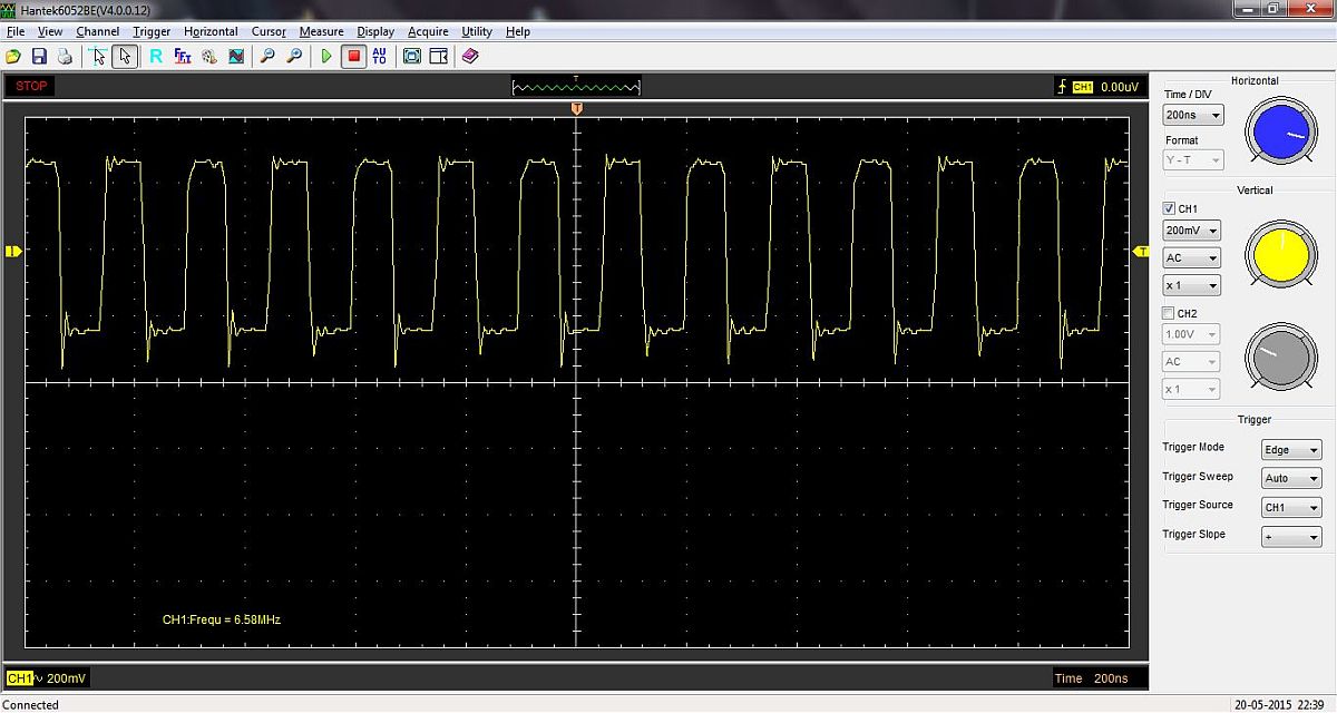 {Hantek 6052BE USB-Oszi} Hab mir mal was billig aus dem µC-Forum gegönnt: ein USB-Oszi mit den Eckdaten 2 Kanäle, externer Trigger, 50 MHz Grenzfrequenz, 150 Msamples/s... Bei 60 Euro kann man nicht viel falsch machen und vielleicht macht es ja bessere Bilder über USB als wenn ich mein Agilent immer abfotografieren muss... Fazit: mechanisch sehr stabil und sauber aufgebaut, Alu-Strangpreß-Gehäuse mit Gummikappen, alles sehr paßgenau. Auch die Anschlußtechnik ist sehr sauber und stabil, kein Wackeln und kein Hakeln. {Innere Werte} Der Innere Aufbau ist ebenfalls erstaunlich sauber und aufgeräumt, sogar abgeschirmte Eingangsverstärker, viele Abgleichpunkte... Alles gruppiert sich um einen großen FPGA, der mal wieder (wie beim Logik-Analysator) für die ausreichende Geschwindigkeit sorgt. {Software} Die Software ist einfach gehalten, funktioniert aber unter W7-64 hervorragend. Treiber werden sofort erkannt und die Bilddarstellung ist flüssig. Trigger arbeitet bei guten Signalamplituden stabil, und ein 6 MHz-Rechteck sieht ganz passabel aus. Wer eh einen Laptop am Laufen hat, der ist mit dem Teil für einfache Diagnosen ganz gut bedient. Für das Geld kann das Teil erstaunlich viel. {Benchmark} Nur mal so zum Vergleich: Hantek vs. 500 MHz Agilent. (130 vs. 2500 Euro) Hantek: 2) 13 MHz Rechteck Hantek: |