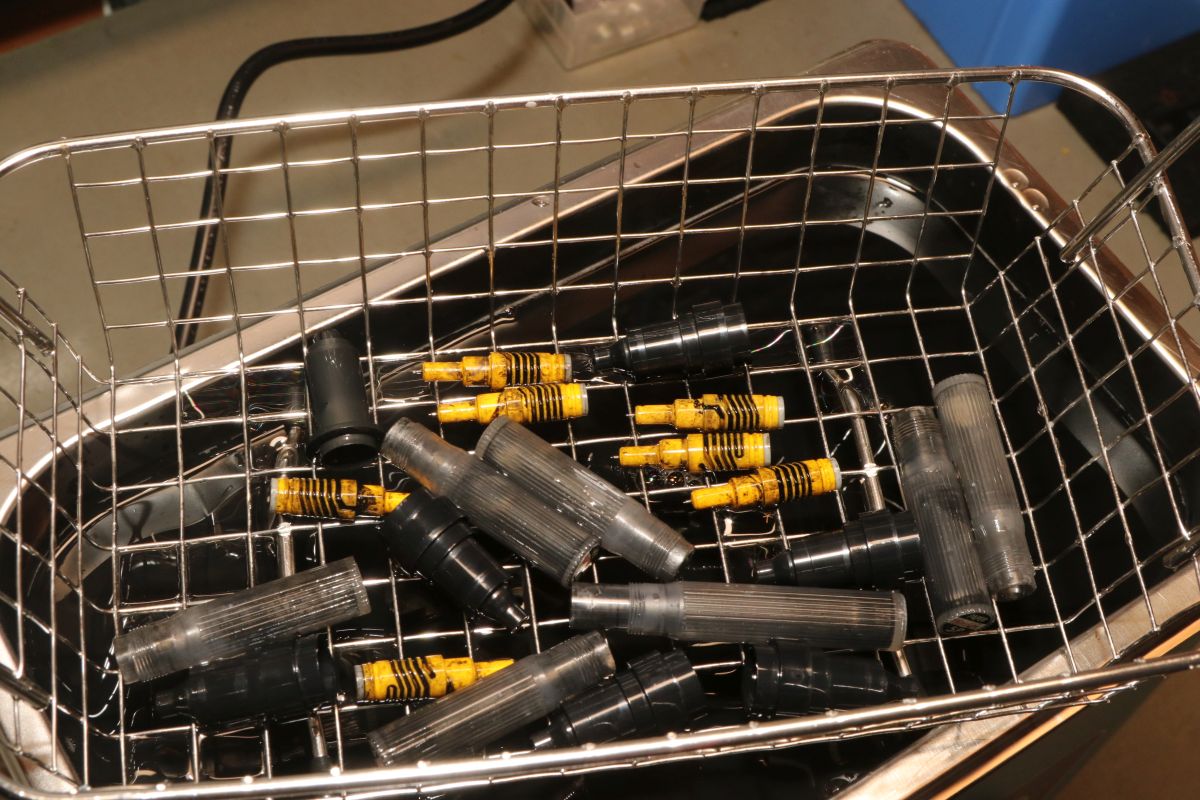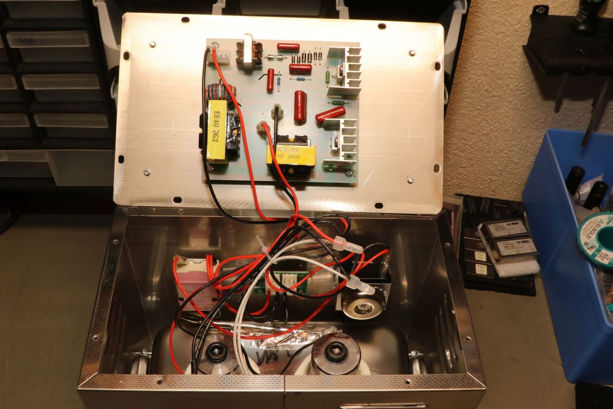 {Vevor Ultraschall Reinigungsbad} Nachdem ich tagelang versucht habe, eingetrocknete Tuschestifte für meinen Plotter wieder gangbar zu machen, habe ich mir ein neues Spielzeug gegönnt. Hier nun meine Erfahrung mit Chinabottichen und völlig eingetrockneten Tuschestiften. Die Stifte lagen vorab für drei Tage in Spiritus, was aber die Tusche nicht wirklich beeindruckt hat. Deswegen hab ich mir ein VEVOR 3,2l Bad für knapp über 60 Euro geleistet. Das war trotz Chinahändler in zwei Tagen da... Tschechischer Containerstandort... Edelstahl mit Schutzfolie... Sieht von außen sauber aus und auch die Bedienknöpfe laufen sauber und fest. Das Blech vom Gehäuse ist zwar Edelstahl, aber es ist sehr dünn... Wanne und Korb hingegen sind sehr stabil. Und man kann auch Tee kochen... Mit Wasser und einem Schuss Spüli gefüllt - die angegebenen 3,2l sind ein Witz, nach 2l war die Wanne voll. Die Chinesen haben irgendwie andere Liter. Die ersten Plastikteile in den Korb gelegt und angeschaltet... die Tinte schießt nur so aus allen Öffnungen: Der Deckel dämpft das Zirpen... Nach 10 Minuten: noch nicht fertig - schwarze Brühe entsorgt und noch mal neu gefüllt: Nach weiteren 10 Minuten: grandioses Ergebnis! Vorsichtshalber habe ich die Teile noch mal in klares Wasser gelegt: keinerlei Reste sichtbar. So sieht das dann ohne Nachbearbeitung aus: Mit Tusche gefüllt und zusammengebaut: Alle Stifte haben auf Anhieb funktioniert - kein mühsames Nachbearbeiten der dünnen Kanülen mehr, kein Siff mit Tuscheflecken und stundenlanges Rumgeklopfe... Und dann hat mich natürlich noch das rustikale Innenleben des Gerätes interessiert. Das dünne Blech wird von verzweifelten Metallgewindeschrauben gehalten - die haben bei der Blechstärke kaum Gewindegänge zu erwarten und sind dementsprechend lümmelig... da muss man ein Auge drauf haben und ggf. eine Blechschraube reinwürgen. Die Elektronik ist ordentlich, Schutzisolierung vorhanden. Die beiden Ultraschallgeber sehen brachial aus... Der Einsatz einer 12.9er Schraube erzählt von den Kräften, die hier auftreten. Die Temperaturregelung erfolgt durch einen aufgeklebten Kapillar-Thermostaten und die Klingel an der Zeitschaltuhr ist süß. Immerhin alles Mechanik - das dürfte eine Weile halten. Fazit: die Reinigungswirkung ist für den Preis echt unschlagbar. Ich kann natürlich noch nicht beurteilen, wie lange das Gerät halten wird, das wird sich zeigen. Aber es ist bis auf die Verschraubung der Bodenplatte sauber aufgebaut. Kein Profigerät, aber für den Hobbygebrauch sehr brauchbar! |