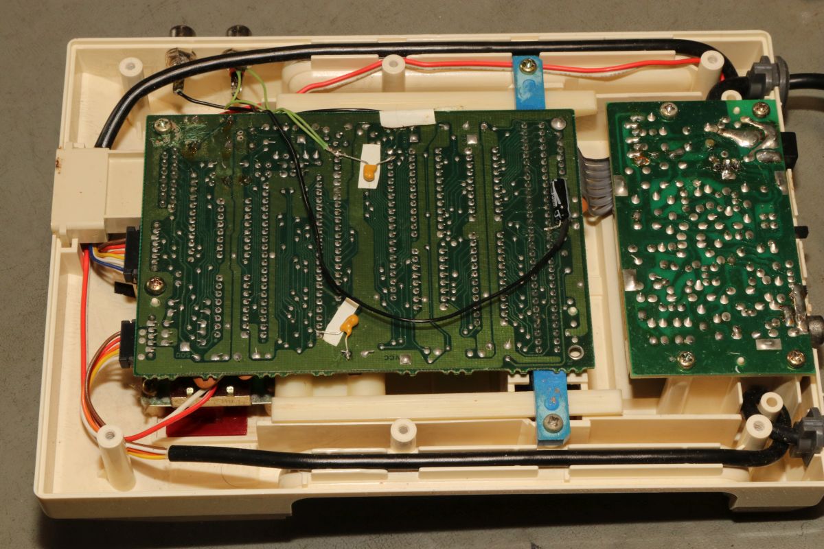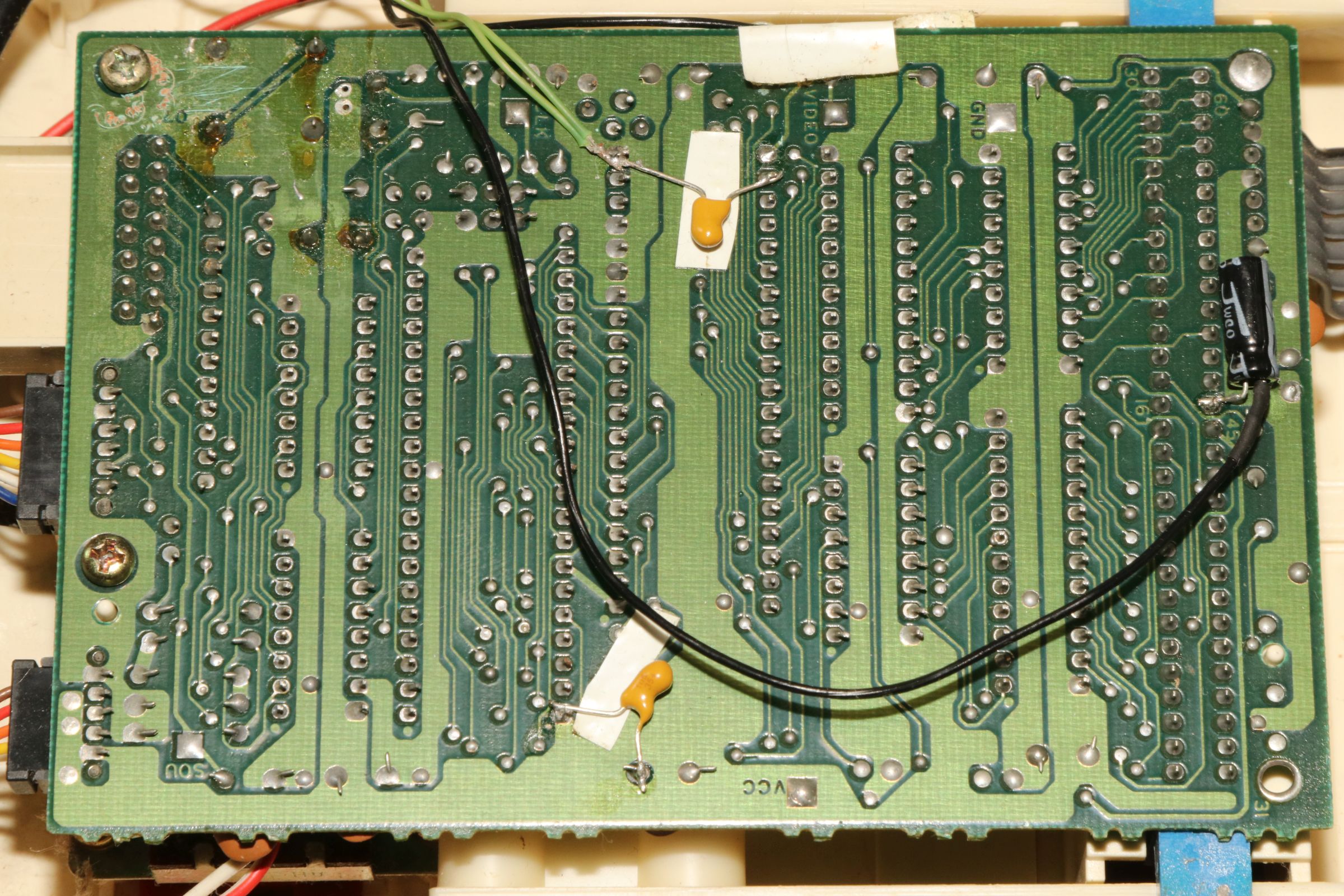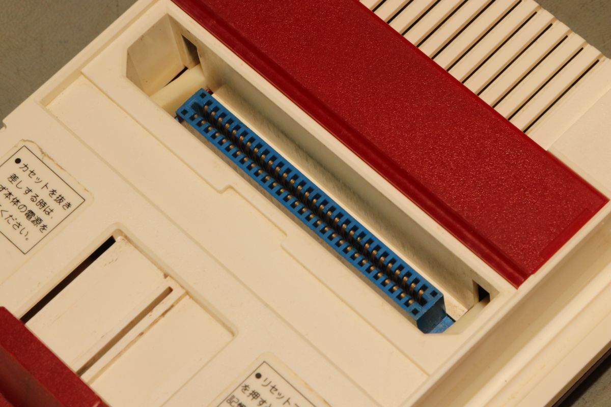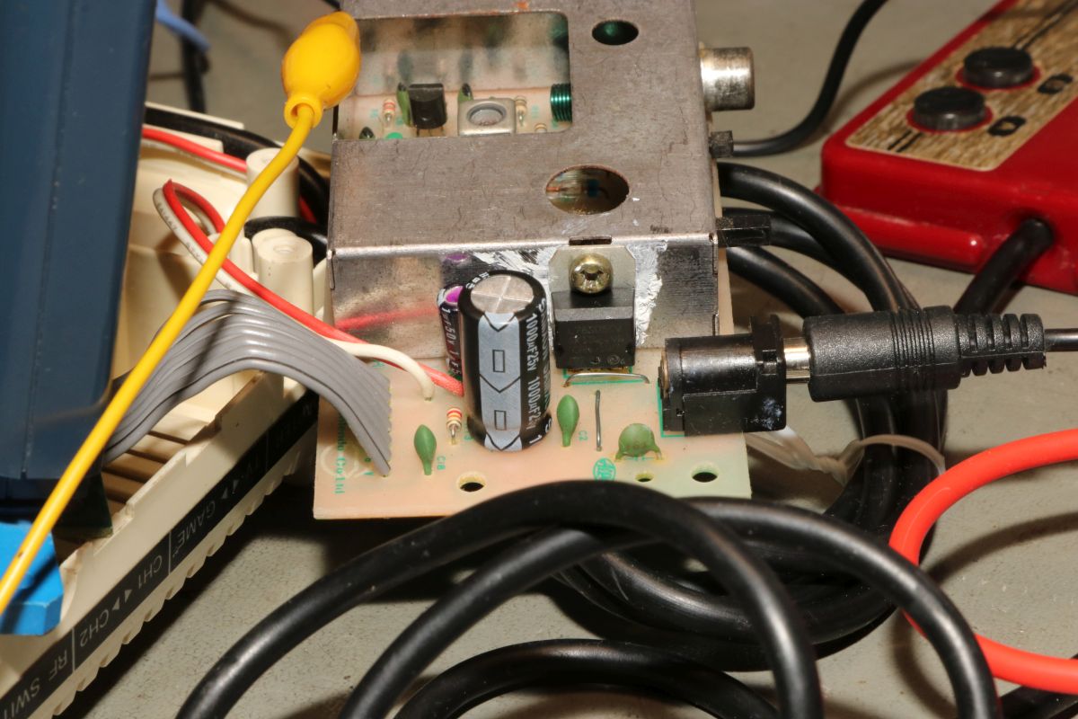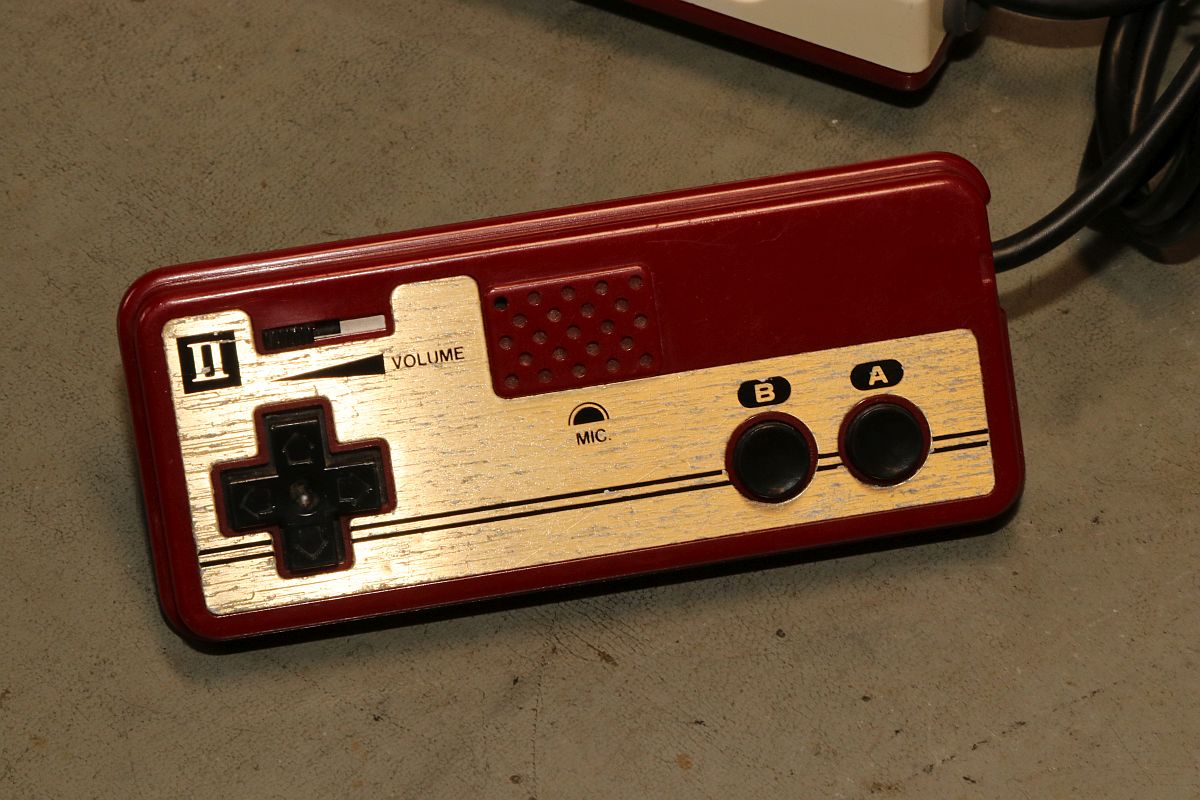 {Nintendo Famicom} Gerade zugelaufen: die japanische Version des Nintendo NES, der Nintendo Family Computer, kurz "Famicom" von 1983. Leider defekt. Eines der beiden fest verkabelten Bedienteile - mit Mikrofon... Der Cartridge-Stecker ist rustikal. Die Bodenwanne bietet Befestigungsschlitze für das Famicom-Disc-System. Cooles Rennautospiel - leider kann ich kein Japanisch. Auch die umfangreiche Bedruckung der Rückseite hilft mir nicht weiter... Na dann werde ich mal sehen, was drin ist. Die Demontage gestaltet sich problemlos, alles ist normal geschraubt. Da wurde schon etwas modifiziert: separater Video- und Sound-Anschluss. Hier findet sich die Nintendo-typische 2A03-CPU (6502 mit allerlei zusätzlichem Gedöhns) und die 2C02-PPU - die "Picture Processing Unit" in der Japan-typischen NTSC-Variante. Auf ein Boot-ROM wurde verzichtet, ohne Cartridge ist das System tot... Das schwarze Kabel klaut sich das Audio-Signal vom Cartridge Stecker. Das beigelegte Steckernetzteil 9V hatte leider die in Europa übliche Beschaltung (Masse außen). Famicom hätte das gerne andersrum. Das Netzteil ist totgebraten, der eingangsseitige 7805 durchlegiert. Hoffentlich hat er mit seinem Tod den Rest geschützt. Nächste Aufgabe: 7805 ersetzen und testen, ob die Board-Elektronik die Tortur überlebt hat... {Nintendo Famicom - die Reparatur} Manchmal ist es einfacher als man denkt. Der Spannungsregler war quicklebendig, dafür war der Eingangselko der Meinung, 2 Ohm Innenwiderstand haben zu wollen... Provisorisch ausgetauscht gegen ein Exemplar mit mehr Bauhöhe - ich bin gespannt, ob der in das Gehäuse passt... Und nach dem Rückbau der Audio-/Video-Pfriemelei wird das Ganze provisorisch in Betrieb genommen: Wow... wir haben ein Videosignal. Gut, wenn man einen Monitor mit Videoeingang hat - allerdings zeigt sich hier, dass PAL-taugliche Geräte im Umgang mit Japan-Konsolen etwas untauglich sind. Der Bildfang ließ sich noch einstellen, Farbe gibt es aber aufgrund abweichender Farbträgerfrequenzen nicht... In Japan herrschte leider NTSC. Vielleicht kann ja mein großer Fernseher Multinorm... Das Spiel ist übrigens "Family Circuit '91" - ein Autorennspiel in Draufsicht von (wer hätte es geahnt?) 1991. |