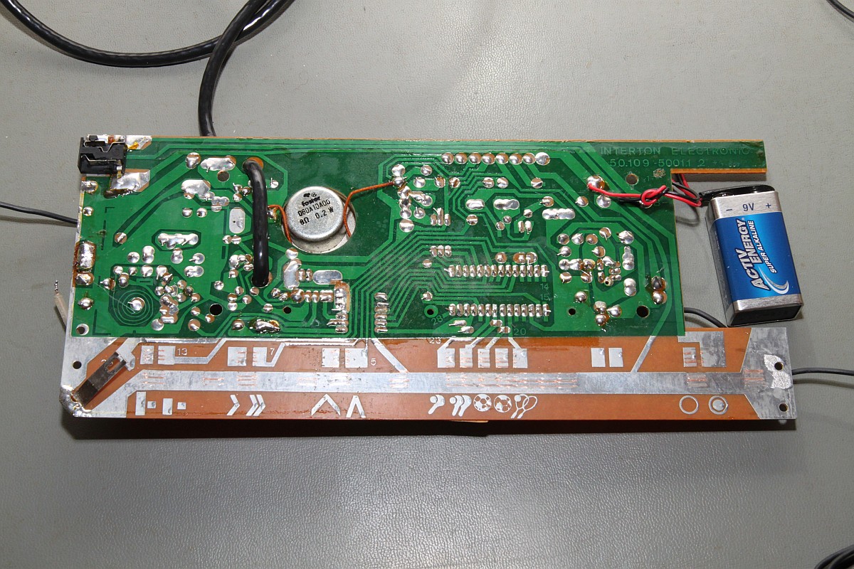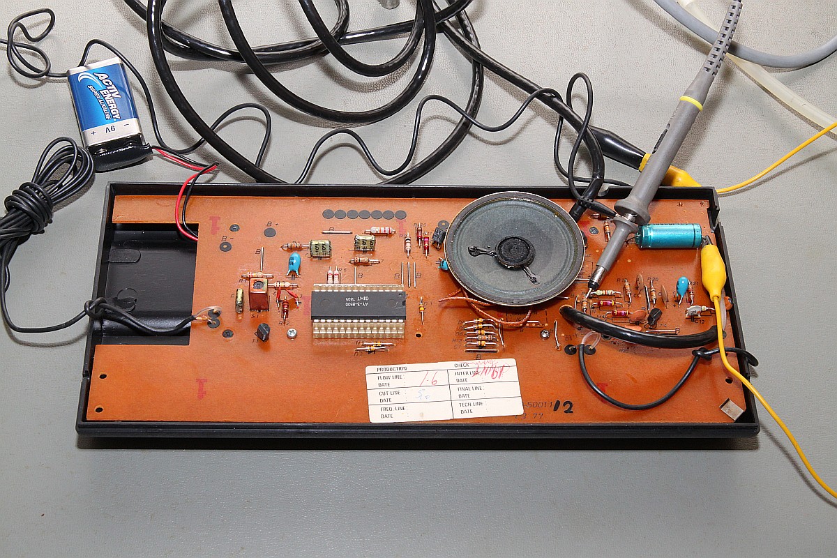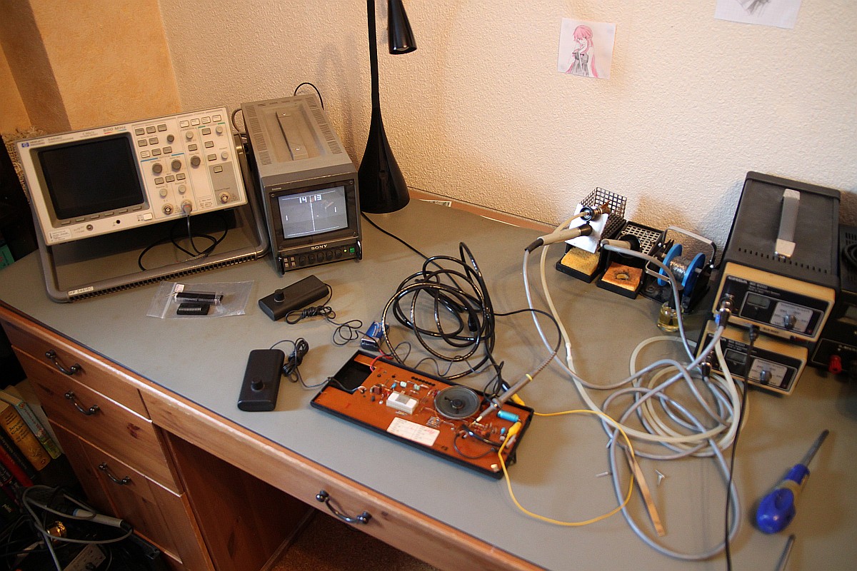 {Interton Video 2400} Nach den großen Erfolgen der Arcade Spiele "Pong" und artverwandter Clones dachte sich die Unterhaltungsindustrie "Jetzt wird zurück geschossen!" und brachte unzählige TV-Konsölchen auf den Markt, mit denen man sich das Arcade-Feeling direkt nach Hause in's Wohnzimmer holen konnte. Der technische Aufwand war überschaubar, findige Designer hatten es geschafft, den Pong-Schaltplan in einen einzigen Chip zu transferieren: AY-3-8500. Für ein Trinkgeld ist mir nun eine dieser Konsolen zugelaufen, die ich heute vorstellen möchte: Interton Video 2400. Und offen - der Oszitastkopf greift das Videosignal ab. Eigentlich gibt die Konsole eine HF-moduliertes Videosignal aus, aber ich habe keinen richtigen Fernseher mit HF-Empfangsteil mehr... Die Unterseite - sogar die Schiebetasterpads sind beschriftet...: Voll konfigurabel: Mein Desktop: Der AY-3-8000 wurde angeblich nur im Plastikgehäuse hergestellt... Da ich aber gerne immer was Besonderes besitze, habe ich auch eine recht alte Keramikvariante parat... im Netz existiert davon nur ein verschwommenes Foto... Bis jetzt. ;-) Die hab ich doch gleich mal beide auf Funktion getestet: Mit interessantem Ergebnis... Die Ausgestaltung der Spielelemente ist leicht unterschiedlich - Schläger und Netz sind bei der Keramikvariante dünner, die Zahlen stehen an unterschiedlicher Position... und der Piepston ist etwas unterschiedlich! Und hier die Keramikvariante: Offensichtlich hat man den Chip dann doch noch mal revisioniert - an der Bezeichnung kann man das nicht erkennen. Update: Verpackungsfotos mein freundlicher Leser Alexander T. hat mir sehr gute Fotos der Originalverpackung geschickt, die ich leider nicht besitze. Erstaunlich daran: keinerlei technische Angaben auf dem Karton... Dafür ein künstlerisch wertvolles Titelbild, was quasi fast einen Screenshot des tatsächlichen Spiels darstellt. Nicht. |