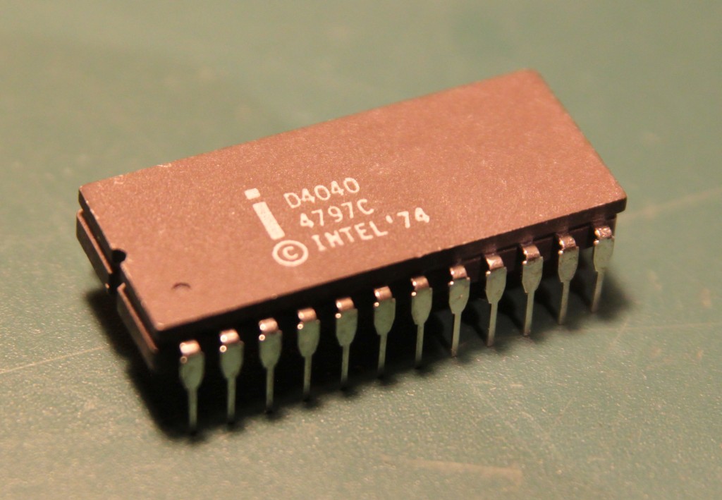 {Der Intel D4040} Der Nachfolger des 4004 in der dunklen Keramikvariante: mehr Befehle, mehr Programmspeicher, mehr Register und jetzt auch mit Interruptfähigkeit. Trotzdem nur 4 Bit... Es war noch ein weiter Weg bis zum Pentium. ;-)