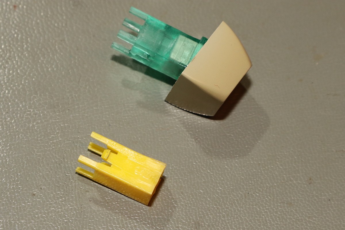 Die gelben Stempel lassen sich relativ leicht mit einer Spitzzange herausziehen, aber eine Reparatur ist fast unmöglich... Mein erster Versuch mit dünnflüssigem Sekundenkleber hatte überhaupt keinen Sinn, die Klebefläche ist zu klein und die Kraft wirkt auf Zug. Das hält nicht.
