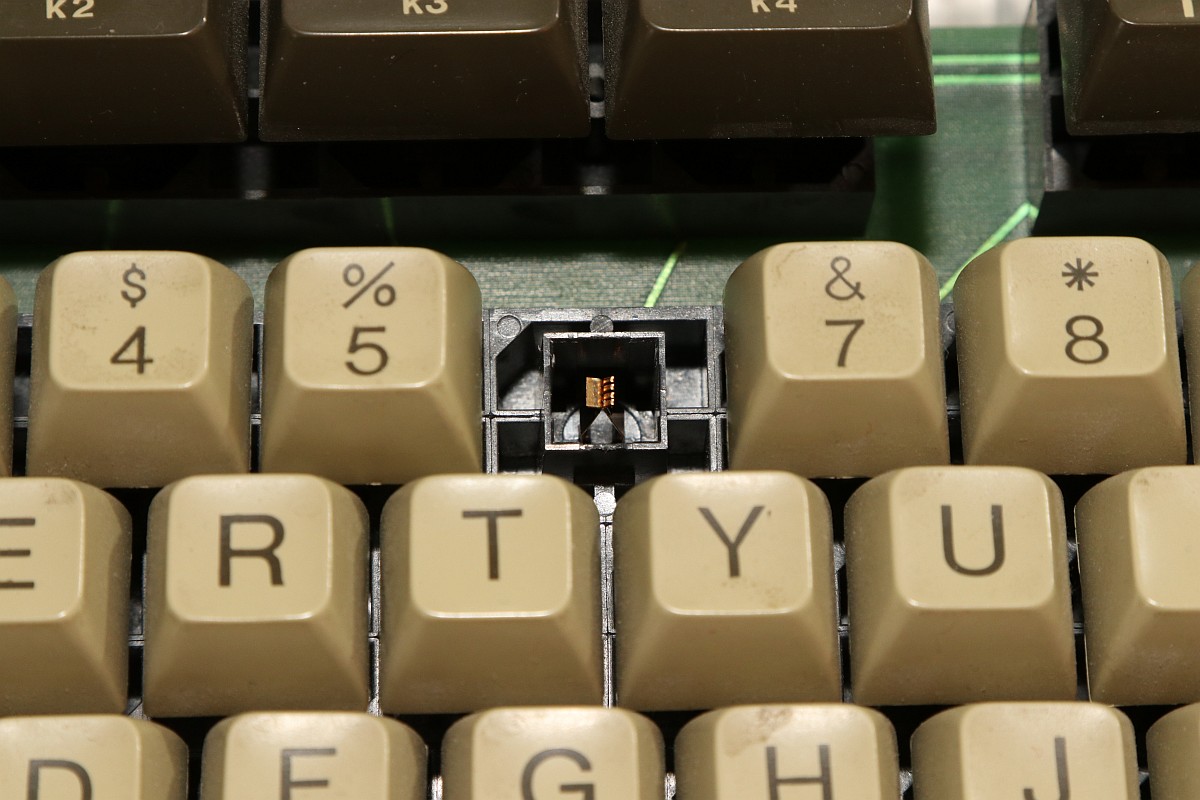 {HP-85 - Keyboard} Ach die HP-85 Tasten... Putzteufel stellen schnell fest, dass die Demontage aller Tastenkappen zu Reinigungszwecken mehr schadet, als nützt...