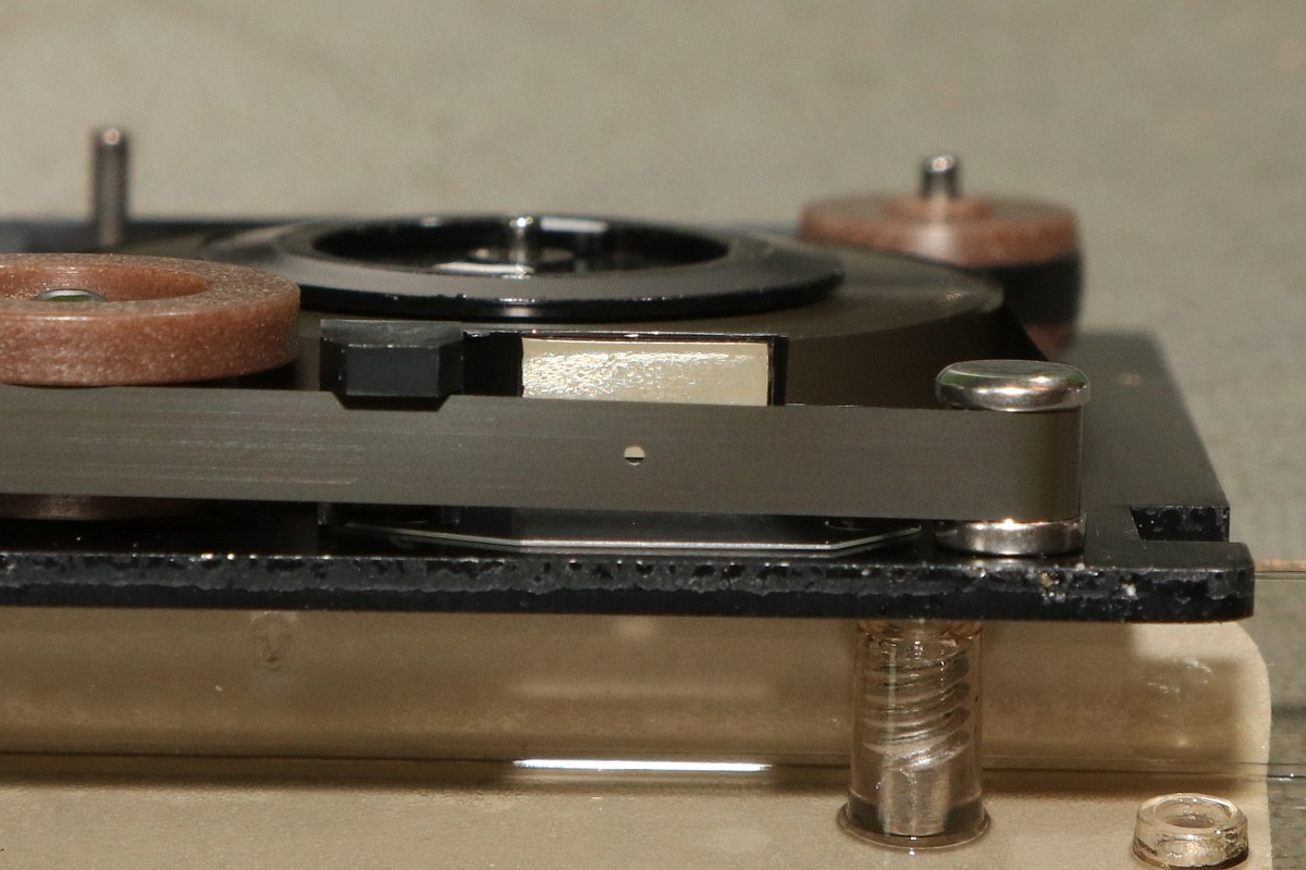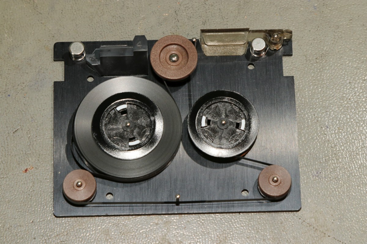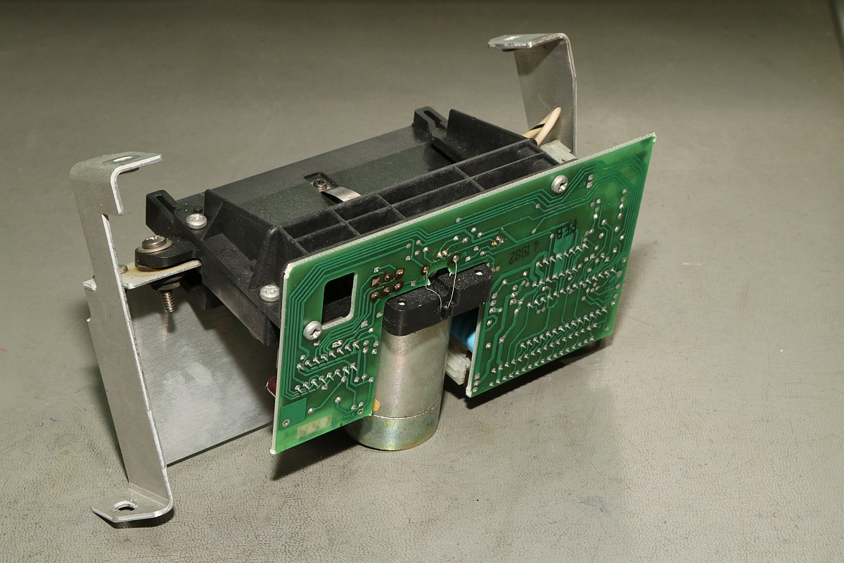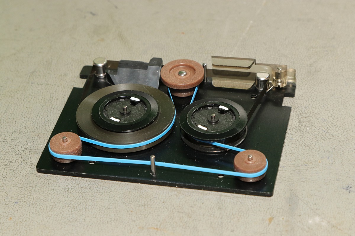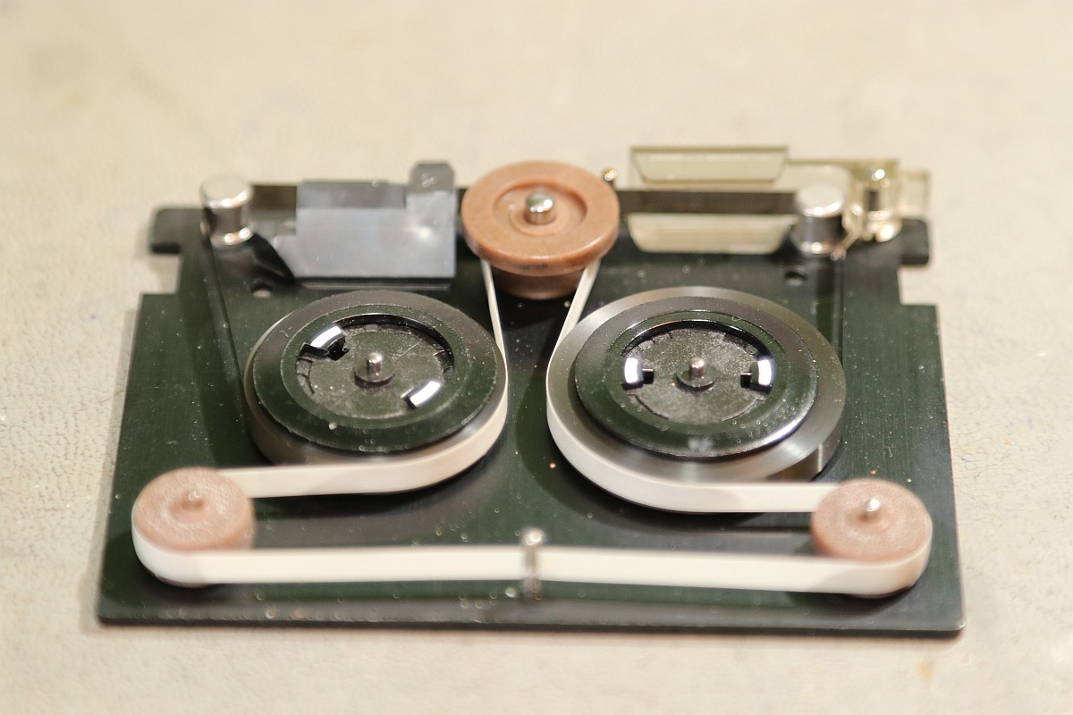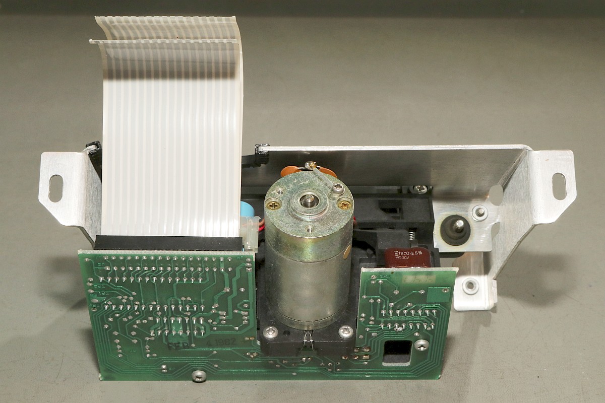 {HP-85 Bandlaufwerk} das Cassettenlaufwerk des HP-85 ist ein noch schlimmeres Ärgernis, als Druckerzahnriemen und Tastenstempel zusammen...Das Problem: die Antriebsrolle besteht nach den vielen Jahren nicht mehr aus elastischem Kunststoff, sondern aus einer klebrigen, halbflüssigen Masse. O.K., hier hat der Vorbesitzer schon nachgebessert, aber nicht genug... Die alten Cassetten machen auch viel Spaß. Wenn nicht schon die Bandbeschichtung abblättert, dann reißen die internen Antriebsriemen nach wenigen Zentimetern und es gibt Bandsalat... Zwei Bandspulen - ein Antriebsrad... Immerhin original HP! Auf der Unterseite eine massive Aluplatte... Hier sieht man den gerissenen internen Antriebsriemen - er sorgt - wenn er ganz ist - für völlig gleichmäßigen Bandtransport unabhängig vom Spulendurchmesser und für den Erhalt der Bandspannung... So sieht er kurz vor dem Zerfallen aus... Hier sieht man die Folgen von 30 Jahren Kontakt zwischen Band und Antriebsriemen... das Band hängt irgendwie als Abdruck am Riemen... Diese Löcher sind wichtig! Am Bandanfang und am Bandende - in ausreichendem Abstand - dienen diese Löcher zur optischen Bandendeerkennung. Anders als bei Musik-Cassetten ist das Magnetband hier nicht an der Spule befestigt, sondern nur lose aufgelegt. Fehlt die Bandendeerkennung, dann ist Aufschrauben angesagt! Zur Sicherheit sind jeweils zwei Doppellöcher und ein einzelnes Loch gestanzt... Hier das Einzelloch, welches erkannt werden sollte. Dafür gibt es eine Lichtschranke im Laufwerk und einen 45°-Spiegel in der Cassette. Und hier klebt wieder etwas Antriebsriemen am Band... das führt zu Lesefehlern... Das war die lange Auflagefläche auf der großen Spule... Und weil es mit den originalen Cassetten so viele Probleme gibt, wird ein Umstieg auf die noch nicht ganz so verrotteten QIC-80 Bander der deutlich neueren Streamer empfohlen: Die gibt es massenhaft und günstig zu kaufen - oft noch original verpackt. Die Cassetten haben exakt die gleiche Grundfläche, sind aber etwas dicker. Das Band ist 1/4" breit - ebenfalls dicker als das Original. Ansonsten sind Aufbau und Mechanik identisch... Das sieht man gut im Vergleich: Selbst die Bandende-Löcher sind vorhanden! Ein wichtiger Unterschied liegt allerdings in der Magnetbeschichtung: diese benötigt einen erhöhten Schreibstrom - das muss man beim Umbau durch den Wechsel eines Widerstandes kompensieren! Und die Schutzklappe ist deutlich größer und verhakt gerne mit dem HP-85-Gehäuse... Und noch eine wichtige Umbaumaßnahme: die Antriebsrolle liegt aufgrund der höheren Breite des Bandes deutlich höher - das muss bei der Wahl des richtigen Antriebsrades berücksichtigt werden... Bevor ich allzuviel umbauen muss, versuche ich erst mal, die originalen Bänder zu verwenden... Angeblich sollen diese USA-Plastibands helfen, den Antriebsgummi zu ersetzen... Die gehen zwar mit sanfter Gewalt drauf - flutschen aber nach ein paar Umdrehungen wieder runter - zu eng... Datenfehler... Da sehe ich mir die QIC-80-Bänder genauer an. Wenn man Glück hat, bekommt man die für einen Euro pro Stück... Einen Euro für einen passgenauen Transportgummi... cool. Da kann ich den Rest getrost entsorgen... ;-) Der QIC-80 Transportriemen passt perfekt auch in die HP-Cassetzten! Das verhunzte Band wird gekürzt, die Bandendelöcher werden gnadenlos mit dem Lötkolben reingebrannt... nicht schön, aber... Funktioniert!!! Ach, ist das schön, wenn man seine Programme auch mal abspeichern kann... Mittlerweile habe ich noch viel rumprobiert - Bänder kürzen und aneinanderkleben - alles geht so leidlich... ... und man kann auch die verklebten Segmente problemlos rausschneiden! Aber nach kurzer Zeit weigerte sich das Laufwerk auch diese Bänder zu erkennen. Zeit für eine genauere Analyse! Der Ausbau des Bandlaufwerks ist einfach: vier Schrauben und zwei Flachbandkabel sind zu lösen - die Tastatur muss dazu aufgeklappt sein - dann kann man das Teil nach vorne rausziehen. Hier ist der Patient einzeln: Der Blick auf den Cassettenschacht: Man kann erahnen, was die Ursache für die Probleme ist... Die Rückenansicht: Das dicke Runde ist der Antrieb für das Band... Weitere Demontage - auf die Schrauben aufpassen! Die sind alle zöllig, Ersatz ist nicht leicht! Der Antriebsmotor ist mit vier Schrauben befestigt... Aber Vorsicht! Die Lötanschlüsse des Glühlämpchens für die Tachoscheibe müssen vorher abgelötet werden! Schon ist der Motor demontiert. Hier ist der Übeltäter - wenn man eine Reparatur nur unsauber macht... Die Welle ist zwar schon mal abgedreht worden, dafür hatte man aber die neue Gummirolle mit dem falschen Kleber fixiert. der richtige Klebstoff sollte hier zumindest dauerelastisch bleiben - Schuhkleber zum Beispiel. Mein TX5 löst die zwei (!) Madenschrauben, die die Antriebswelle auf der Motorwelle halten... Vorsicht auf die Tachoscheibe - die ist empfindlich und unverzichtbar! Da muss ich ran... Hier ist das Gegenstück am Motor - das Glühlämpchen sitzt unsichtbar darunter! Ziemlich feine Strukturen... Jetzt weiß ich auch, warum dieser Motor so fein regeln kann... Jetzt muss ich nur noch auf geeignete Gummirollen warten. Ich bin gespannt!