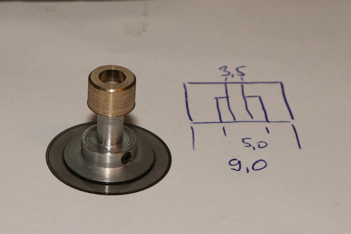 Also den Kragen auf 5,0mm abgedreht, dann hat man auch gleich einen Anschlag für die Rolle...