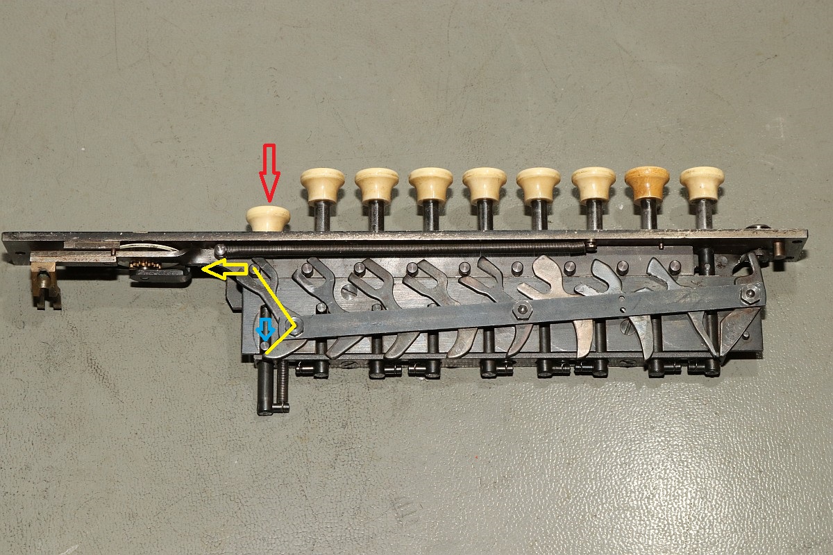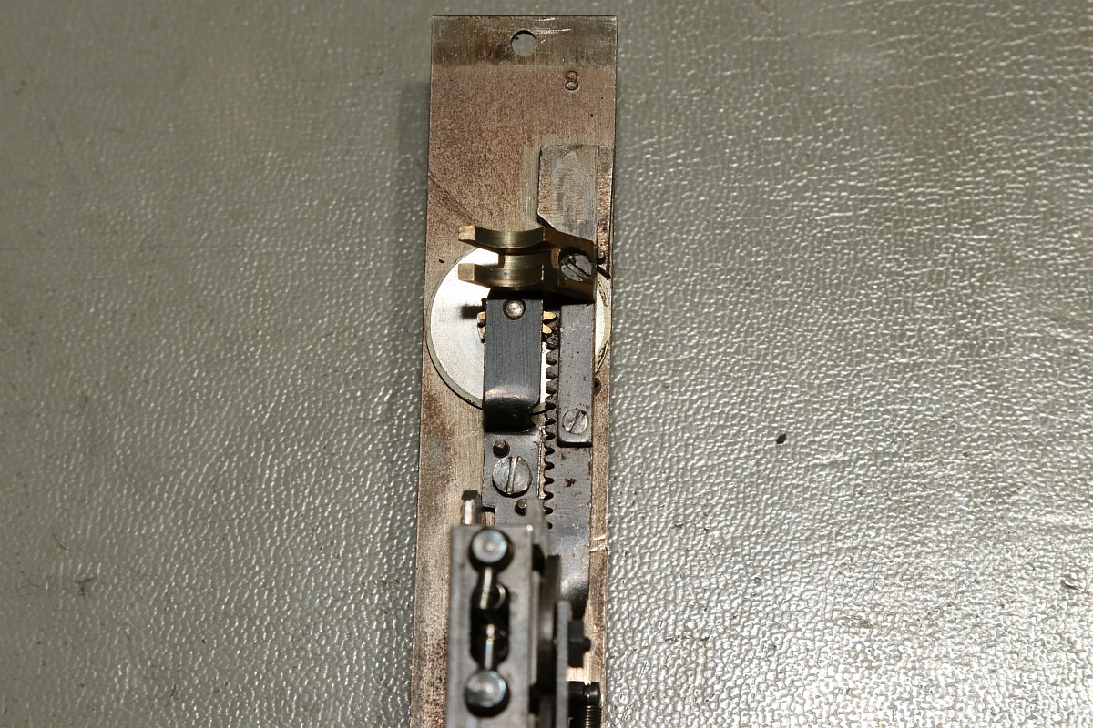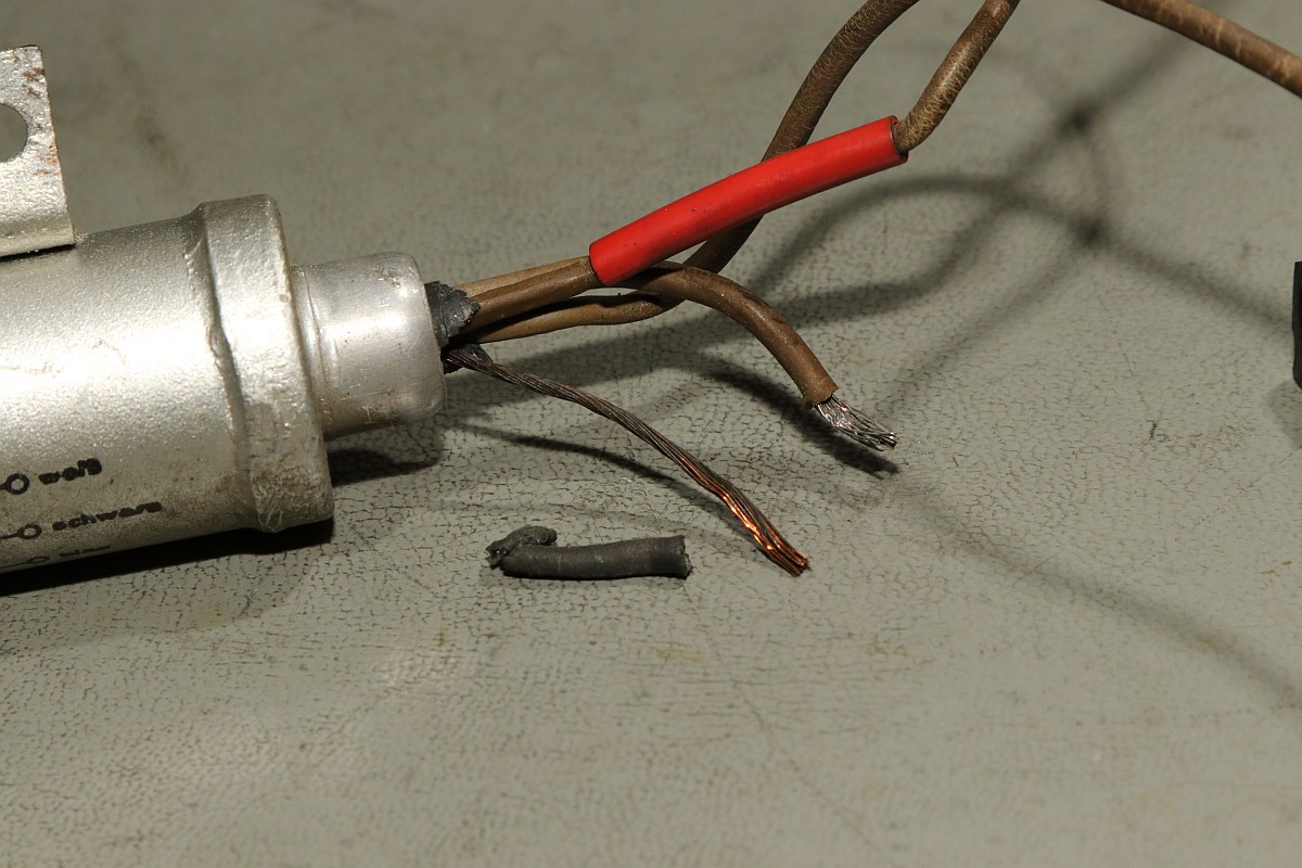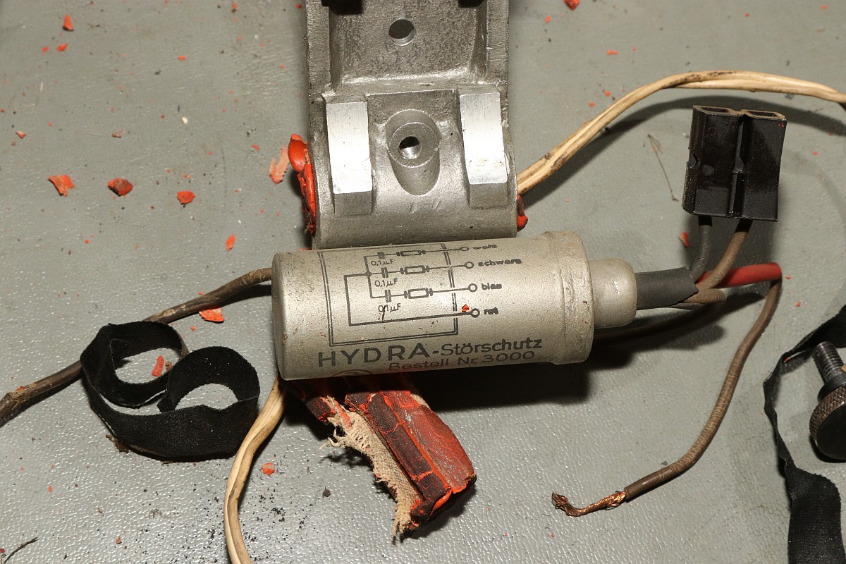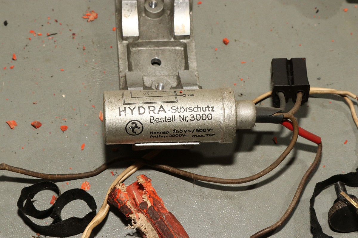 Das Besondere an dieser Maschine ist nicht nur das stattliche Alter von 85 Jahren, sondern die Fähigkeit, eine Division vollautomatisch durchzuführen! Der Zustand der Maschine war exzellent für das Alter - aber trotzdem gab es einiges zu tun, vor Allem im Bereich Elektrik! Aber Schritt für Schritt! Im Jahre 1930 war es üblich, solche Geräte mit stoffummantelten Leitungen zu kostruieren. Nach 85 Jahren ist der Stoff zwar noch vorhanden, die darunter liegende Isolierung ist allerdings in erbarmungswürdigem Zustand und krümelt so vor sich hin... Immerhin liegen an den Kabeln und Schaltern 230V Netzspannung an - Erdung ist irgendwie nicht vorgesehen, der Betrieb ist eigentlich nur noch mit einem Trenntrafo halbwegs sicher möglich!!! Die Aufhängung des Antriebsmotors soll so eigentlich nicht sein - die Kautschukbuchsen sind von zäh nach flüssig nach steinhart migriert. So müssen Fossilien entstehen. Die gute Nachricht: die Antriebsriemen sind keine Gummiriemen sondern Spiralfedern. Haltbarkeit: ewig! Die Elektrik ist lebensgefählich - ausgefranst, Isolierung fehlt, Kabel sind völlig brüchig. Das muss grundlegend neu! Der Unterbrecherschalter der Schlittenverstellung: Die Buchsen der Motoraufhängung sind sogar gewebeverstärkt... hat ihnen alles nichts genützt. Auf der Rückseite des Motors befindet sich ein dreifach-Entstörfilter. Ich wusste nicht, dass es das 1935 schon gab! Die Elektrik ist einfach: der Motor hängt einseitig am Netz, auf der anderen Seite trennen Unterbrecherkontakt und Sicherheitsschalter der Schlittenverstellung in Reihe den Stromkreis. Alles fliegt erst mal raus! Auch die Gehäusefüße haben ihre beste Zeit hinter sich! Aber das ist eine andere Geschichte! Das Entstörfilter ist stark beschädigt, was die Kabelage betrifft. Das Teil muss schon mal ersetzt worden sein, laut Stempel stammt es von 1949 und die Kabel sind mit Lüsternklemmen angetüddelt... Ich habe im Netz sogar den Katalog des Herstellers gefunden... Eine Nachbestellung erscheint mir allerdings aussichtslos. Der Antriebsmotor erscheint bis auf die verrotteten Anschlusskabel in gutem Zustand. Die Umschaltung für verschiedene Spannungsversorgungen erfolgt über eine drehbare Kontaktplatte: Um endlich mal ein Erfolgserlebnis zu haben, hab ich schon mal die Motorbefestigung gereinigt... Der Unterbrecherschalter hat Liebe nötig... Der Schlittenschalter sieht noch ganz gut aus... Der Motor ist recht sauber und läuft gut. Er ist 100% demontierbar, was die Mechanik betrifft, das würde man sich heute wünschen... Laufspuren aber kaum Bürstenfeuer... das bleibt so. Never change a running system! Selbst die Kohlen könnte man ohne Werkzeug wechseln: Ich möchte wissen, ob ich die Anschlusslitzen direkt im Motor anschließen kann... Dafür muss die Kontaktplatte komplett demontiert werden. Die Kontakte sind per Madenschrauben auf die Kabel geschraubt! Leider geht das nicht - die Kabel verschwinden im Motor. Also die harte Tour! Hier hilft der Seitenschneider... Sauber verzinnen... Die Anschlusshülsen sind gelötet: Ich habe einen deutschen Anbieter für stoffummantelte Einzellitzen gefunden... das war nicht einfach... Die Litzen passen perfekt, auch vom Durchmesser her! Für das Konfektionieren benötigt man ein scharfes Messer und ein Feuerzeug. Der Stoff wird angeschmolzen und somit verschweißt, dann rutscht nichts mehr. Zusätzlich kann man die Enden mit einem Stück Schrumpfschlauch stabilisieren. Schon ist der Motor wie neu! Nächste Baustelle: das Netzfilter. Die Isolierungen sind brüchig, die schwarzen Isolierungen sind schon völlig zerfallen. Hier verwende ich silikonisolierte Litzen. Das ist jetzt nicht so original, aber es isoliert sicher... Der Unterbrecherschalter erhält auch ein Stück silikonisolierte Litze und wird gründlich gereinigt: Die Litze wird direkt auf die Stahlelemente gelötet, endlich muss mein Lötkolben mal was leisten! Die neuen Kabel sind ja sowas von Retro... ;-) Fixiert werden die Kabel standesgemäß mit verknoteter Schnur... Ein Wermutstropfen am Rande: die Maschine lief ca eine halbe Stunde störungsfrei, dann plötzlich fing der Motor an, im Dauerlauf zu laufen... Da die Unterbrecherschalter offen waren, konnte dies nur eines bedeuten: der Entstörkondensator ist durchgeschlagen! Und ja, er war recht heiß. Da das Gerät auch ohne Entstörung läuft, habe ich den Kondensator erst einmal komplett von der Verkabelung wieder getrennt... Viel Aufwand für nix. Aber immerhil läuft und rechnet die Maschine wieder einwandfrei wie am ersten Tag! Der wunderschön verschnörkelte Herstellerschriftzug: Auch die Ziffern sind eine Schönheit! Maschinenimpressionen: Jetzt noch ein paar interessante Details, hier die Eingabemechanik: Eine Zahnstange bedient das Rädchen der Anzeige und verschiebt ein Mitnehmerzahnrad auf einer quadratischen Welle: Unbetätigt entspricht der Ziffer "0": Und bei Ziffer "9": Und hier noch das entscheidende Detail, welches dieser Rechenmaschine ihren Gattungsnamen "Staffelwalzenmaschine" gegeben hat: Je nach Lage des Mitnehmerzahnrades werden mehr oder weniger Zähne der Staffelwalze wirksam: Fazit: eine wunderschöne und trickreiche Maschine mit erstaunlichen Fähigkeiten. Diese werden demnächst noch in einem Film zu bewundern sein, da z.B. der Ablauf einer vollautomatischen Division nicht mit Fotos zu dokumentieren ist... |