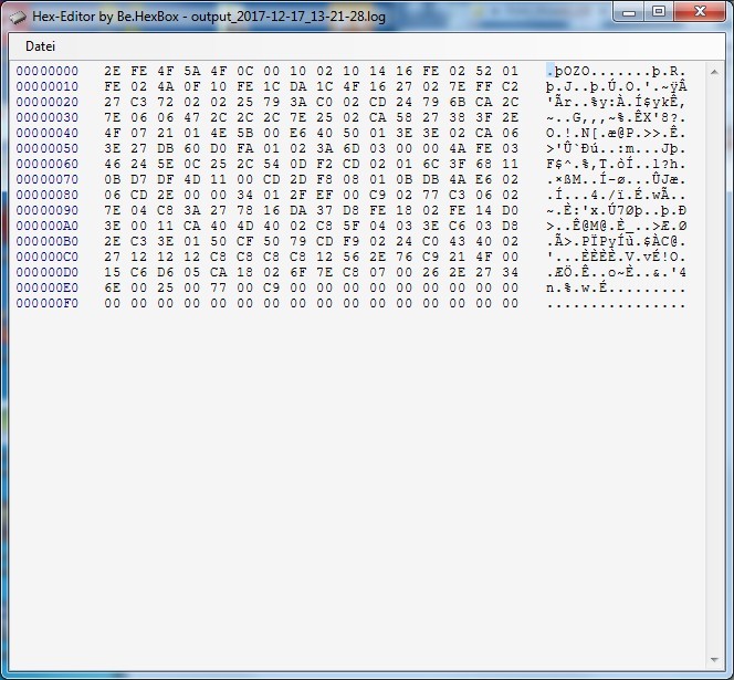 Im Format RAW abgespeichert bleiben diese auch eine Binärdatei. Man benötigt keine weiteren Hilfsmittel. Der ROM-Wizard zeigt den EPROM Inhalt an.