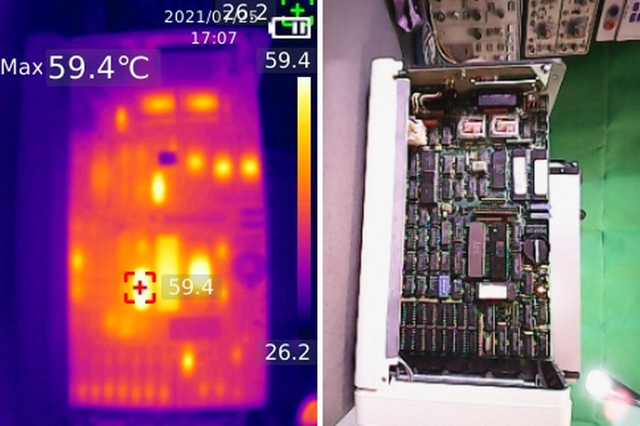 {AVATAR TC100} Ein wahnsinnig freundlicher Forist aus dem Altcomputerforum fand vor Kurzem keine geeignete Verpackung für zwei Floppies für meinen IBM 5150 und hat sie deswegen gleich mal im Gehäuse gelassen... Das Gehäuse beherbergt neben den beiden 360k-Floppies auch noch einen AVATAR TC100 von 3R Computers... Den kennt eigentlich niemand, etwas über 200 Stück sollen davon nur produziert worden sein. Dieses Gerät gehört zu einer Spezies EDV-Technik, die nur ganz kurze Zeit Anfang der 80er Jahre Bestand hatte: intelligente Terminal-Computer. Sie sind nicht Fleisch, nicht Fisch - kein vollständiger Computer und kein Terminal... Zielgruppe der Entwickler war eine Klientel, die noch die seriellen Terminals der Großrechenanlagen auf den Tischen stehen hatten, aber dafür eine kleine CP/M-Maschine zur Bereitstellung der Rechenpower nehmen wollten... also fast schon ein PC, ohne Videogenerierung, Monitor und Tastatur. Betriebssystem war CP/M, der Vorläufer des allseits bekannten DOS... Das Gerät ist klein und formschön... Ein sauber verarbeitetes Blechgehäuse mit passiver Lüftung... Diverse Anschlüsse für das Terminal und die Kommunikation zum Großrechner (umschaltbar): Die eigentliche Gerätebezeichnung steht erstaunlicher Weise auf der Unterseite... {Obduktion} Das Gute daran ist das Gute darin - kein Gerät landet bei mir, ohne obduziert zu werden... Zwei 5 1/4" Floppies: Neben den Laufwerken ein minimalistisches Netzteil mit Linearreglern - 5V, +/-12V. Ein Mainboard mit Apple-Schnittstellenadapter: Hier mal die Platine in sehr großer Auflösung: Schnittstellenbausteine? Der WD2797 Floppy-Controller: Ein Z80 für CP/M und ein 8088 für DOS - Gute Ausstattung für 1983! 128k DRAM, erweiterbar auf 256k... Und eine RTC mit Batteriepufferung (ohne Batterie derzeit...) Das Netzteil sieht geröstet aus, aber dazu später mehr. {Die Laufwerke} Die Floppies sind MPI 52S, schnelle 360k - sie laufen auch im IBM 5150 - aber da gehören sie nicht hin! Als Beifang eine Apple Schnittstellenkarte - offensichtlich konnte dieses Gerät mit verschiedenen optionalen Schnittstellen bestückt werden. Mir reicht allerdings die serielle Schnittstelle für das Terminalprogramm... {Netzteilreparatur} Um an das Netzteil zu gelangen, muss man das sehr modular aufgebaute Gerät zerlegen. Das Netzteil ist komplett auf die Rückwand geschraubt. Trafo, Netzfilter, Linearregler - alles sehr übersichtlich. Der Brückengleichrichter für den 5V-Strang ist gut durch... aber er geht noch! Das Netzfilter stammt aus der Schweiz... Und auch sonst sind die Komponenten extrem hochwertig: abgeschirmter Trafo, EMV-Schirmklammern überall... Zur Demontage der Netzteilplatine müssen zuerst die zwei TO-3 Linearregler ausgelötet werden... Der Gleichrichter war sehr lange sehr heiß... Die Platine hat etwas gelitten, ist aber von sehr guter Qualität - es gibt keine Delaminierungen. Der neue Gleichrichter ist etwas leistungsstärker... {Thermographie} Thermokameras lügen leider nicht... auch der neue Gleichrichter wird sehr heiß: Nach drei Minuten sind wir schon im Kochbereich... ...obwohl es auf dem Mainboard keinerlei Auffälligkeiten gibt - ich denke, hier handelt es sich einfach um eine Fehlkonstrunktion. Der Gleichrichter ist hoffnungslos unterdimensioniert. Obwohl das Gerät auch über längere Zeit einwandfrei läuft, werde ich mir etwas einfallen lassen müssen, um die Wärmeentwicklung zu reduzieren - vielleicht reicht ja schon ein aufgeschraubter Kühlkörper! {Ein erstes Lebenszeichen - Er bootet!} 9600 8N1... und eine Bootdiskette machen es möglich: das System testet sich und startet den Bootprozess über Diskette nach einem Tastendruck! Ja - herzlich Willkommen! Leider ist auf der Diskette außer AVATAR.SYS nichts drauf, das reicht noch nicht für eine vernünftige Arbeit, nicht mal formatieren kann man. Aber das soll demnächst anders werden! Nächster Schritt: bessere Disketten bekommen... ;-) |