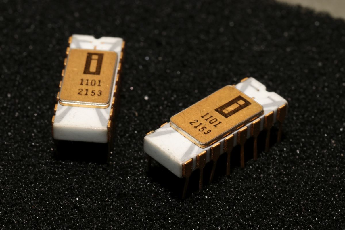 {Intel C1101} 1968 wurde eine Firma neu gegründet, die sich Intel nannte. In dieser Zeit setzte Intel voll auf die Entwicklung und Produktion von Speicherchips. Der zweite integrierte Baustein von Intel und das allererste SRAM in MOS-Technologie: der 1101. Auf dem Markt seit 1969 besticht dieser Baustein durch brachiale 256 Bit Speicherplatz, die Notwendigkeit für zwei Betriebsspannungen und in der "C"-Variante durch ein wunderschönes Äußeres: