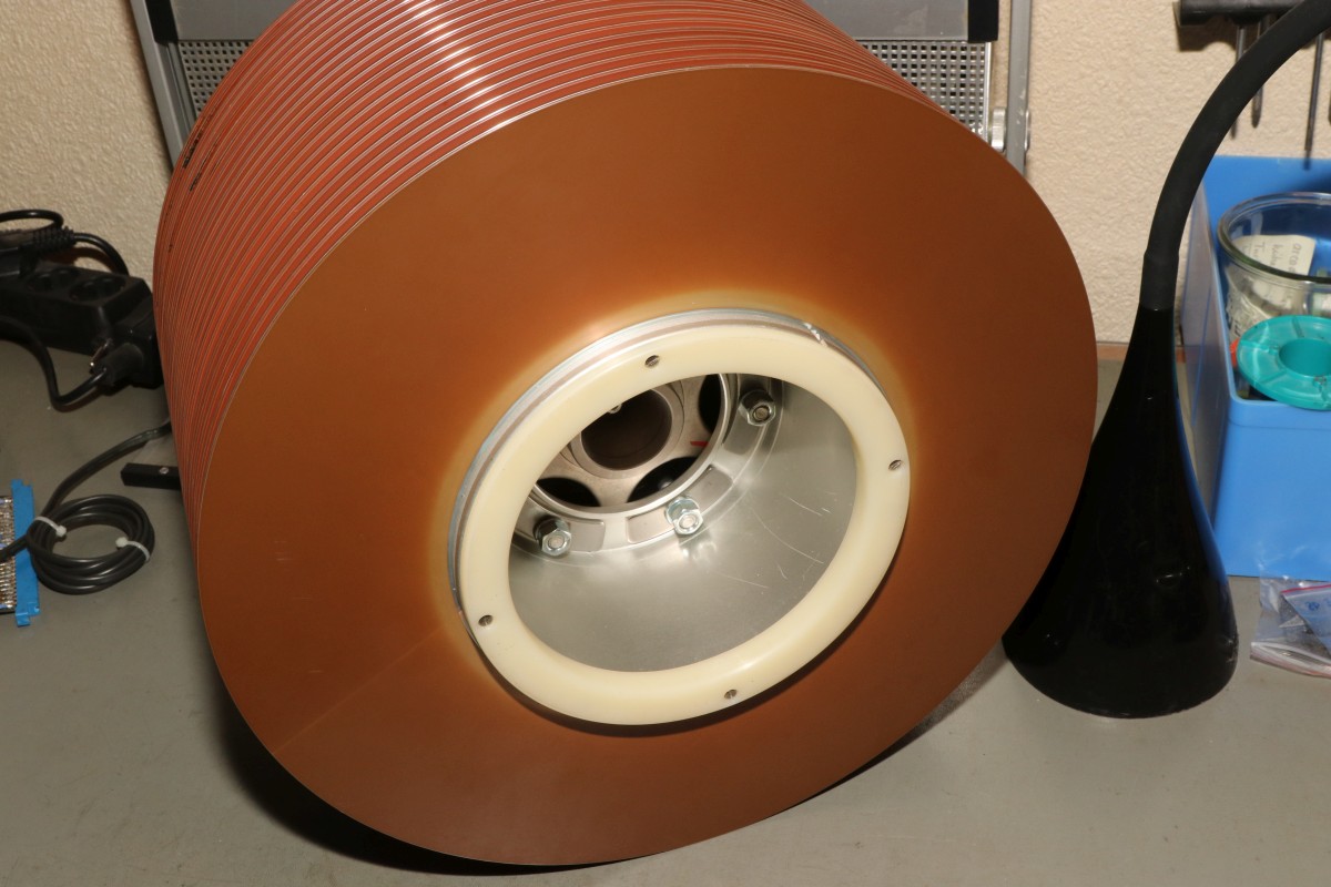 Das hätte die Anmutung einer Toploader-Waschmaschine gehabt - und vermutlich auch ihr Gewicht. Immerhin bekam ich den Plattenstapel als Spende - an dieser Stelle ein herzliches Dankeschön!!! Und als Gegenleistung ist er jetzt auf meinen Webseiten verewigt. 24 Aluminiumplatten mit 14 Zoll Durchmesser. Früher war alles ... größer.