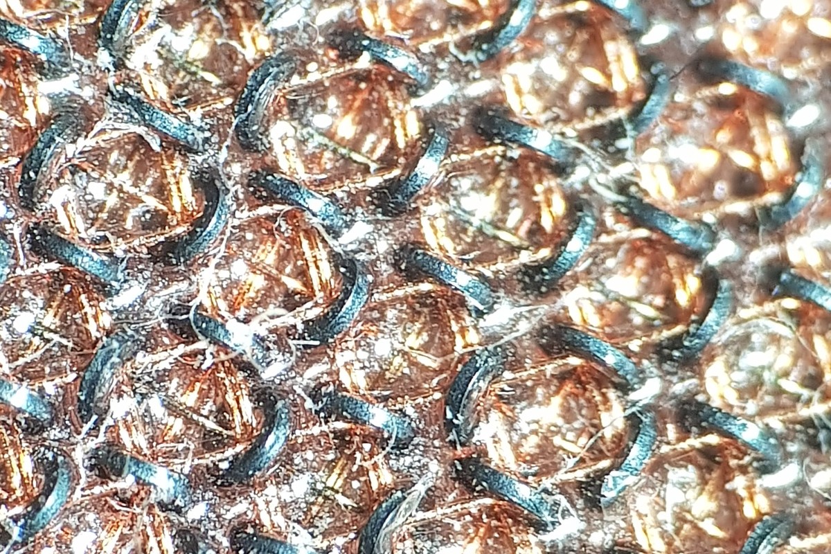 Ein Blick durch das Mikroskop zeigt leider nur wenig Details, da die Kernspeicherebenen mit einer flexiblen gummiartigen Masse getränkt sind.