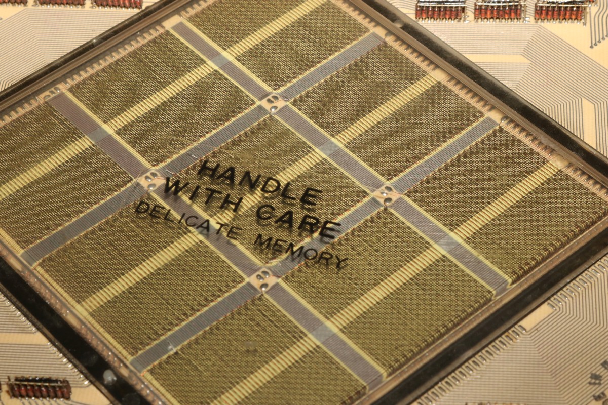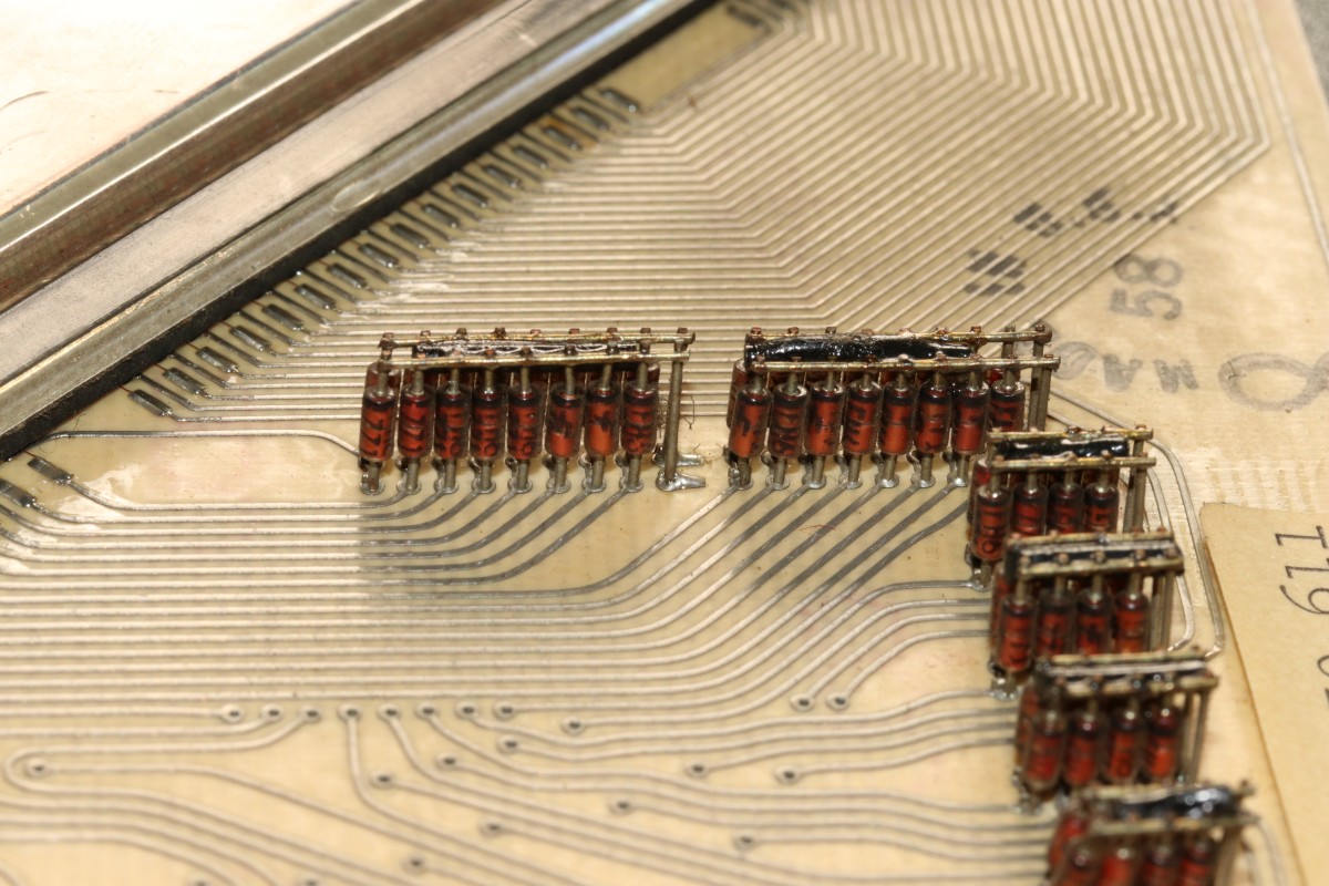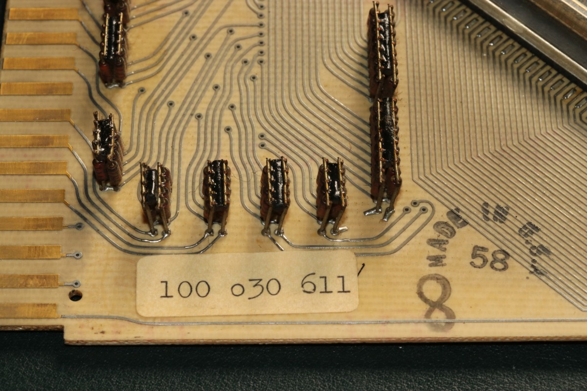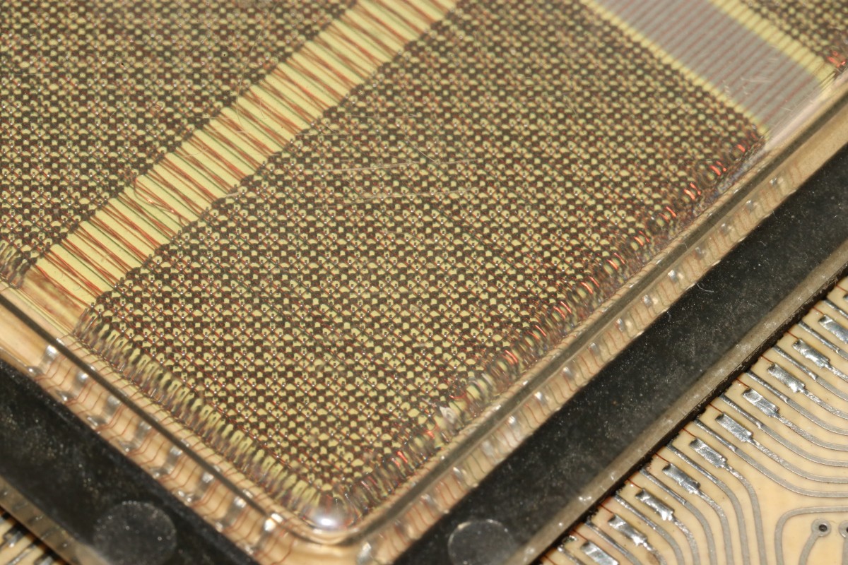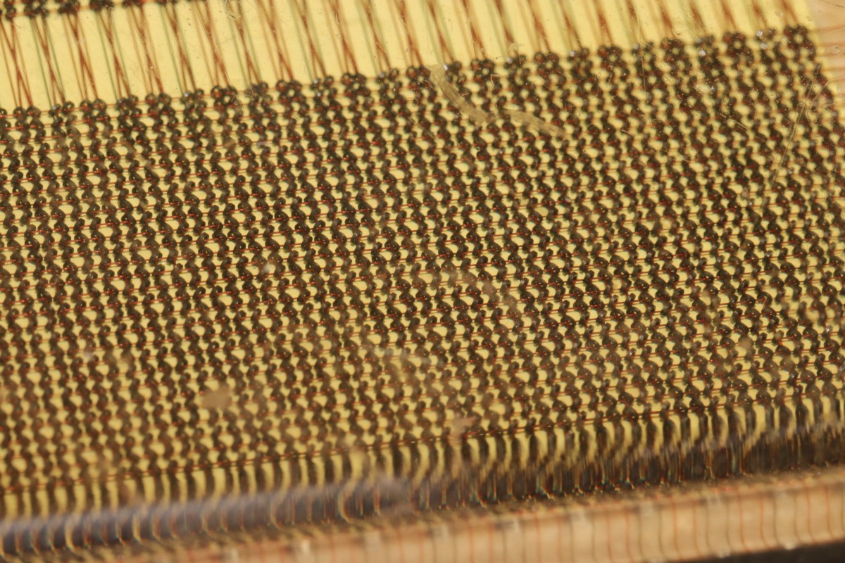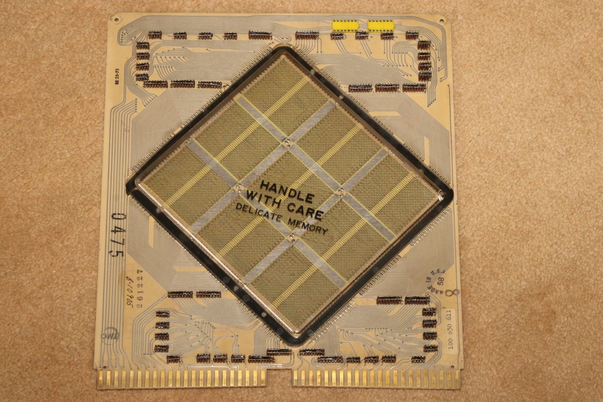 {Ein Kernspeicher in 45 Grad} Hier nun ein besonderes Exemplar eines Kernspeichers. Ungewöhnlich, die 45° Anordnung der Speicherplane - und die serienmäßige Abdeckung durch eine staubdichte Kunststoffhaube. Das Teil kann man sich direkt so an die Wand nageln.