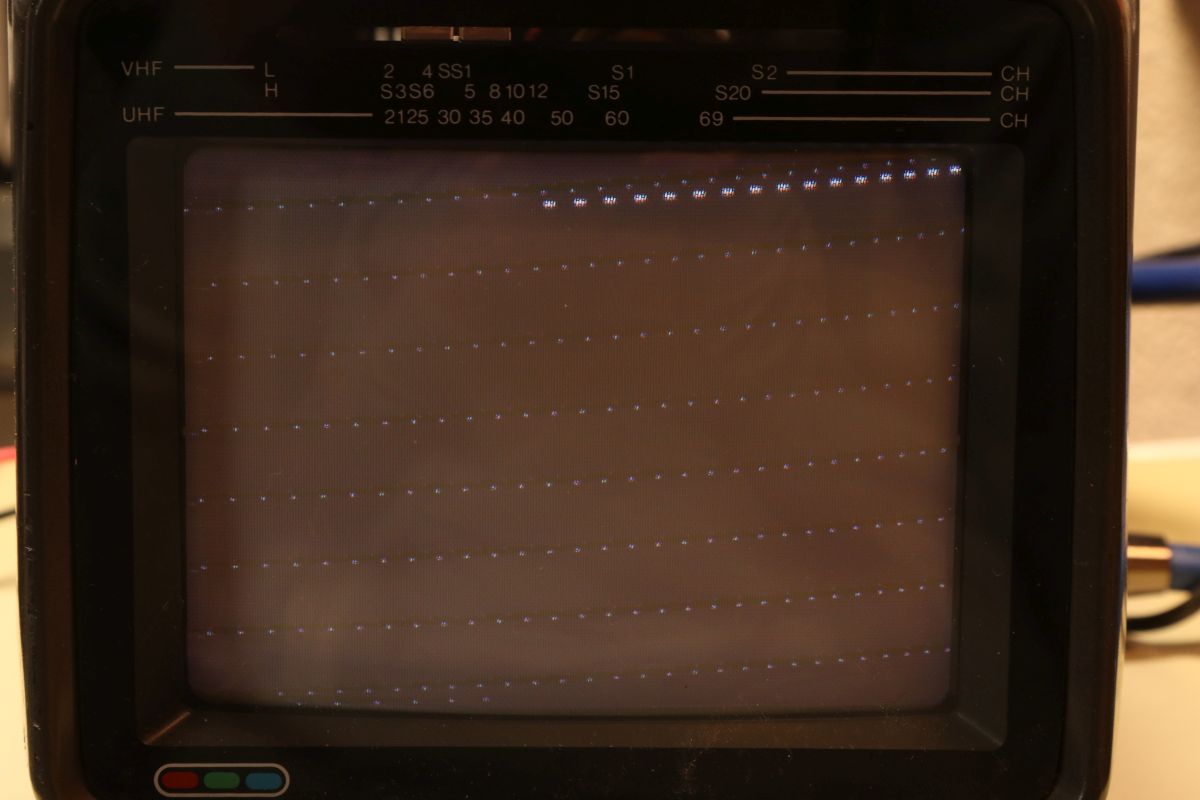 Der Monitor hier ist deutlich geduldiger mit Videosignalen außerhalb der Spec. Zumindest H-Sync fängt er einwandfrei, V-Sync nur mit Mühe. Da muss ich mal näher in der Video-Generierung nachsehen.