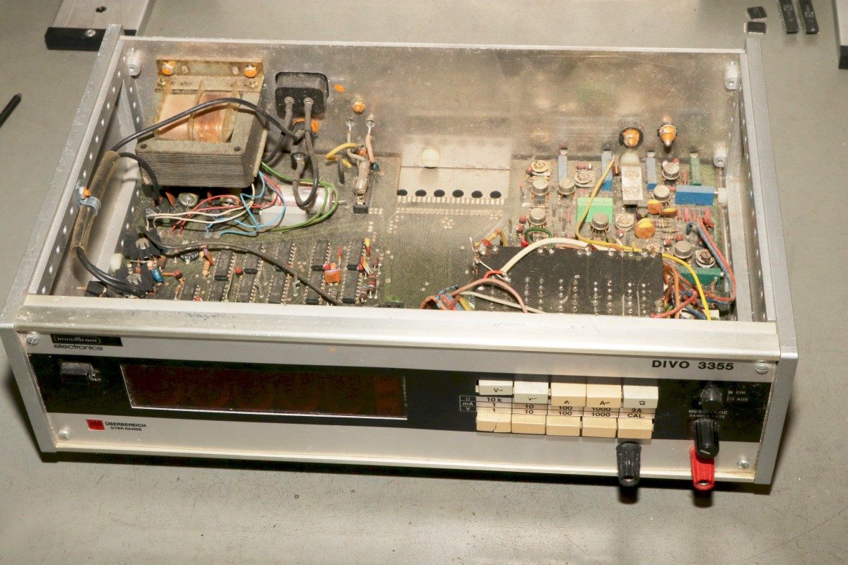 {Nordmende DIVO 3355} Manche Geräte sind erst auf den zweiten Blick interessant. Dazu gehört dieses Tischmultimeter von Nordmende. Nordmende hat Messgeräte gebaut? Wusste ich bis gerade eben auch nicht! Dieses hier ist mit hübschen Nixie-Röhren und mit spannender Technik. Es ist das erste Multimeter mit Dual Slope A/D-Wandlung in TTL-Technik, welches mir in die Finger gefallen ist... Vielen herzlichen Dank an Fatwookiee für die tolle Spende! Der Aufbau ist rustikal. Bemerkenswert: die Messrate lässt sich stufenlos einstellen - bis 5 Messungen/Sekunde. Das Innenleben ist übersichtlich: Operationsverstärker und 74xx TTL-Bausteine. Die OPVs sind von der feinen Sorte und manche Bausteine sind mit Absicht thermisch gekoppelt - das Design ist schräg aber durchdacht... Demnächst mache ich hier mal Kehrwoche. 7490 - die Dezimalzähler für die Dual-Slope-Zeitmessung... Von vielen gierig ausgeschlachtet, von mir nur gerne im Gerät gesehen: ZM1000 Nixies als Anzeigeelemente. Und ja, mit Radio-Buttons hatte Nordmende ja im Radio-Bereich schon ausgiebige Erfahrung... Das Netzteil ist sehr konventionell aufgebaut: +/-15V für die OPVs, 5V für die Logik und 170V für die Nixies - alles über vier einzelne Trafoausgänge. Und hier lauert auch gleich das erste Problem: der Trafo wird schnell sehr heiß, die Nixies glimmen nur sinnlos... Windungsschluss! Der 5V-Linearregler liegt separat - man sollte sich die Kabelfarben merken. Der Trafo ist nur mit der Rückwand verschraubt. Sauber gearbeitet, gut beschriftet, kaputt. Das ist nicht reparabel.. Zumindest in Kombination mit den 170V wird da kein Ersatztyp auffindbar sein und neu wickeln lohnt sich nicht. Da werde ich jetzt wohl sehen müssen, woher ich passende Spannungsversorgungen bekomme. Ein Plan: Trafo mit 20-0-20V und 10V und ein 170V Aufwärtswandler... Ich bin gespannt! {Der Ersatztrafo ist da!} Ein freundlicher Forist hat mir aus einem Ersatzgerät einen originalen Trafo zur Verfügung gestellt. An dieser Stelle ein herzliches Dankeschön!! Der Ersatztrafo hat keine getrennten Kammern mehr, dafür ist er sicher extra gut isoliert... Hoffentlich. Ich hab gleich mal die alten Kabel an den neuen Trafo gelötet... Mist. Zu kurz. Also sauber neu verkabelt... Der Trafo wird immer noch heiß... Jetzt wird gemessen. Der Eingangsgleichrichter ist es nicht. Satter Kurzschluss. Das hatte ich auch noch nie. Der Eingangselko hat nicht nur an Kapazität, sondern auch an Widerstand verloren. Neuer Elko und schon geht auch das Netzteil. Der alte Trafo ist somit an sattem Kurzschluss gestorben - wofür sind eigentlich die Sicherungen da? Leider habe ich jetzt eine statische Anzeige - es tut sich absolut nichts. Ich werde weiter suchen müssen. |