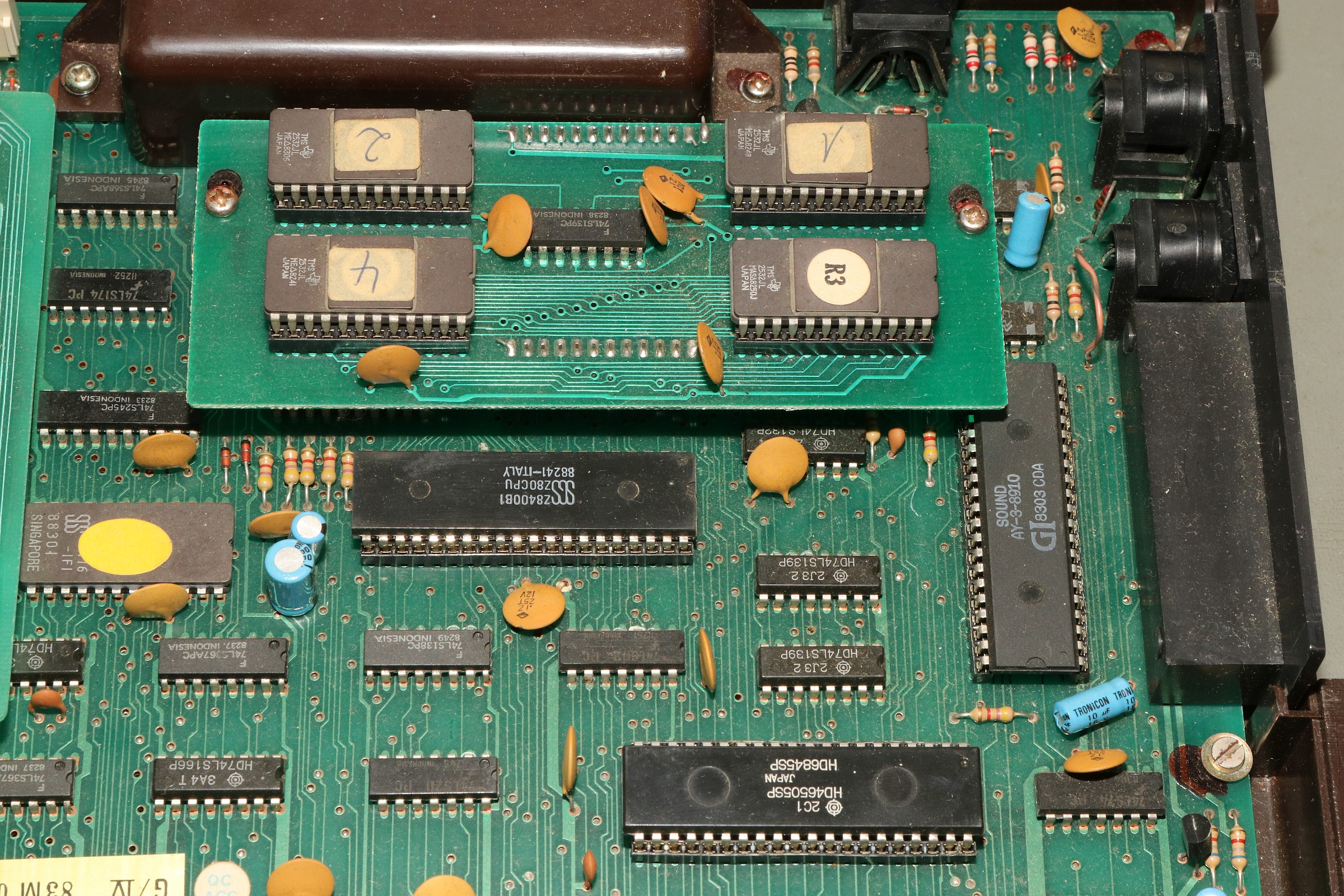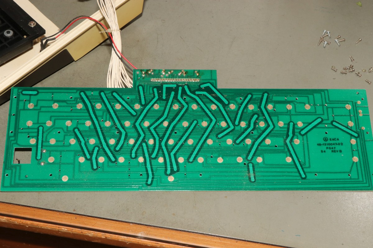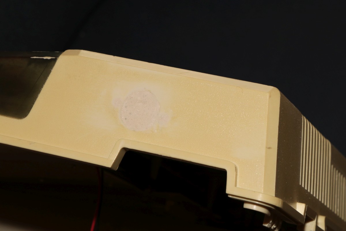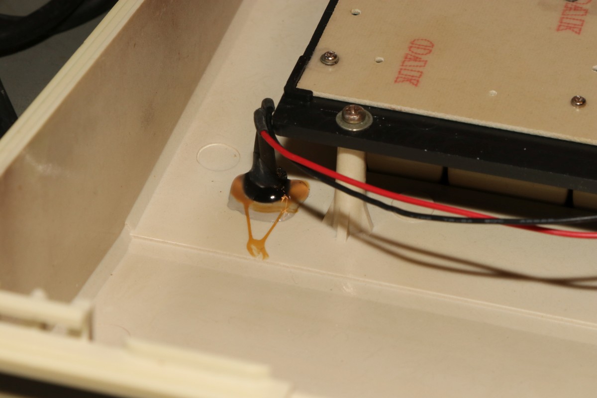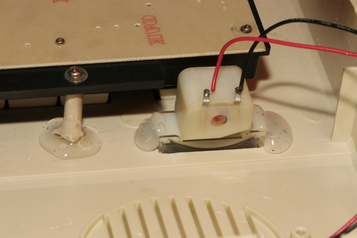{EG2000 Colour Genie} Als billiger Beifang ist mir ein Colour Genie zugelaufen - böse malträtiert und mit zweifelhafter Funktion, aber für 50 Euro... Der Rechner ist so schlecht, den muss ich einfach mal begutachten... Da hat wohl jemand mal einen Lüfter draufgedengelt - eigentlich keine schlechte Idee, die Netzteilsektion wird recht heiß, aber mit den handwerlichen Fähigkeiten war das wohl eine eher suboptimale Idee... Ob er wohl noch funktioniert? Das Gerät gibt angeblich TV-HF und FBAS aus. TV-HF ist natürlich die erste Wahl. Ein schlechteres Bild geht nicht! MEM SIZE? Der Rechner kennt nicht mal seinen eigenen Speicher? O.K... lässt sich durch "RETURN" ganz leicht erledigen. Der Rechner läuft! Ca. 75% der Tasten gehen nicht. Eine sinnvolle Programmierung wird damit schwer. Also sehe ich mir die Tastatur an... Die Tastatur ist in die Oberschale eingebaut und erinnert in der Konstruktion leicht an die CBM-Tastaturen. Oh, toll, Platz für einen internen Lautsprecher, den man nie eingebaut hat... Bei den neueren Modellen soll der wohl mit dabei sein. Hier kommt der Ton über den Fernseher. Dafür hat der Z80-Rechner sogar eine Aussteuerungsanzeige für den Cassettenpegel! Das ist ein absolutes Alleinstellungsmerkmal. Die Tastaturplatine wird von vielen Schrauben gehalten. Fun Fact: Selbstschneider und Metallgewinde gemischt... da sollte man gut aufpassen! EACA aus Hong Kong ist der Verursacher dieses ... äh... Wunderwerks. Die deutsche Firma Trommeschläger (ja, ohne "L"!) war der Inverkehrbringer und hat immerhin eine sehr aufwändige deutsche Dokumentation mitgeliefert. Beide Firmen sind schon lange Geschichte. Ich sag's ja: wie beim CBM. Nach gründlicher Reinigung gehen immerhin 80% der Tasten einwandfrei. Eine Spalte weigert sich beharrlich. Da muss ich mal Stecker und Kabel durchklingeln... Da ist er ja, der Verursacher. In Ermangelung eines geeeigneten Crimpkontaktes muss ich zu drastischen Maßnahmen greifen. Und schon klappt das mit dem BASIC - meine Tochter hat schon mehrfach gefragt, ob ich eigentlich auch jemals etwas anderes in BASIC programmiert habe... Die Zeichendarstellung ist sowas von schlecht... die Zeichen 0, 8, B, 3 - wodurch unterscheiden die sich jetzt so genau? Langsam dämmert mir, warum dereinst die Kritiken zu diesem Prunkstück der Hong Kong'er Homecomputerschmieden nicht ganz so wohlwollend ausfielen... Und wir waren damals (TM) schon Kummer gewohnt! Nebenbei: die Darstellung auf einem Amiga-Monitor über FBAS ist genau so mies... Na, mal sehen, was ich diesem Prunkstück noch so alles entlocken kann. Ein netter Forumskollege hat mir bereits eine unbeschädigte Oberschale angeboten und Programmcassetten sind auch mit dabei... {Gehäuseaustausch} aus dem VzEkC e.V. hat mir ein freundlicher Forist einen besseren Gehäusedeckel zukommen lassen! Sieht super aus - aber leider ist er nicht 100% kompatibel: die Aussteuerungsanzeige fehlt. Was nicht passt, wird passend gemacht. Die Tastatur und das Anzeigeinstrument lassen sich leicht ausbauen... Passt fast... Der Schraubdom sitzt hier falsch. Dremel löst das Problem ganz fix. Da muss das Instrument hin: Nach einer Stunde Bohren und Feilen passt der Ausschnitt. Hier ist einer der wenigen Fälle, bei denen Heißkleber echt hilfreich und vernünftig ist Die LED ist auch gleich fixiert. So sieht der Colour Genie doch gleich viel hübscher aus. {Innere Werte} na ja... die sind hier auf niedrigem Level - aber wir hatten ja damals nix... CPU, Video-Controller, Sound-Controller und darüber die Zusatzplatine mit den Programm-ROMs. Ein primitiveres Netzteil habe ich kaum gesehen - nachträglich etwas kühlungsoptimiert... Zusatz-RAM-Karte, PAL-Gedöhns und der damals übliche TV-Konverter... {Kunststoffreparatur mit Aceton} Gut ist mir nicht gut genug... Da ist so ein Loch in der Seite, dass da nicht hingehört. Jetzt ist die Möglichkeit, die Methoden der Altvorderen bei der Reparatur von thermoplastischen Gehäuseteilen auszuprobieren. Ich habe ja einen Gehäusedeckel zum schreddern und Aceton immer griffbereit... Und einen Tag (bei geschlossenem Deckel natürlich!) später: Die Hinterseite des Lochs wird mit mehreren Lagen Tesafilm abgeklebt, das muss stabil halten! Dann wird die zähe Masse mit einem Spatel vorsichtig aufgetragen, bis alles gleichmäßig etwas übersteht: Durch das Aceton in der Masse verbindet sich die Füllung bombenfest mit dem Gehäuse - ist ja auch das gleiche Material... Nach zwei Tagen ist alles ausgehärtet, mit einer Flachfeile kann man den überstehenden Anteil vorsichtig abfeilen - dabei entsteht dann auch eine rauhe Oberfläche, die der Originalstruktur gleicht! Und von innen: Jetzt bin ich zufrieden. {Der Lohn der Arbeit} Nach all den Mühen ist der Colour Genie nun in einem vorzeigbaren Zustand... Nächstes Ziel: Software von Cassetten laden... {Kabelreparatur} Da war ja noch was... Manchmal zahlt es sich aus, alle möglichen Kabel und Stecker aufzubewahren. In diesem Falle hat sich der Gedanke "Das kann man ja vielleicht noch mal gebrauchen..." als richtig erwiesen: Der Federkontakt passt perfekt! |
