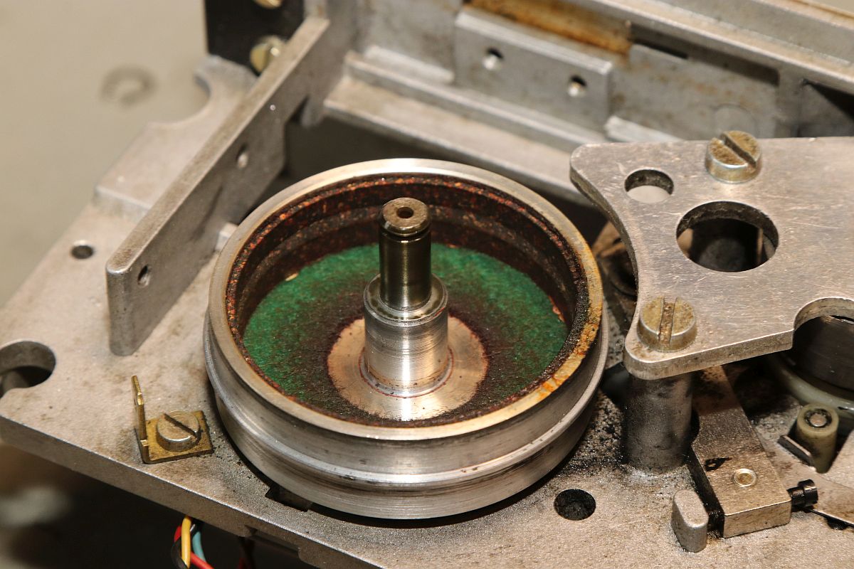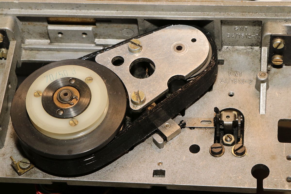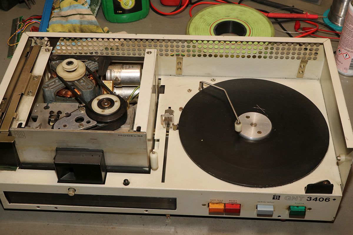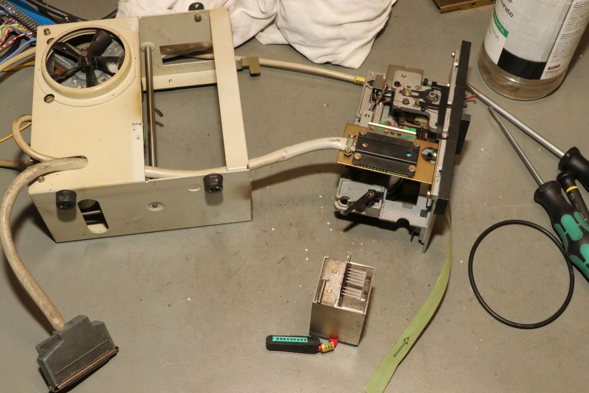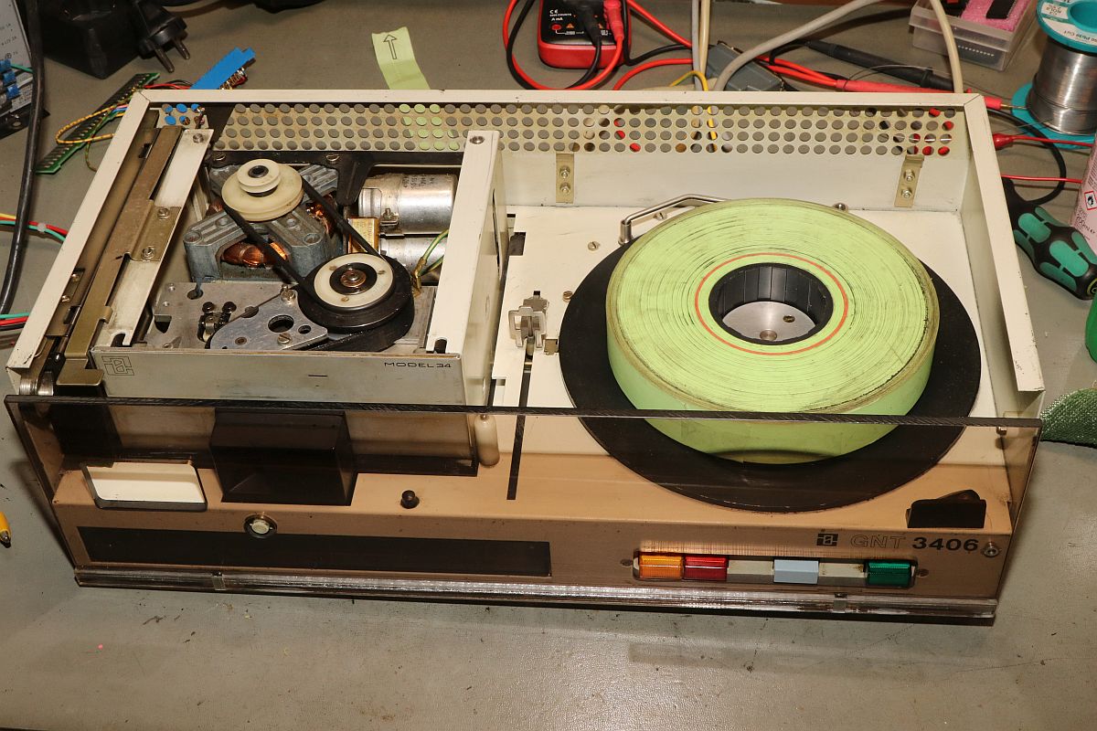 {GNT 3406} Manche Reparaturen erscheinen auf den ersten Blick wenig attraktiv und vermutlich auch nicht lohnend. So erreichte mich ein Lochstreifenstanzer GNT 3406, der seit vielen Jahrzehnten sein Dasein als Datenfütterer in einem CNC-Umfeld fristete. Nicht lecker, aber für das Umfeld normal: ein halbes Jahrhundert Schneidöl und Späne... Diagnose: das Gerät stanzt nicht, einer der Antriebsriemen ist defekt. Stimmt, der ist nicht nur defekt, der ist nicht mehr existent. Da muss ich mich erst mal in den Mechanismus einfuchsen: der große O-Ring als Antrieb zwischen Motor und Stanzeinheit funktioniert noch einwandfrei, aber der Antriebsriemen zwischen Schwungscheibe und Stanzmechanismusmitnehmer ist weg. Und das ist kein Standard-Teil, sondern ein dicker Flachgummiriemen mit Nut in der Mitte... Die Demontage gestaltet sich interessant... alles ist irgendwie geschraubt und verriegelt. Das dauert. Die Elektronik sieht auch nicht mehr so gut aus. Schöne solide Microcontrollertechnik - aber ich sehe... ... scheintote RIFAs. Gottseidank hier im Kleinspannungsbereich. Der Motorlüfter ist nicht mehr original, aber er tut noch seinen Dienst, etwas flügellahm allerdings. Der Trafo ist auch schon nicht mehr original und wird gerade mal von einer Schraube gehalten, die andere lümmelt irgendwo in der Gerätewanne rum. Die Elektrik ist gewagt simpel. Das lässt sich aber alles gut demontieren Hier ist der Netzspannungs-RIFA. Dringend Zeit für einen Ersatz, bevor es knallt und stinkt! Die beiden Schräublein auf der Rückseite klemmen den Stanzmechanismus im Gehäuse - das war mal eine geschickte Montagemethode. Mittlerweile ist das so verklebt und verkantet, dass es eine Viertelstunde dauert, bis ich das Mistding ausgebaut habe... Der Steckverbinder ist nicht sehr sicher gesteckt... Sodele - das Teilmodul ist schon mal separiert. Ich versuche, den Mechanismus zu verstehen. Der Motor läuft andauernd, Schwungscheibe und Mitnehmerrolle laufen ebenfalls permanent. Über ein Relais ausgelöst springt ein zweiarmiger Mitnehmermechanismus aus seiner Ruhelage zwischen Mitnehmerrolle und Gummiriemen und vollzieht genau eine Umdrehung, in der der Stanzer ausgelöst wird. Dann befindet sich der Mitnehmer wieder in Ruhelage ohne Kontakt zum Riemen. Trickreich und nicht sehr dauerstabil... Hier ist die gut gelagerte Mitnehmerrolle: Der Stanzmagnet: 9 Magnetauslöser, von denen einer dauerhaft arretiert ist (Mitnehmerlochspur). Die Metallplättchen schieben sich zwischen Auslöser und Stanzdorn, wenn das Loch gestanzt werden soll. Wenn sich das Plättchen nicht dazwischen schiebt, läuft der Auslöser, der alle 9 Löcher gleichzeitig bedient, bei diesem Loch in's Leere. Ich bin gespannt, ob ich dieses Konglomerat wieder zusammengebaut bekomme... Der erste Versuch, den Originalriemen mit mehreren konventionellen Flachriemen zu ersetzen, schlug grandios fehl. Einzelriemen rutschen einfach nach oben und unten von den Rollen und haben auch nicht genug Friktion für den Mitnehmer. Es wird zwingend ein kombinierter Riemen mit Nut benötigt. Nächster Schritt: Riemendruck mit PUR... {GNT 3406 - mal ordentlich am Riemen reißen...} Schön, wenn man Freunde hat, die exzellent mit 3-D-Druckern umgehen können. Ich kann das nicht, aber ich weiß, wen ich fragen kann. Herzlichen Dank, Ralph!!! Aber alles der Reihe nach! Vorab habe ich schon mal die aufwändige Mechanik grundgereinigt und geschmiert, wo es nötig war. Hier mal die beeindruckende Fliehkraftkupplung: Kann mal geputzt werden... Weitere Versuche mit Gummiriemen und Kleben waren nicht von Erfolg gekrönt. Da müssen Profis ran! Profis, die mit schnell hingekritzelten Handskizzen umgehen wollen... Und die daraus einen 3-D-Druck mit flexiblem Kunststoff fertigen. Der "Spaß" hat wohl 4 Stunden gedauert. Passt wie angegossen - und das Beste: es funktioniert!!! Der Riemen ist zwar nicht ganz so weich wie Gummi, aber er läuft rund, leise und die Mitnehmermimik funktioniert damit einwandfrei! Da kann ich doch gleich den Rest noch putzen, schmieren und wieder Stück für Stück zusammensetzen. Die Stecker sind brav nummeriert. Nach diversen Versuchen habe ich auch die trickreiche Mechanik wieder verstanden... Alles ist irgendwie mit Federn oder Schrauben verbunden und verklemmt... Fast fertig (zumindest das mechanische Oberteil): Und die Plexiglasscheibe ist auch gereinigt und montiert. Jetzt fehlt nur noch die Elektronik - hier müssen erst mal alle neuralgischen Kondensatoren getauscht werden. |