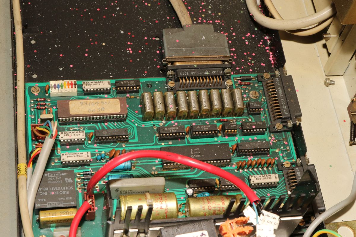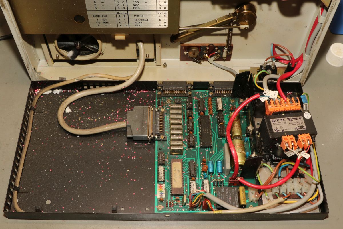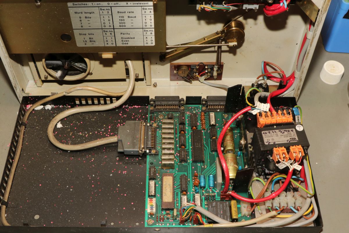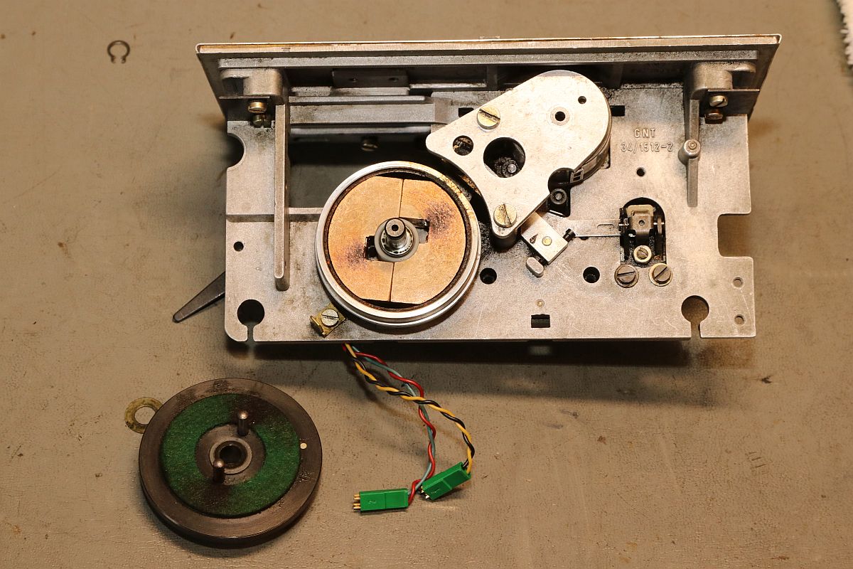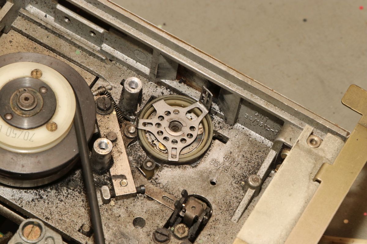 {GNT 3406} Manche Reparaturen erscheinen auf den ersten Blick wenig attraktiv und vermutlich auch nicht lohnend. So erreichte mich ein Lochstreifenstanzer GNT 3406, der seit vielen Jahrzehnten sein Dasein als Datenfütterer in einem CNC-Umfeld fristete. Nicht lecker, aber für das Umfeld normal: ein halbes Jahrhundert Schneidöl und Späne... Diagnose: das Gerät stanzt nicht, einer der Antriebsriemen ist defekt. Stimmt, der ist nicht nur defekt, der ist nicht mehr existent. Da muss ich mich erst mal in den Mechanismus einfuchsen: der große O-Ring als Antrieb zwischen Motor und Stanzeinheit funktioniert noch einwandfrei, aber der Antriebsriemen zwischen Schwungscheibe und Stanzmechanismusmitnehmer ist weg. Und das ist kein Standard-Teil, sondern ein dicker Flachgummiriemen mit Nut in der Mitte... Die Demontage gestaltet sich interessant... alles ist irgendwie geschraubt und verriegelt. Das dauert. Die Elektronik sieht auch nicht mehr so gut aus. Schöne solide Microcontrollertechnik - aber ich sehe... ... scheintote RIFAs. Gottseidank hier im Kleinspannungsbereich. Der Motorlüfter ist nicht mehr original, aber er tut noch seinen Dienst, etwas flügellahm allerdings. Der Trafo ist auch schon nicht mehr original und wird gerade mal von einer Schraube gehalten, die andere lümmelt irgendwo in der Gerätewanne rum. Die Elektrik ist gewagt simpel. Das lässt sich aber alles gut demontieren Hier ist der Netzspannungs-RIFA. Dringend Zeit für einen Ersatz, bevor es knallt und stinkt! Die beiden Schräublein auf der Rückseite klemmen den Stanzmechanismus im Gehäuse - das war mal eine geschickte Montagemethode. Mittlerweile ist das so verklebt und verkantet, dass es eine Viertelstunde dauert, bis ich das Mistding ausgebaut habe... Der Steckverbinder ist nicht sehr sicher gesteckt... Sodele - das Teilmodul ist schon mal separiert. Ich versuche, den Mechanismus zu verstehen. Der Motor läuft andauernd, Schwungscheibe und Mitnehmerrolle laufen ebenfalls permanent. Über ein Relais ausgelöst springt ein zweiarmiger Mitnehmermechanismus aus seiner Ruhelage zwischen Mitnehmerrolle und Gummiriemen und vollzieht genau eine Umdrehung, in der der Stanzer ausgelöst wird. Dann befindet sich der Mitnehmer wieder in Ruhelage ohne Kontakt zum Riemen. Trickreich und nicht sehr dauerstabil... Hier ist die gut gelagerte Mitnehmerrolle: Der Stanzmagnet: 9 Magnetauslöser, von denen einer dauerhaft arretiert ist (Mitnehmerlochspur). Die Metallplättchen schieben sich zwischen Auslöser und Stanzdorn, wenn das Loch gestanzt werden soll. Wenn sich das Plättchen nicht dazwischen schiebt, läuft der Auslöser, der alle 9 Löcher gleichzeitig bedient, bei diesem Loch in's Leere. Ich bin gespannt, ob ich dieses Konglomerat wieder zusammengebaut bekomme... Der erste Versuch, den Originalriemen mit mehreren konventionellen Flachriemen zu ersetzen, schlug grandios fehl. Einzelriemen rutschen einfach nach oben und unten von den Rollen und haben auch nicht genug Friktion für den Mitnehmer. Es wird zwingend ein kombinierter Riemen mit Nut benötigt. Nächster Schritt: Riemendruck mit PUR... {GNT 3406 - mal ordentlich am Riemen reißen...} Schön, wenn man Freunde hat, die exzellent mit 3-D-Druckern umgehen können. Ich kann das nicht, aber ich weiß, wen ich fragen kann. Herzlichen Dank, Ralph!!! Aber alles der Reihe nach! Vorab habe ich schon mal die aufwändige Mechanik grundgereinigt und geschmiert, wo es nötig war. Hier mal die beeindruckende Fliehkraftkupplung: Kann mal geputzt werden... Weitere Versuche mit Gummiriemen und Kleben waren nicht von Erfolg gekrönt. Da müssen Profis ran! Profis, die mit schnell hingekritzelten Handskizzen umgehen wollen... Und die daraus einen 3-D-Druck mit flexiblem Kunststoff fertigen. Der "Spaß" hat wohl 4 Stunden gedauert. Passt wie angegossen - und das Beste: es funktioniert!!! Der Riemen ist zwar nicht ganz so weich wie Gummi, aber er läuft rund, leise und die Mitnehmermimik funktioniert damit einwandfrei! Da kann ich doch gleich den Rest noch putzen, schmieren und wieder Stück für Stück zusammensetzen. Die Stecker sind brav nummeriert. Nach diversen Versuchen habe ich auch die trickreiche Mechanik wieder verstanden... Alles ist irgendwie mit Federn oder Schrauben verbunden und verklemmt... Fast fertig (zumindest das mechanische Oberteil): Und die Plexiglasscheibe ist auch gereinigt und montiert. Jetzt fehlt nur noch die Elektronik - hier müssen erst mal alle neuralgischen Kondensatoren getauscht werden. |