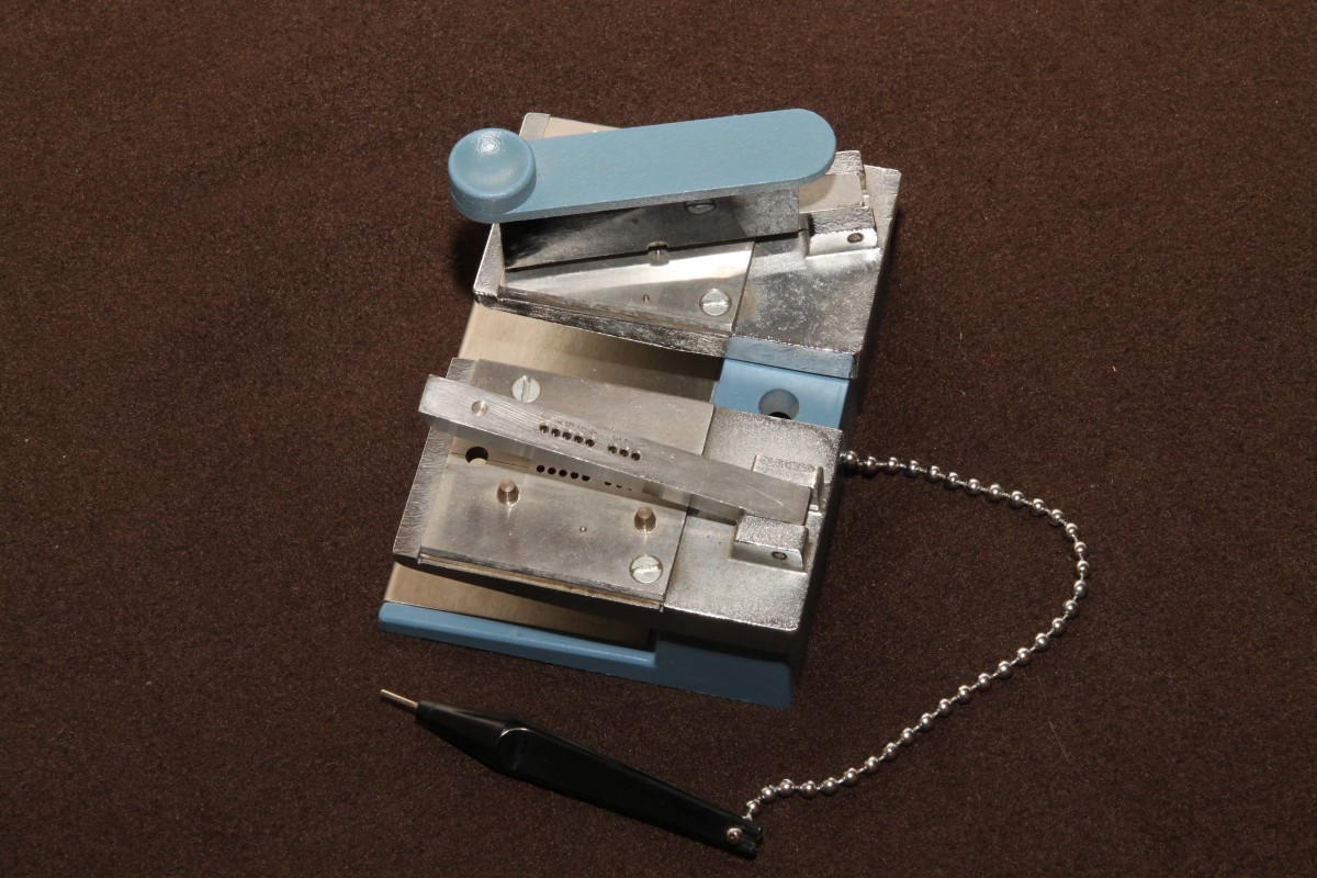 {Lochstreifen Handstanzer Profi} Der zweite ist ein Schmuckstück - schwere Metall-Spritzgusstechnik, poliert, gefräst, sauschwer.