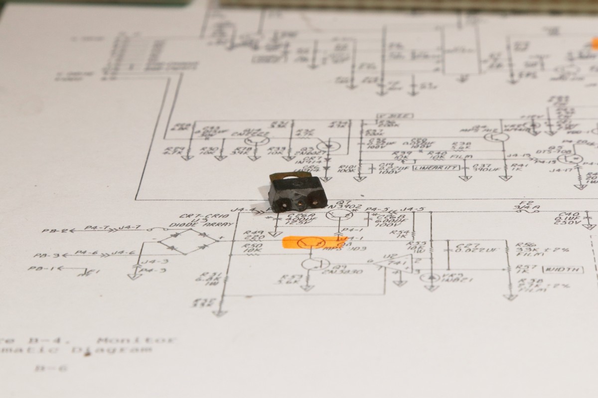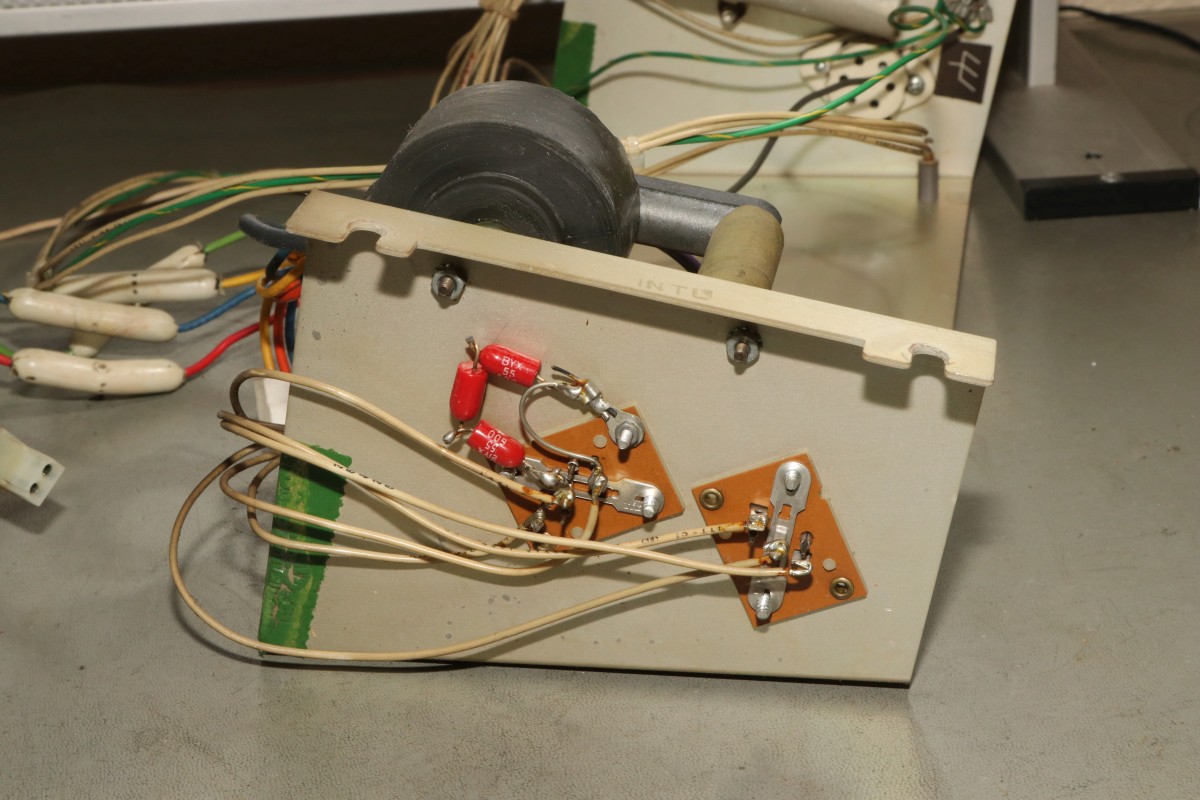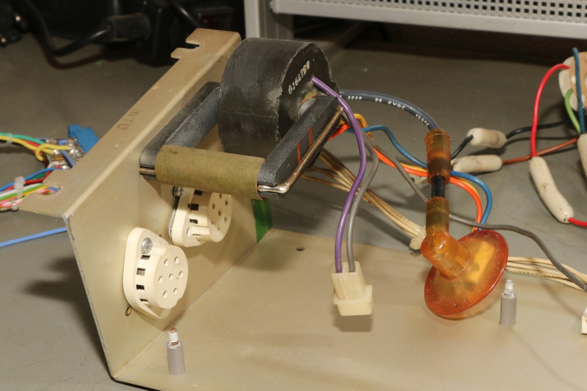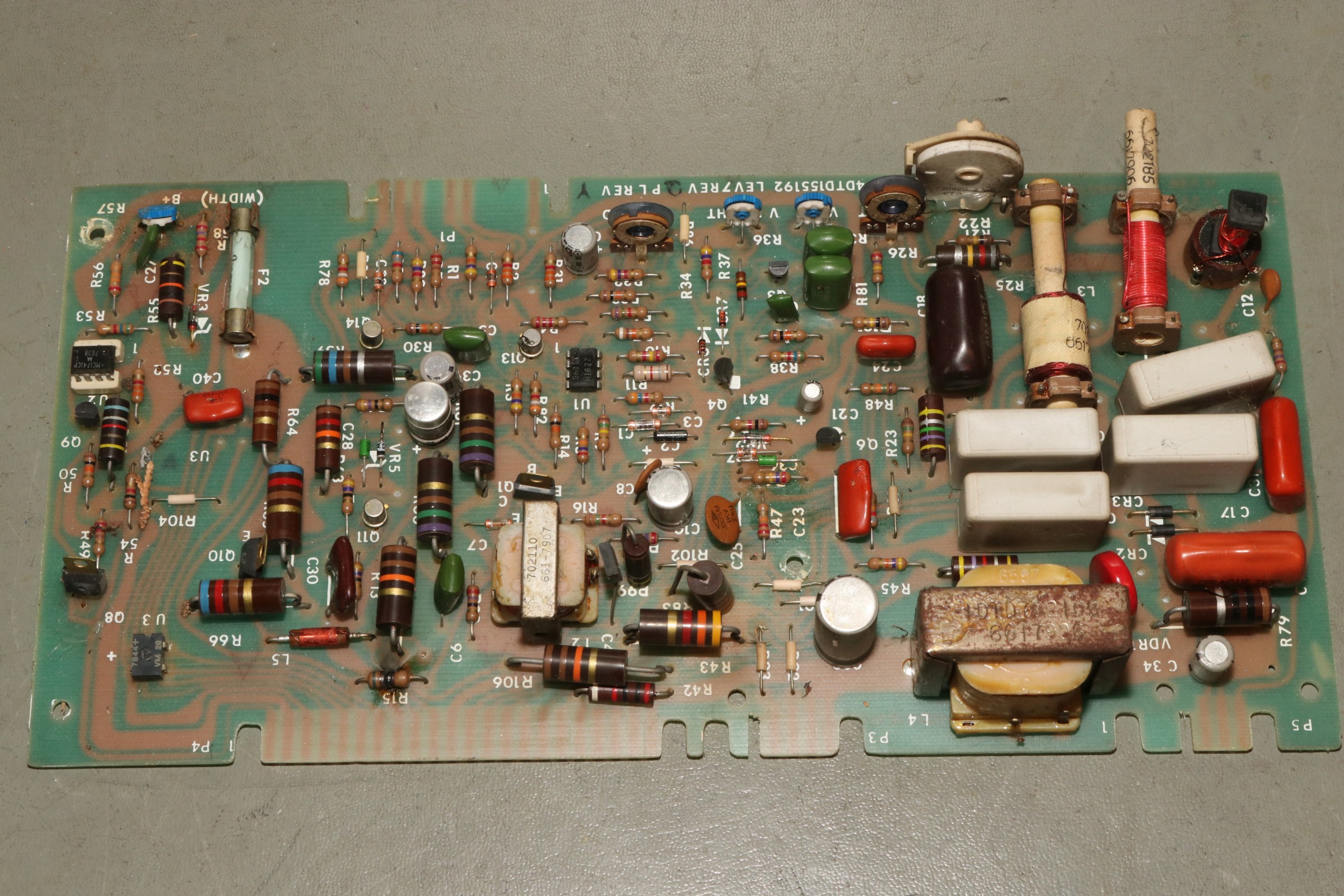 {Hazeltine 1500 Monitor} Hier nun die Fortsetzung von Hazeltine 1500 Terminal - Die Reparatur wird so umfangreich, da habe ich beschlossen, diesen Artikel mal auszulagern. Der Monitor ist in sehr schlechtem Zustand... Die Platine ist nicht umfangreich, dafür korrodiert und mit vielen defekten Bauteilen bestückt... Ober- und Unterseite sind als hoch auflösende Fotos hinterlegt! O.K., der erste Transistor fällt mir schon mal entgegen... ...da hat schon wer versucht, mit Feile und Lötzinn zu "reparieren" - leider ein Transistortyp, der schon lange nicht mehr zu bekommen ist. Da werde ich wohl Ersatz finden müssen. R15 brannte beim Einschalten effektvoll ab... Das fängt ja gut an. R79 ist auch nicht mehr so ganz frisch... Der Elko hat nicht nur eine Beule, der hat sogar schon die Hosen runtergelassen, weil's so heiß war... Die Elkos müssen alle raus und neu gemacht werden. Eigentlich geht an dem Monitor nichts mehr so richtig... Die erste Handvoll Leichen - hoffentlich passen die bestellten Transistor-Ersatztypen... Kommen wir zum zweiten Teil des Chassis' - der Zeilentrafo ist nicht mehr befestigt, völlig klebrig und verdreckt... Die Befestigungsspange ist gerissen - das wirkt sich nicht gut auf den Betrieb aus, da wird der Luftspalt zu groß! Igitt... die Hochspannungsdiode ist demontierbar, es scheint sich ein Isolieröl verteilt zu haben, einfach nur eklig. Gut, dass ich das noch gesehen habe: die kleinen gefalteten Plastikplättchen sorgen für einen definierten Luftspalt zwischen den beiden Kernhälften! Das hält nicht mehr... Gut, dass ich auch Silberhartlot im Hause habe! Das sieht doch gleich viel wertiger aus und hält! Das Thema Zeilentrafo ist hoffentlich erfolgreich erledigt - jetzt geht es an die Prüfung der Leistungstransistoren. Hier die beiden Transistoren für Horizontal- und Vertikalablenkung... Der einzelne Transistor ist der Linearregler für das 70V-Netzteil. Der hat nicht nur den falschen Typen, er ist sogar komplett durchlegiert und liefert 2,7 Ohm zwischen allen Anschlüssen. Das ist suboptimal. Die H- und V-Transistoren haben auch ganz seltsame Typenbezeichnungen, funktionieren aber noch... Der linke Transistor 1SPS331848 ist eine Hazeltine Type, die nirgendwo dokumentiert ist, der rechte Typ SJ4810 findet sich in keinem Motorola Datenbuch wieder... sehr suspekt. Q7 und Q2 sind laut Schaltplan die gleichen Typen - 2N3902. Nur Q5 ist ein DTS-708, den bekommt man nirgends mehr und ich habe auch keine Daten... aber der Hazeltine Ersatztyp geht ja noch. Dann vermute ich mal, dass SJ4810 einem 2N3902 entspricht - und der 1SPS331848 ist dann die kundenspezifische Bezeichnung für DTS-708. Jetzt warte ich mal auf die bestellten Ersatzteile und hoffe, dass danach alles gut wird! {Das Linearnetzteil} Die ersten Ersatzteile sind gekommen... wer hat schon 3W-Widerstände auf Lager, wenn er sonst Mikroprozessorsysteme bastelt... Der Ersatztransistor muss eine Tauglichkeit noch beweisen - ich hab ihn nach bestem Wissen und Gewissen rausgesucht: 150V, 1,5A, miese Stromverstärkung hFE 40... Ach ja, das Pinning stimmt nicht... Die primären Pufferelkos haben die falsche Bauform, es gibt vermutlich keine Zwillingselkos mehr... Egal: Zweikomponentenkleber macht es möglich. Naja, der 741 war auch völlig platt... Also neu: Und nachdem ich den baugleichen Transistor aus der Ablenkstufe in der Längsregelung eingesteckt habe: Cool: das 70V-Linearnetzteil geht wieder - die Spannung lässt sich über das Poti von 60-90V regeln, damit stellt man übrigens auch die Bildbreite ein. Und dann hat mich noch interessiert, ob man einem durchlegierten Transistor sein Leiden ansieht... Ja..., das sieht man gut... Jetzt muss ich auf die Ersatztransistoren warten... |