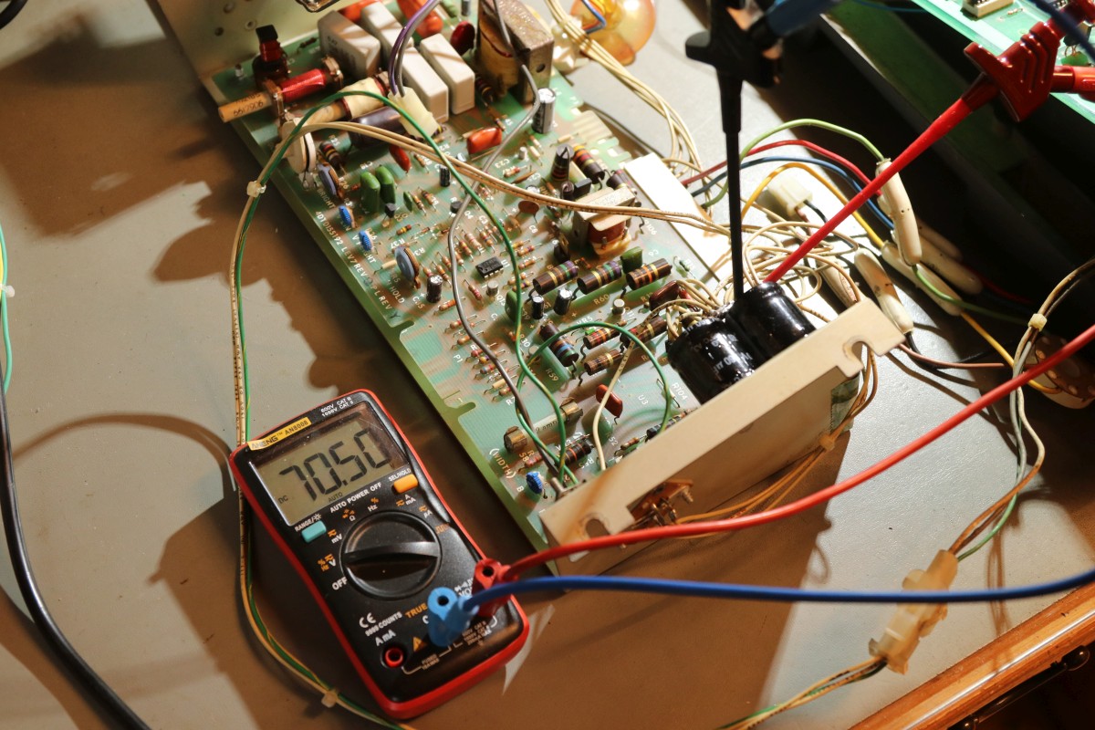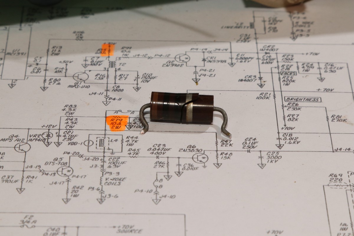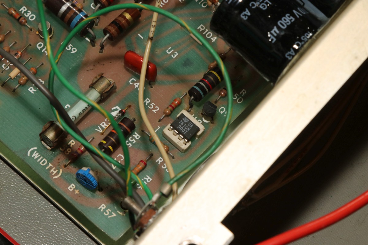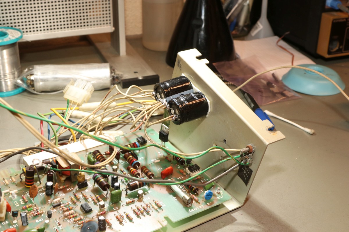 {Hazeltine 1500 Monitor} Hier nun die Fortsetzung von Hazeltine 1500 Terminal - Die Reparatur wird so umfangreich, da habe ich beschlossen, diesen Artikel mal auszulagern. Der Monitor ist in sehr schlechtem Zustand... Die Platine ist nicht umfangreich, dafür korrodiert und mit vielen defekten Bauteilen bestückt... Ober- und Unterseite sind als hoch auflösende Fotos hinterlegt! O.K., der erste Transistor fällt mir schon mal entgegen... ...da hat schon wer versucht, mit Feile und Lötzinn zu "reparieren" - leider ein Transistortyp, der schon lange nicht mehr zu bekommen ist. Da werde ich wohl Ersatz finden müssen. R15 brannte beim Einschalten effektvoll ab... Das fängt ja gut an. R79 ist auch nicht mehr so ganz frisch... Der Elko hat nicht nur eine Beule, der hat sogar schon die Hosen runtergelassen, weil's so heiß war... Die Elkos müssen alle raus und neu gemacht werden. Eigentlich geht an dem Monitor nichts mehr so richtig... Die erste Handvoll Leichen - hoffentlich passen die bestellten Transistor-Ersatztypen... Kommen wir zum zweiten Teil des Chassis' - der Zeilentrafo ist nicht mehr befestigt, völlig klebrig und verdreckt... Die Befestigungsspange ist gerissen - das wirkt sich nicht gut auf den Betrieb aus, da wird der Luftspalt zu groß! Igitt... die Hochspannungsdiode ist demontierbar, es scheint sich ein Isolieröl verteilt zu haben, einfach nur eklig. Gut, dass ich das noch gesehen habe: die kleinen gefalteten Plastikplättchen sorgen für einen definierten Luftspalt zwischen den beiden Kernhälften! Das hält nicht mehr... Gut, dass ich auch Silberhartlot im Hause habe! Das sieht doch gleich viel wertiger aus und hält! Das Thema Zeilentrafo ist hoffentlich erfolgreich erledigt - jetzt geht es an die Prüfung der Leistungstransistoren. Hier die beiden Transistoren für Horizontal- und Vertikalablenkung... Der einzelne Transistor ist der Linearregler für das 70V-Netzteil. Der hat nicht nur den falschen Typen, er ist sogar komplett durchlegiert und liefert 2,7 Ohm zwischen allen Anschlüssen. Das ist suboptimal. Die H- und V-Transistoren haben auch ganz seltsame Typenbezeichnungen, funktionieren aber noch... Der linke Transistor 1SPS331848 ist eine Hazeltine Type, die nirgendwo dokumentiert ist, der rechte Typ SJ4810 findet sich in keinem Motorola Datenbuch wieder... sehr suspekt. Q7 und Q2 sind laut Schaltplan die gleichen Typen - 2N3902. Nur Q5 ist ein DTS-708, den bekommt man nirgends mehr und ich habe auch keine Daten... aber der Hazeltine Ersatztyp geht ja noch. Dann vermute ich mal, dass SJ4810 einem 2N3902 entspricht - und der 1SPS331848 ist dann die kundenspezifische Bezeichnung für DTS-708. Jetzt warte ich mal auf die bestellten Ersatzteile und hoffe, dass danach alles gut wird! {Das Linearnetzteil} Die ersten Ersatzteile sind gekommen... wer hat schon 3W-Widerstände auf Lager, wenn er sonst Mikroprozessorsysteme bastelt... Der Ersatztransistor muss eine Tauglichkeit noch beweisen - ich hab ihn nach bestem Wissen und Gewissen rausgesucht: 150V, 1,5A, miese Stromverstärkung hFE 40... Ach ja, das Pinning stimmt nicht... Die primären Pufferelkos haben die falsche Bauform, es gibt vermutlich keine Zwillingselkos mehr... Egal: Zweikomponentenkleber macht es möglich. Naja, der 741 war auch völlig platt... Also neu: Und nachdem ich den baugleichen Transistor aus der Ablenkstufe in der Längsregelung eingesteckt habe: Cool: das 70V-Linearnetzteil geht wieder - die Spannung lässt sich über das Poti von 60-90V regeln, damit stellt man übrigens auch die Bildbreite ein. Und dann hat mich noch interessiert, ob man einem durchlegierten Transistor sein Leiden ansieht... Ja..., das sieht man gut... Jetzt muss ich auf die Ersatztransistoren warten... |