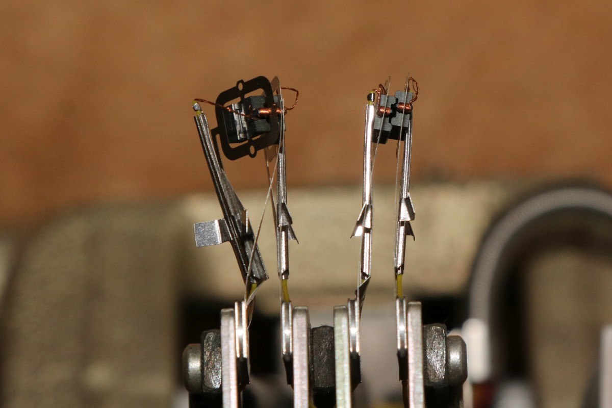 {Antike Festplatten und Wechselplatten - und ihre Leseköpfe} Zu Beginn dieses Artikels erst mal etwas Nachdenkliches. Eine biologische unabwendbare Eigenschaft, die alle Sammler irgendwann betrifft, über die aber nie jemand ernsthaft nachdenkt, ist das Ableben. Bis auf angeblich einen hat dies bisher noch jeden früher oder später getroffen - das soll uns aber jetzt nicht den Spaß an der Sammelleidenschaft und am Präsentieren vermiesen - nur nachdenken sollte man mal darüber. Dazu habe ich vor einiger Zeit auch einen netten Spruch gelesen: "Wenn ich dereinst einmal gehen muss, so ist die einzige Angst, die ich dabei habe, dass meine Frau dann die Geräte für den Preis verkauft, zu dem ich ihr gesagt habe, dass ich sie gekauft hätte..." Zuerst mal zu den Platten: in den 70ern und 80ern gab es zwei Typen von Festplattenlaufwerken: hermetisch geschlossene Plattenstapel und Wechselplattenlaufwerke. Die oberen Platten stammen aus einem geschlossenen Laufwerk mit Plattenstapel, die Platte im Kuststoffgehäuse ist eine einzelne Wechselplatte! Alle Scheiben haben einen Durchmesser von 14 Zoll und fassen 2,5 bis 9 MByte pro Platte. Im Vergleich daneben: eine USB-Festplatte mit 1TB moderner Bauart... Das hier war wohl mal eine Betriebssystem-Sicherheitskopie aus einem Großrechner... Von Unten: Hier sind die Sektormarkierungen und die Index-0-Markierung zu sehen, das wird per Lichtschranke abgetastet. Aufgeschraubt präsentiert sich das Innenleben: eine mit Eisenoxyd beschichtete polierte Aluminiumplatte - eine Bauform, die auch Jahre später in den ersten Festplatten für PCs angewendet wurde, da allerdings mit 5 1/4 Zoll Durchmesser... In Achsnähe ein Schaumstoffkissen - entweder zur Vibrationsdämpfung oder als Zentrifugalfilter für Schmutzpartikel - wer hier genauere Kenntnis der Technologie hat, darf sie mir gerne mitteilen! Ich bekome die Festplatte nicht in mein Netbook rein... Kommen wir zu den Stapelplatten - hier drehten sich stets mehrere Platten auf einer Welle - abgetastet von jeweils zwei Lese- und Schreibköpfen, die sich parallel auf der Plattenoberfläche verschieben ließen. Die oberste und unterste Platte von so einem Stapel wurde meist nur einseitig benutzt, diese Platten dienten sozusagen als Schutzdeckel für den Stapel und die Köpfe waren dann auch immer zwischen zwei Platten geschützt. Unterschiedliche Beschichtungen deuten auf unterschiedliche magnetische Materialien hin - und damit sicher auch auf unterschiedliche Kapazitäten der Datenträger: Hier mal ein älterer Kopf mit linearem Vorschub über einen Schrittmotor. Zwei Köpfe können Ober- und Unterseite einer einzigen Magnetplatte abtasten. Im Betrieb schwebt der Kopf auf einem Luftkissen über der Plattenoberfläche - er darf die Platte nicht berühren und kann deswegen auch mechanisch angehoben werden. Für Justagearbeiten ist der Winkelmesser gleich mit eingebaut: Hier mal der Unterschied zwischen erregtem Kopf... ...und einem unerregten Exemplar. Eindeutig ein Männchen. Etwas moderner der Kopf einer HP-Anlage: hier schon mit Servomotor - die Regelung findet über die Spuren auf der Festplatte statt, eine andere Rückmeldung gibt es nicht! Vier Köpfe für zwei Platten... Diese Kopfsteuerung wird auch heute noch so in modernen Festplatten gemacht - bei 2 Zoll Laufwerken... ... die im Vergleich etwas kleiner sind... Hier die moderneren Köpfe - aus gutem Grund lässt man die besser zwischen den Platten... ...und die älteren - der schwarze Strich in der Mitte ist der "Tonkopf" Das Teil wiegt über drei Kilogramm, der HP-Klopper bringt über 5kg auf die Waage... dafür bekommt man heute einen ganzen Stapel Festplatten mit der Millionenfachen Speicherkapazität... |