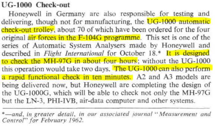 Den besitze ich leider nicht, aber Honeywell Deutschland hat den UG-1000 gebaut - eine elektronische Prüfeinrichtung, die die Autopiloteneinheiten nach der Produktion auf Herz und Nieren testen sollten.