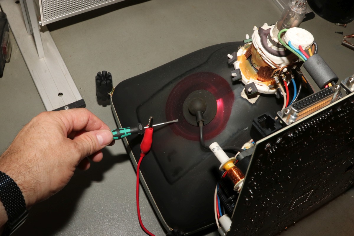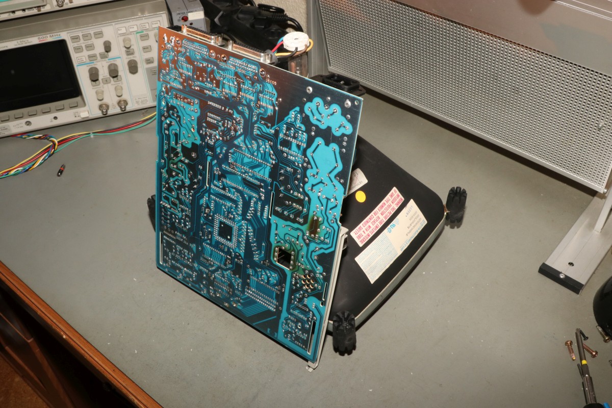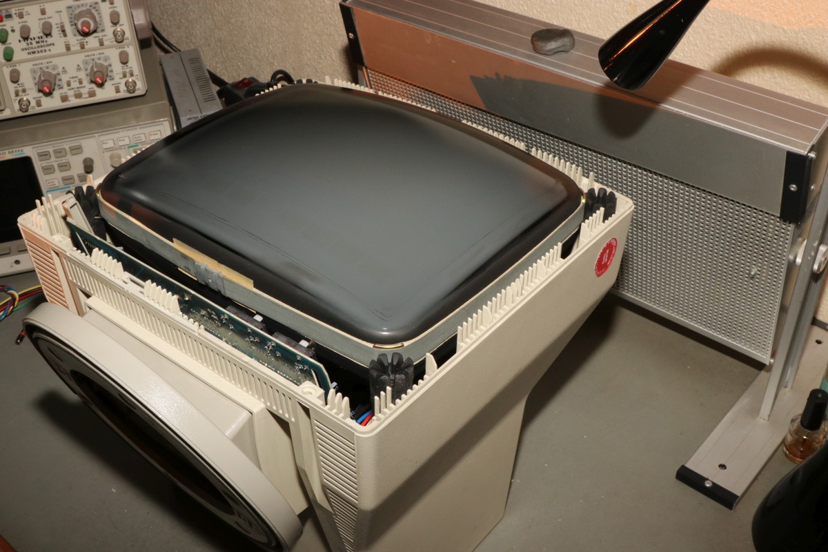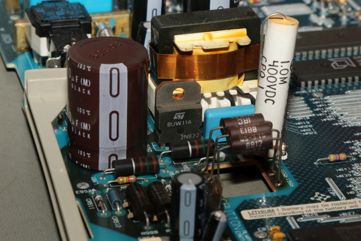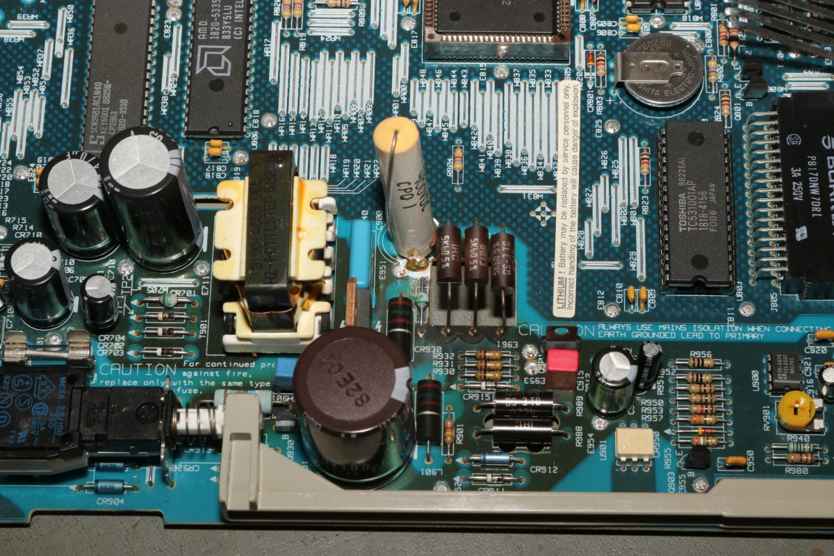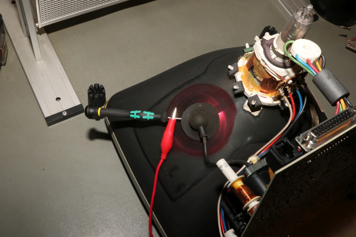 {HP700/92 - ein intelligentes Terminal} Aus den Spätzeiten der Terminals ist mir ein schönes Exemplar zugelaufen, das allerdings etwas Pflege benötigt! Ein schönes Duo aus bernsteinfarbenem Monitor und Tastatur, sauber verarbeitet und stabil. Die Tastatur ist noch eine von denen, die noch was taugen, satte Tastenanschläge, dafür nicht ganz leise... Nach dem Einschalten begrüßt einen ein Piep und ein völlig flimmerfreies Bild mit Menü. Die Terminalparameter kann man alle auf dem Bildschirm über die Funktionstasten einstellen, dank Lithiumzelle bleiben diese dann nach dem Ausschalten erhalten! Das Bild ist gestochen scharf. Das musste jetzt sein... Oh... nach wenigen Minuten fängt das Netzteil an, zu zischeln und es treten Bildfehler auf, dann piept das Gerät nur noch... Mist, jetzt muss ich doch alles aufschrauben... Das Gehäuse ist trickreich verzahnt. Nach dem Lösen der vier Gehäuseschrauben muss man an zwei schmalen Plastikstreifen ziehen, damit sich die Gehäuseteile auch voneinander lösen lassen.... Auf der Rückseite ist noch eine einzelne Schraube, danach kann man die Innereien vor sich sehen. Der Sicherungswiderstand im Primärkreis war schon mal längere Zeit überlastet.... Jetzt noch mal für die Ängstlichen: Entladeprozedur für Kathodenstrahlröhren.... Ein isolierter Schraubendreher wird mit Krokoklemmen an der Röhrenaußenseite geerdet: Dazu muss man einen der Gummipinöpel abziehen. Mit dem geerdeten Schraubendreher fährt man nun unter die Anodenkappe und kontaktiert den Anodenkontakt. Das entlädt schlagartig die Röhre. Nun kann man gefahrlos die Anodenkappe demontieren und damit die Platine von der Bildröhre trennen. Hier muss man besonders vorsichtig sein, den Bildröhrenhals nicht zu beschädigen, der Saugstutzen am Ende des Halses zwischen den Kontakten ist schnell abgebrochen, dann zischt es und nächte Woche ist Elektroschrottabgabe auf dem Wertstoffhof! Wer sich für den Bildröhrentyp interessiert: hier ist er. Clinton Electronics gibt es heute noch, aber die fertigen wohl keine Bildröhren mehr... Das ist der Anodenanschluss. 14-18kV Beschleunigungsspannung liegen hier im Betrieb an. Das kesselt, wenn man da ran kommt. Hier ein sehr hoch auflösendes Bild der Platine - wird auf Klick groß!. Auch konventionelle Bauteile sind wieder mal HP-gemäß umbenannt - hier vermutlich ein V20 Prozessor und ein Schnittstellenbaustein. Das Ding hier ist wohl vollständig von HP - Datenblätter sind Fehlanzeige, ebenso ein Schaltplan von diesem Terminal. Hey, Speicher mit Klarnamen... die hättet ihr doch wenigstens abschleifen können... Auf der linken Seite ist das Schaltnetzteil, welches mir Sorgen bereitet - es liefert 5V, 12V und 38V. Die Y-Kondensatoren sehen noch gut aus, aber langfristig werde ich das Risiko nicht eingehen und sie zeitnah ersetzen!. Die drei braunen Widerstände in der Mitte des Bildes sind vermutlich Teil des primärseitigen Snubbers für den Sperrwandler und wurden in der Vergangenheit maßlos überlastet. Platine und Bauteile sind gut durchgebraten, funktionieren aber noch. Im Betrieb werden die Widerstände weit über 100°C heiß. ich kann mir nicht vorstellen, dass das wirklich so sein soll! Hab ich noch nie gesehen: Hochspannungskondensatoren mit eingebauter Funkenstrecke. Mal ohne Gehäuse: die Fehlersuche benötigt ein laufendes Gerät... TP1 und TP2 - hier sind die Testpunkte für die 5V. Der Leistungstransistor bleibt kalt, die Widerstände kochen - und nach ein paar Minuten geht das Netzteil in die Knie. Sieht gut aus, aber nur für kurze Zeit... Kältespray sagt mir: es könnte am Optokoppler liegen, der hat aber nur HP-Marking... Ein CNY75B hat das gleiche Pinout und funktioniert. Leider ändert das aber nichts am Verhalten - nach 5 Minuten ist das Bild wieder weg. Kann es sein, dass die Snubberdiode durch ist und das NT deswegen spinnt? Ich muss wohl mal die einzelnen Halbleiter ausmessen... |