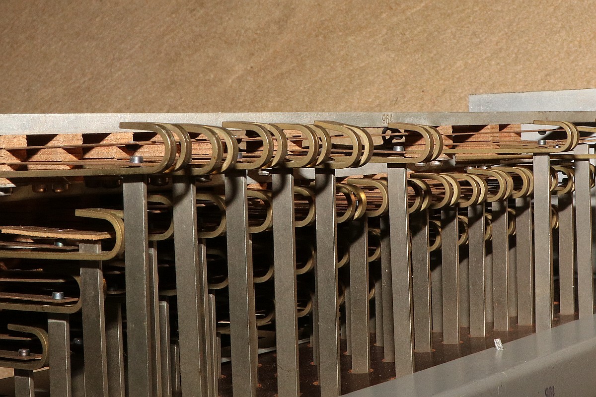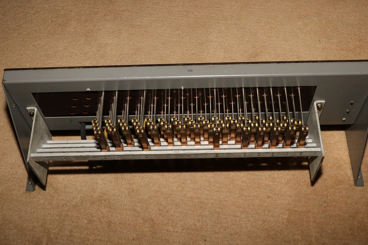 {Keyboard - eine Tastatur für die Ewigkeit} wer heute eine Tastatur für den PC kauft, wundert sich, dass dieser Haufen dünnes Plastikgekröse überhaupt noch den Weg nach Hause überlebt, geschweige denn die Reaktionen auf verlorene Online-Games. in den Anfangsjahren der Computertechnik war das noch anders. Hier wurde in alter Relais-Schalttechnik-Tradition noch alles aus Stahlblech, Messingprofilen, Schrauben und dicken Kabeln gefertigt. Das hält bis heute. Leider weiß ich nicht, woher dieses Exponat stammt. Ich vermute, es ist aus einem Lochkarten Drucker / Leser der 50er bis 60er Jahre entnommen. Vielleicht hat ja einer meiner Leser einen sachdienlichen Hinweis. Bis dahin bleibt uns halt nur, die Fotos zu genießen und die Plastik-Tastatur vor unseren Fingern mitleidig zu betrachten.
