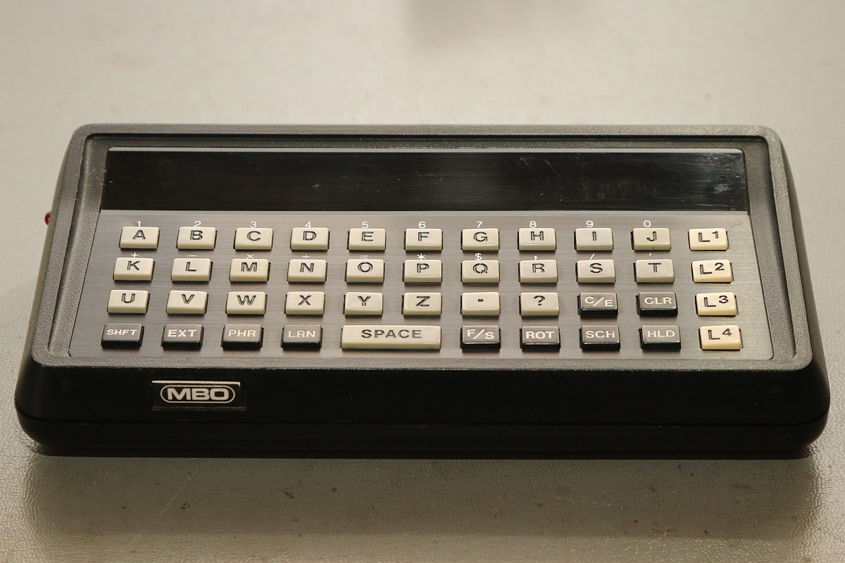 {MBO POCKET COMPUTER} Hinter diesem etwas irreführenden Namen versteckt sich ein ziemlich trickreich gemachtes Übersetzungsgerät von 1978. Mich fasziniert an diesen Teilen das grün-blau glimmende VFD - eine Displaytechnik, die man heute nur noch selten sieht.