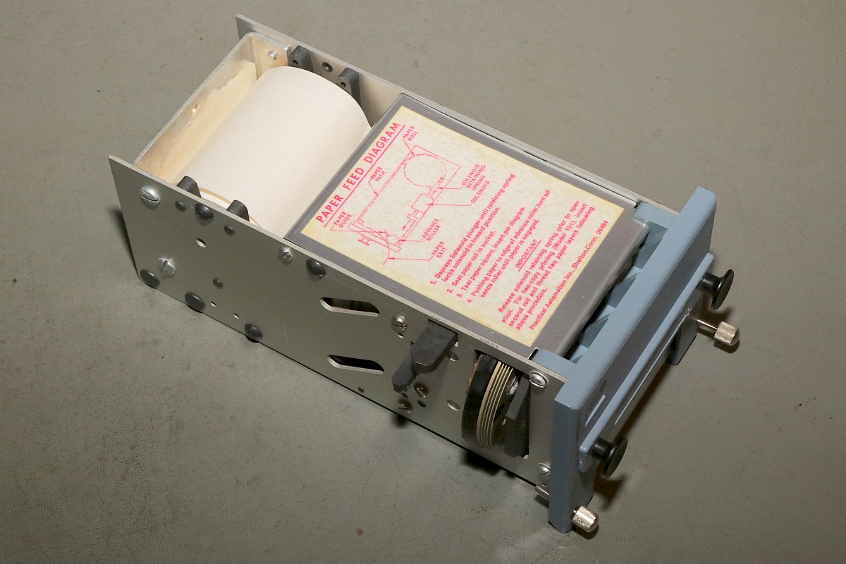 {Einbau Nadeldrucker DMTP-3} Hier ein weiteres ungewöhnliches Exponat aus der Frühzeit der elektronischen Datenverarbeitung: ein 7-Nadel-Drucker als extrem schmale Einbauvariante von Practical Automation Inc.