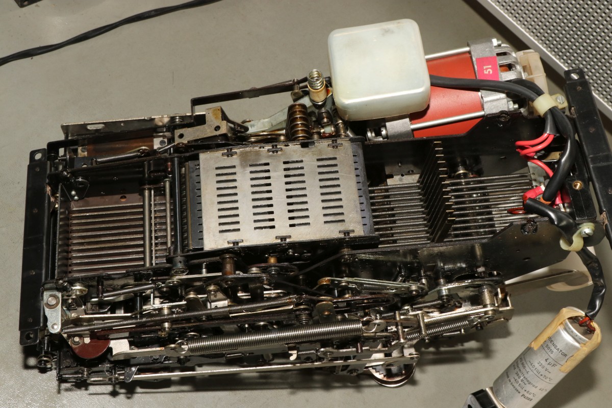 {ODHNER MX11C-9 Drei Spezies Rechenmaschine} Zuweilen werden mir Geräte zugeschickt, die sich als höchst interessant herausstellen! An dieser Stelle einen herzlichen Dank an Florian H. für die freundliche Spende! Hier handelt es sich um eine elektrisch angetriebene Drei Spezies Rechenmaschine der schwedischen Firma Odhner, die zwischen 1966 und 1968 verkauft wurde. Der Verkaufspreis lag damals bei über 1100DM - ziemlich viel Geld. Dafür kann diese Maschine Addition, Subtraktion und Multiplikation - daher auch die Bezeichnung "Drei Spezies". Das Besondere an dieser Maschine: sie ist zum Zeitpunkt meiner Geburt verkauft worden. Ein netter Zufall. Die Maschine kam bei mir funktionsuntüchtig und verdreckt an... Das Typenschild liegt gut versteckt auf der vorderen Unterkante. An den verwesten Gummifüßen kleben Schätze - selten bekomme ich Exponate und Geld gleichzeitig geschenkt! Ein passendes Netzkabel fehlt leider - zwei schräge Kontakte grinsen mich höhnisch an. Ich zücke Krokoklemmen und meinen Trenntrafo. Ihr haltet mich nicht auf! Es brummt und der Motor dreht nicht... Die Maschine ist völlig verharzt... Die Tastatur und die Stellenanzeige - diese Maschine hat kein Display! Ergebnisse und Eingaben werden auf dem Drucker gedruckt! Jaja... WD40 ist kein Schmiermittel. Aber es löst alle Verharzungen und macht die Wellen und Achsen wieder freigängig. Ich bin großzügig damit. Nach einer Weile und mit Unterstützung am Antriebsmotor wird die Maschine langsam wieder geschmeidig! Diese Stangen drucken - sie werden einfach soweit herausgefahren, bis die richtige Zahl vor dem Papier steht. Farbband und ein beherztes Kippen tut sein Übriges. Übrigens ist diese Druckmechanik integraler Bestandteil des mechanischen Speicher- und Rechenwerks. Beim Multiplizieren kann man diesem schön bei der Arbeit zusehen... So müssen sich die Ägyptologen bei der Öffnung der Grabkammer der Pyramiden gefühlt haben... Nach gehöriger Schmierung läuft die Maschine... bis es anfängt zu stinken. Ganz gewaltig - ich ahne es... Der Motor läuft nur, wenn man eine Taste drückt, die Maschine besitzt keinen Hauptschalter! Der Motor wird über diesen Schalter mit Entstörglied aktiviert: Der kleine weiße Pin ist der Stößel für den Federkontakt: Hier ist der Stinker, war ja klar: RIFA-Pest. Zum Testen geht es auch ohne den Kondensator. Wenn an dieser Mechanik irgendwas kaputt geht - ich will und kann es nicht richten! Aber das Teil ist für die Ewigkeit gebaut! Für die Gummifüße muss ich mir was einfallen lassen - die sind definitiv nicht für die Ewigkeit gebaut gewesen... Jetzt kommt die Fleßarbeit: Reinigen. Zuerst die versiffte Bodenplatte... Glänzt. Auch das Gehäuse sieht nach einer Spüli-Kur wieder fast aus wie neu! Das Tastaturblech mache ich dann auch gleich noch... Aber erst mal die Mechanik - vorsichtig mit Zahnbürste, Ohrstäbchen und einem geölten Lappen... Nicht zu fest! die vielen Federchen sind nur leicht eingehängt! Die gereinigte Tastaturabdeckung kommt wieder an ihren Platz... Und schon steht sie wieder wie frisch da: von Vorne: Von der Seite: Und von Hinten... Nach 50 Jahren rechnet diese Maschine immer noch leicht und zuverlässig - das nenne ich mal nachhaltige Technik.