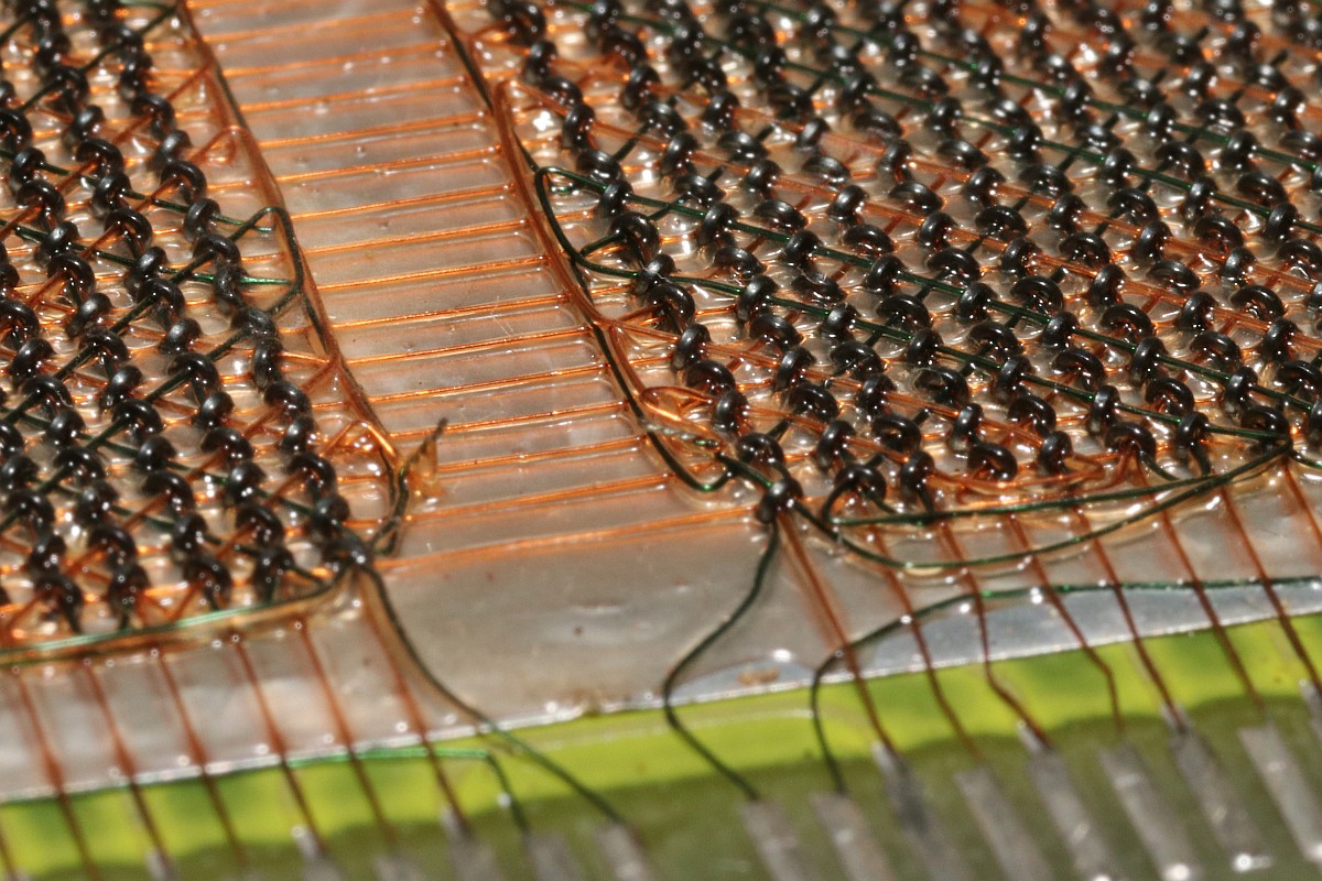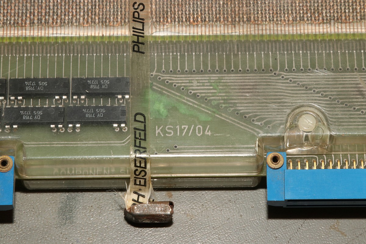 {Ein Philips Kernspeicher aus aktuellem Einsatz} Manchmal glaubt man es kaum - eine großzügige Spende erreichte mich aus Franken. Mist, jetzt muss ich meine eingeimpften Vorurteile als Oberbayer wieder mal über den Haufen werfen, Danke, Felix! Ein Kernspeicher aus einer aktuell noch laufenden Anlage der Baustoffproduktion. Dieser Prozessrechner läuft seit bald 50 Jahren und wird das auch noch so lange tun, wie es genügend Baugruppen als Ersatz gibt... Never change a running system! Dieser hier versagte elektronisch in der Maschine und landete so bei mir!