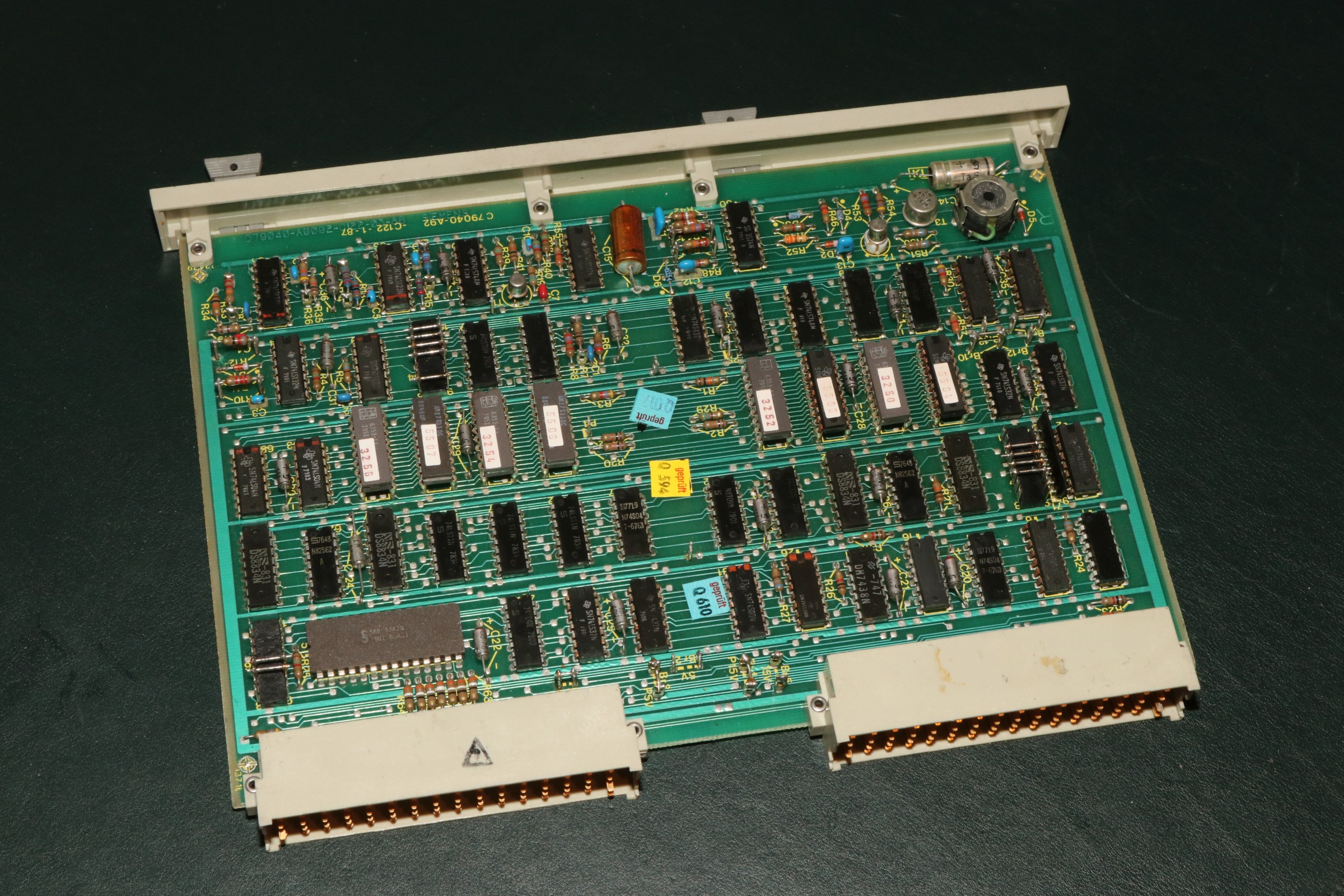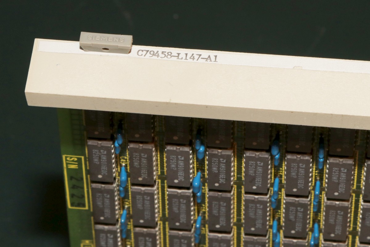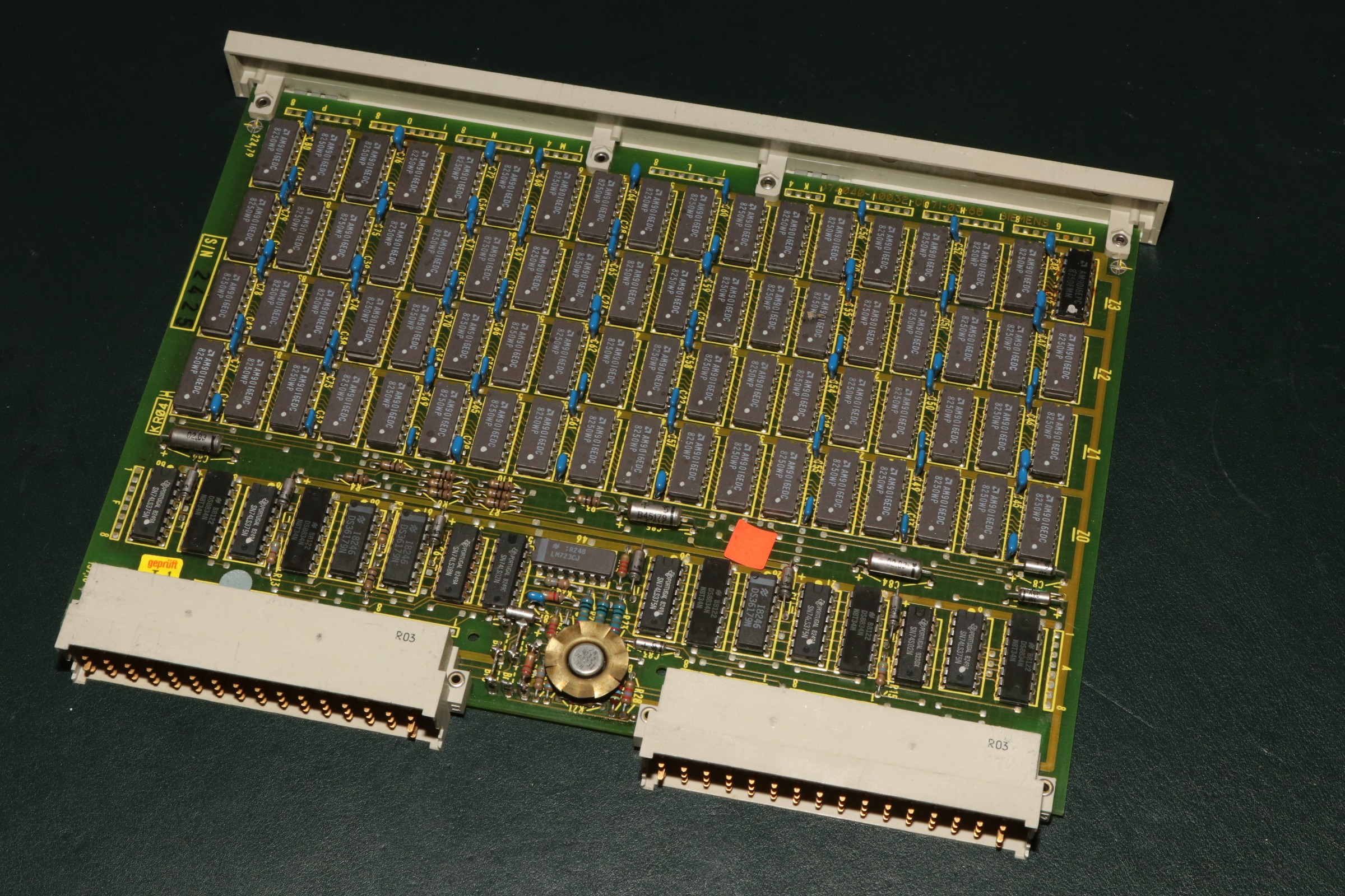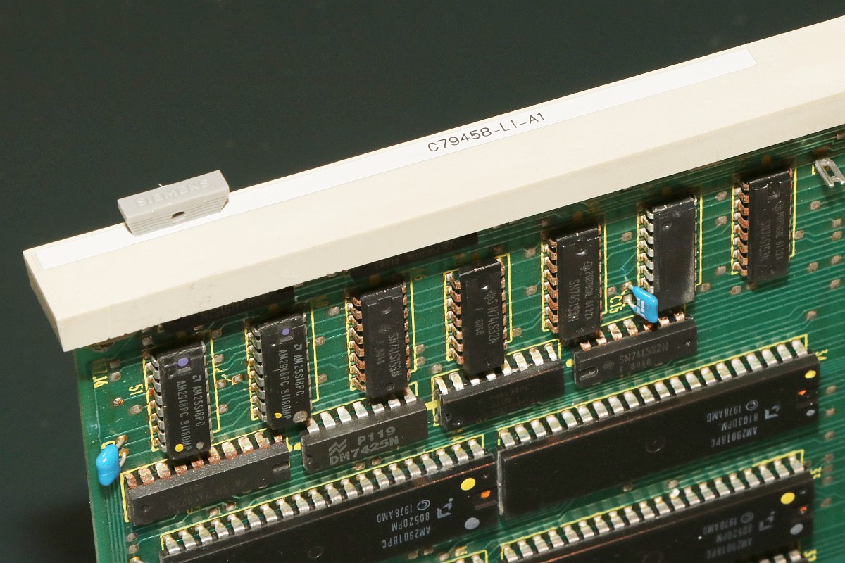 {Der Siemens Prozessrechner Serie 300} Sodele, ich habe mal wieder was bekommen - eine schöne Spende von der schwäbischen Alb: ein Siemens Prozessrechner vom Typ System 300. Also - ich hätte den ganzen Rechner mitnehmen können, in einem übermannshohen Schaltschrank verbaut, Drehstromanschluss, leider hatte ich gerade meinen Gabelstapler nicht bei der Hand, mein Kleinwagen hatte nicht genügend Achslast und der WAF dieses Gerätes... kennt man ja. Zu dem System findet sich im Internet fast nichts, nicht verwunderlich, damit konnte man ja auch im Wohnzimer keine Spiele spielen... Aber der Rechneraufbau ist beeindruckend für das Jahr 1980: die CPU ist aus 8 Stück 4bit-Bit-Slice Bausteinen vom Typ AM2901 zusammengestückelt, also mit einer Verarbeitungsbreite von 32Bit ausgestattet. Die 2901 sind sowas Ähnliches, wie die 74181 ALUs, nur besser. Hier sind bereits diverse Register mit eingebaut. Die Bausteine können beliebig breit kaskadiert werden, ein 64bit-Rechner war also auch 1980 schon möglich. Hier der Arbeitsspeicher, der hier für 1980 heftig groß ausfällt: 144kByte (18*4*16kbit - 4116 DRAMs) Ich wüsste gerne, was alleine diese Speicherkarte 1980 gekostet hat. Damit die 2901 auch als CPU laufen können, brauchen sie eine Steuerung, die den Microcode enthält, die sagt den Bausteinen dann, was sie bei entsprechenden Befehlen zu tun haben und kümmert sich um Program-Counter, Stacksteuerung und vieles mehr. Decodiert ist dies in einer Anzahl bipolarer ROMs, man konnte also den "Prozessor" in seiner Funktion auch modifizieren. Dann natürlich noch ein minimales Betriebssystem, was gerade mal gereicht hat, um etwas "Richtiges" von Band oder Diskette zu laden (Bootloader) - ebenfalls in BPROMs. Und als eines von vielen Beispielen eine mehrkanalige Analogausgabekarte mit hübschen D/A-Wandlern DAC100: Und so hat das dann ausgesehen - zumindest das Rack für das Grundsystem. {Siemens System 300 Dokumentationen} Ich habe mal die alten Dokumentationen von Siemens für museale Zwecke gescannt - die Rechte liegen selbstverständlich bei der Siemens AG - sollte der Rechteinhaber nicht mit der Veröffentlichung einverstanden sein, so möge er sich bitte an mich zwecks Entfernung der Links wenden!